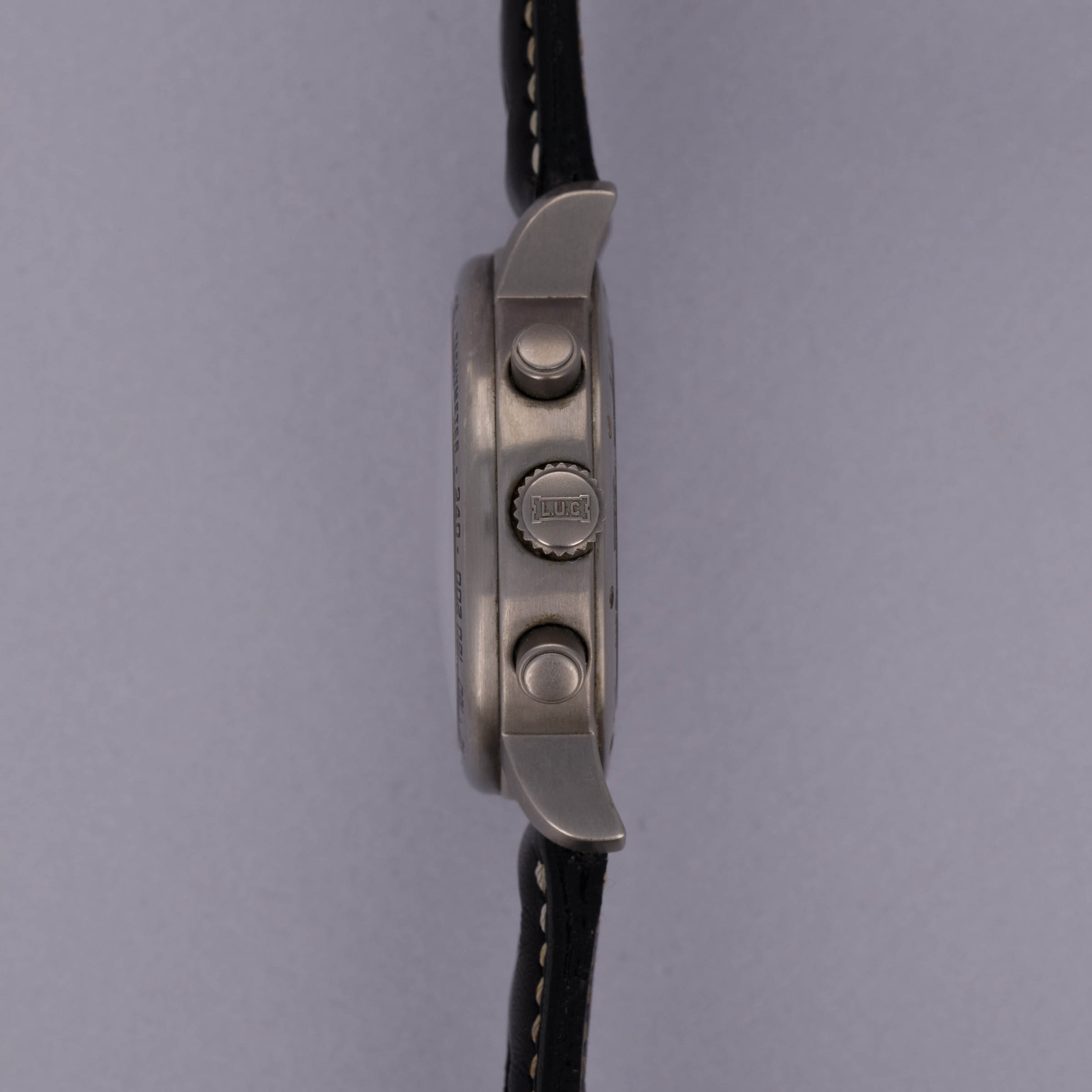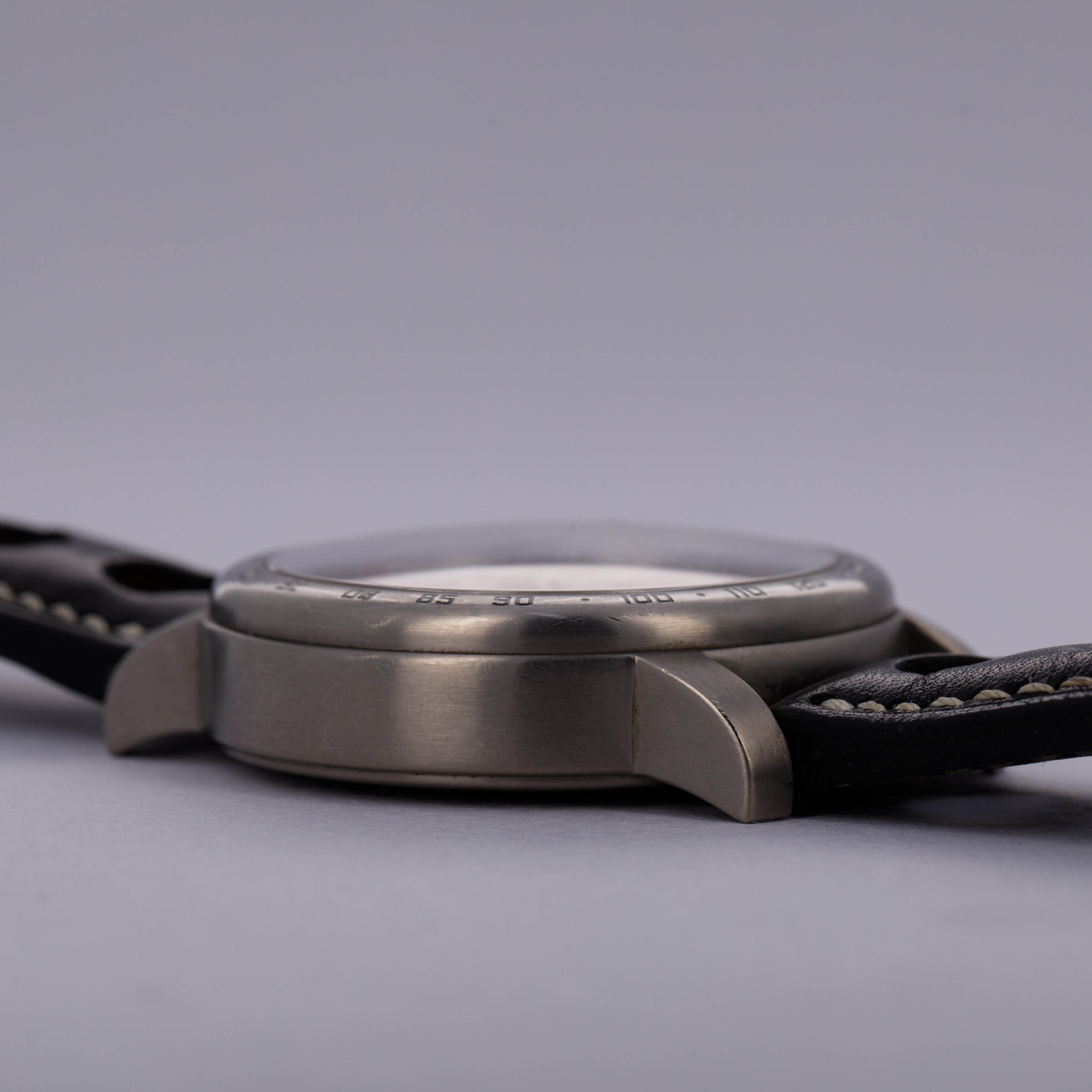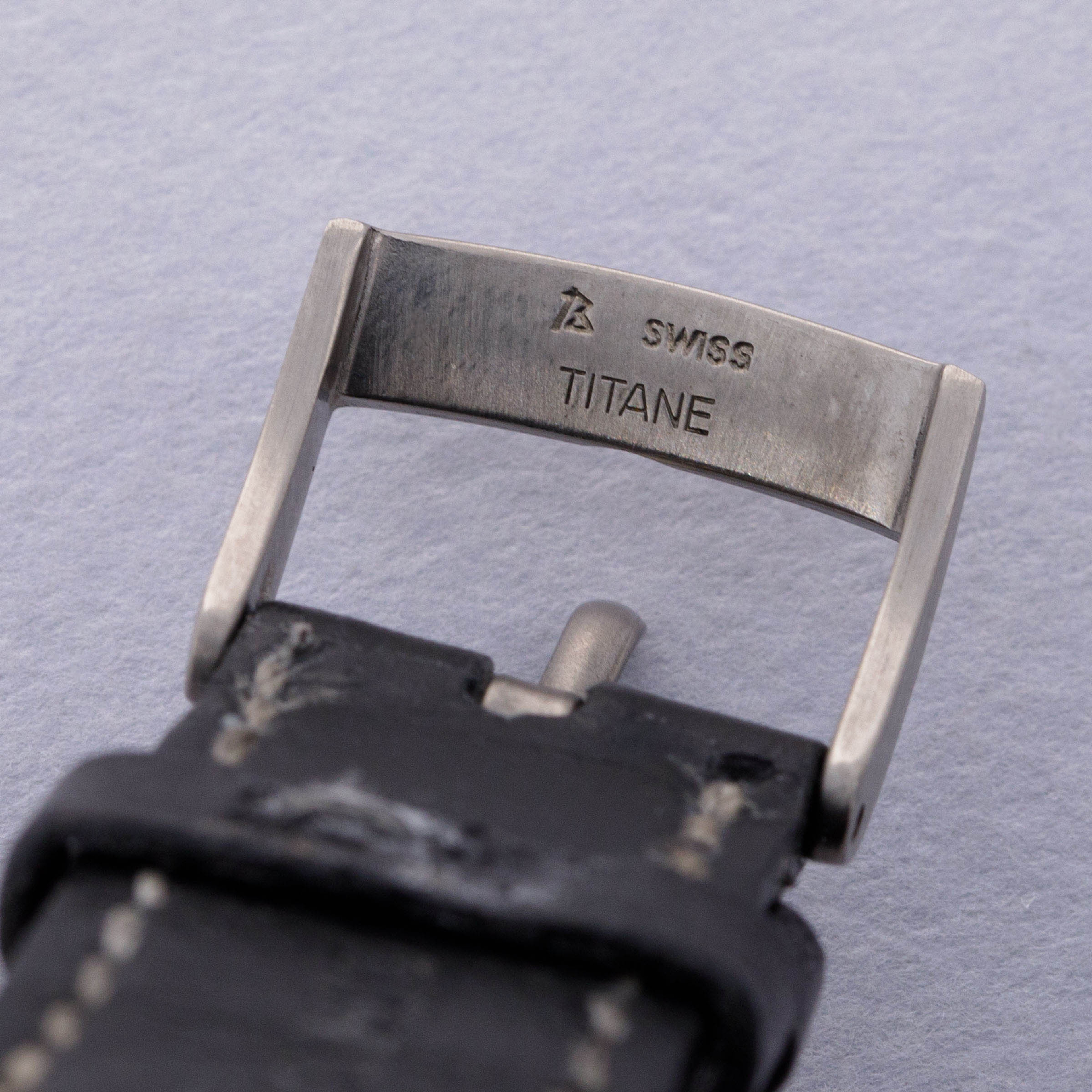 Watch is in excellent overall condition. Case exhibits mild surface wear, with some visible marks and scratches. Dial does not appear to show any signs of wear or aging. Original titanium buckle has surface wear similar to the case.