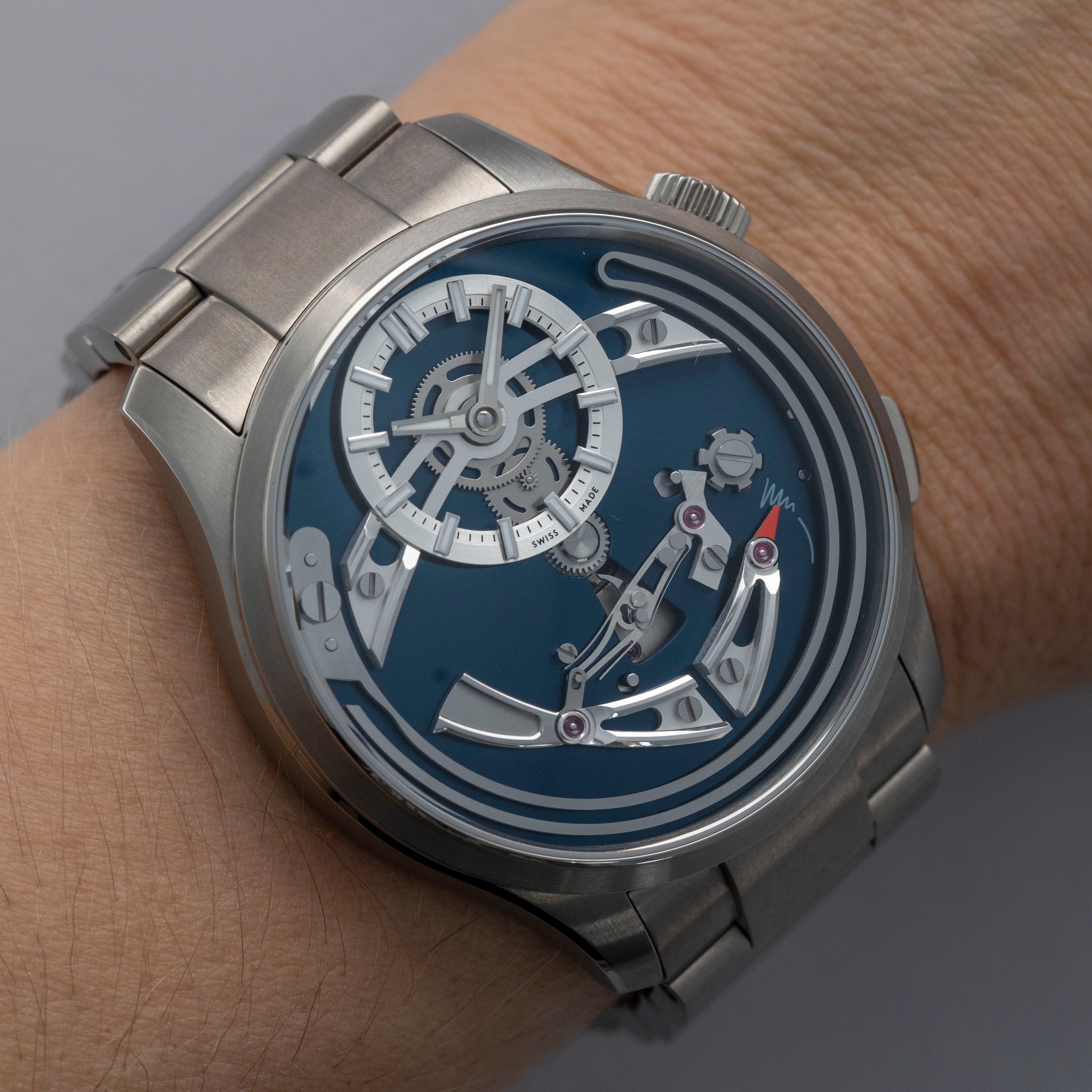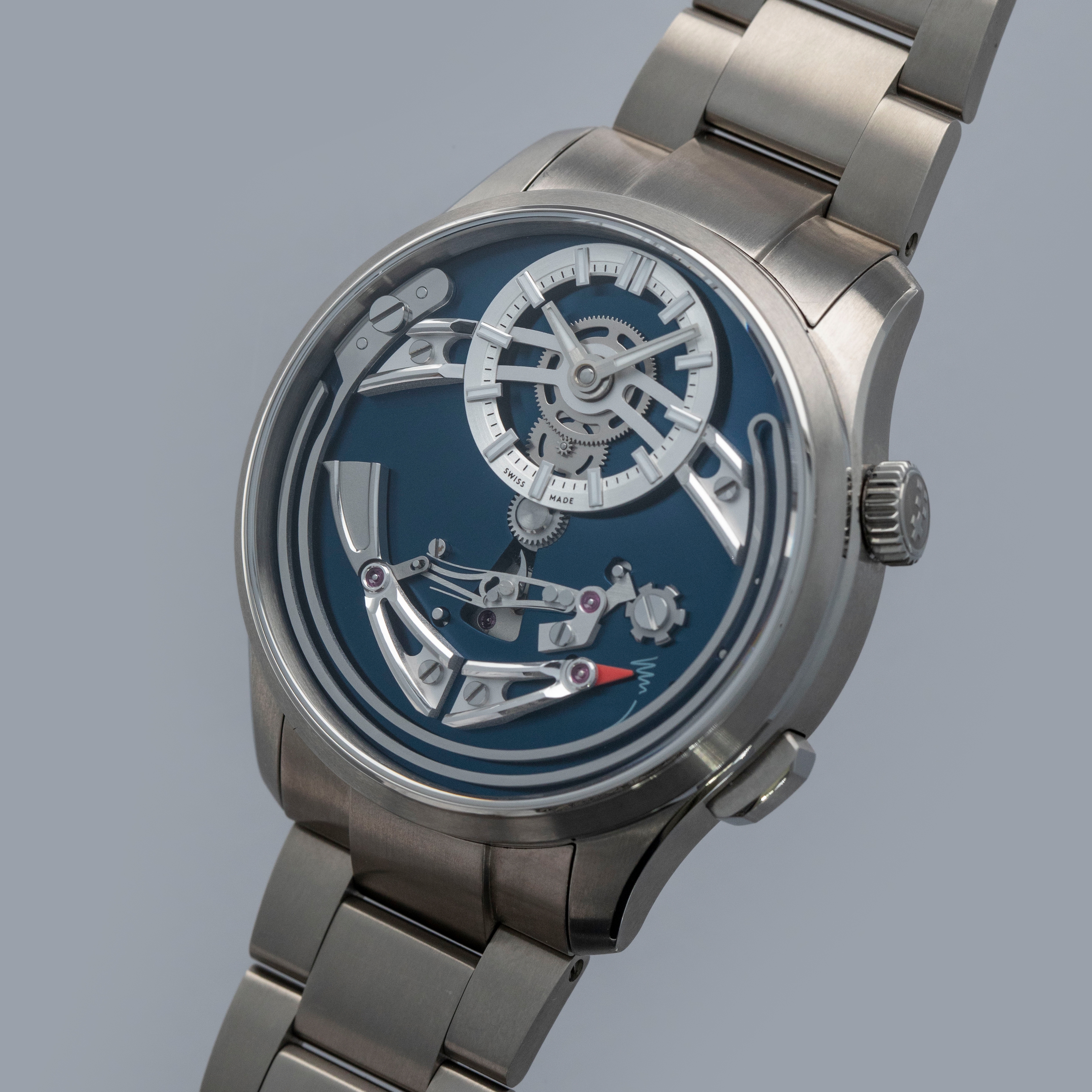 Made of titanium and measuring 41mm in diameter, the Bel Canto is a comfortable watch that doesn't sacrifice on wearability for the sake of its complication. Offered on a titanium bracelet too, this watch gives a sportier edge to the Bel Canto than its leather-strapped siblings.
