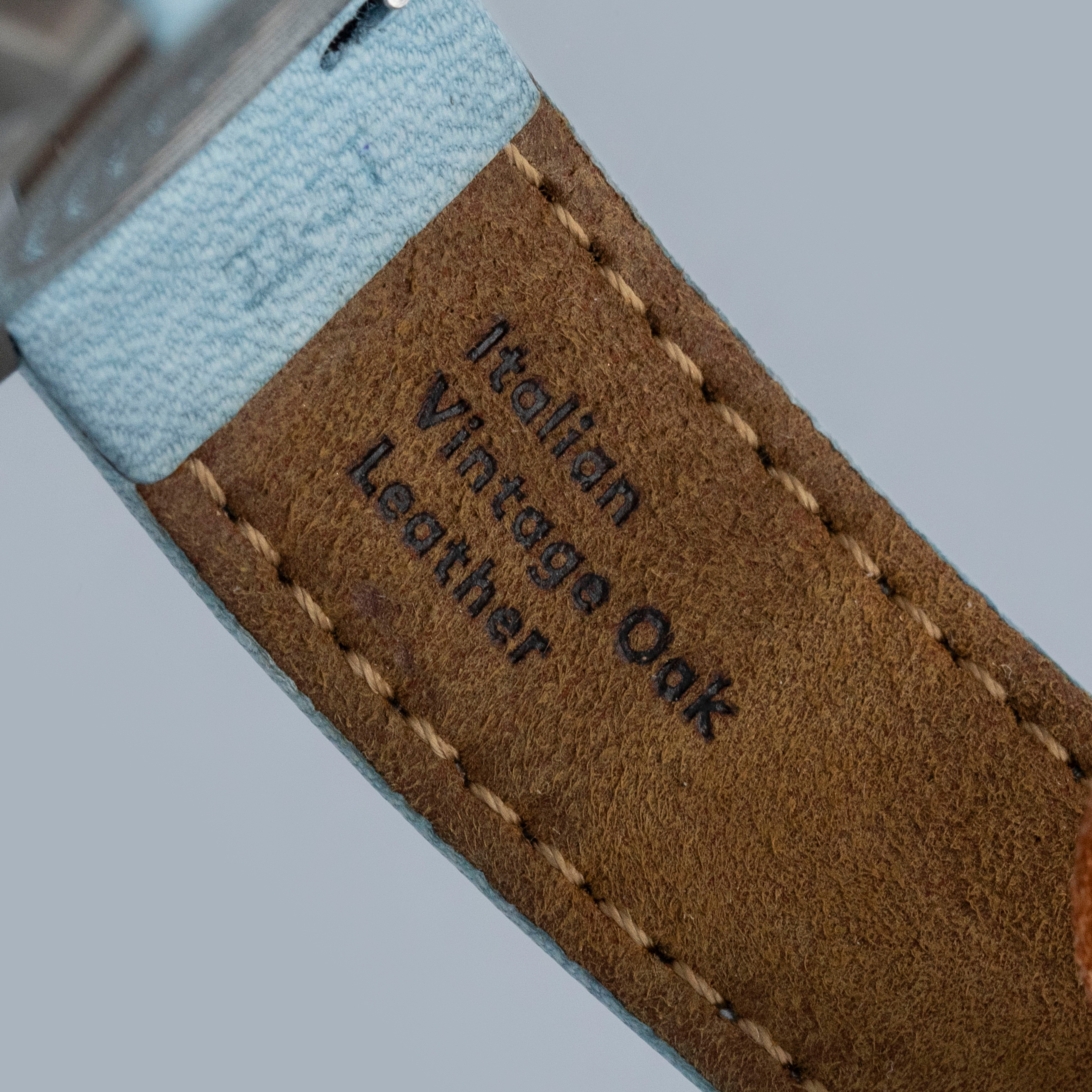 The watch is in like-new condition. There are a couple of light marks on the case back and on the pin buckle from light use. It comes complete with its original box and papers.