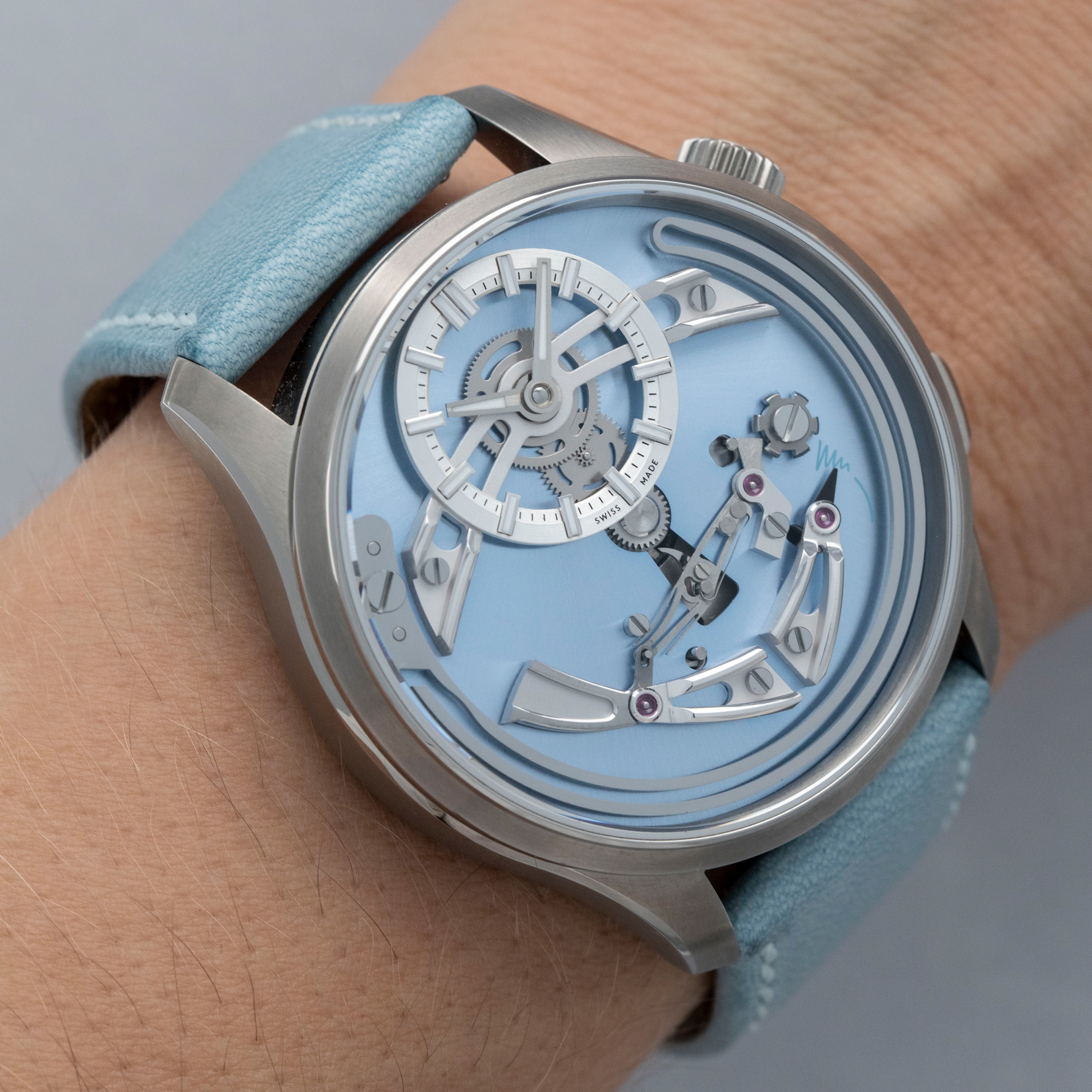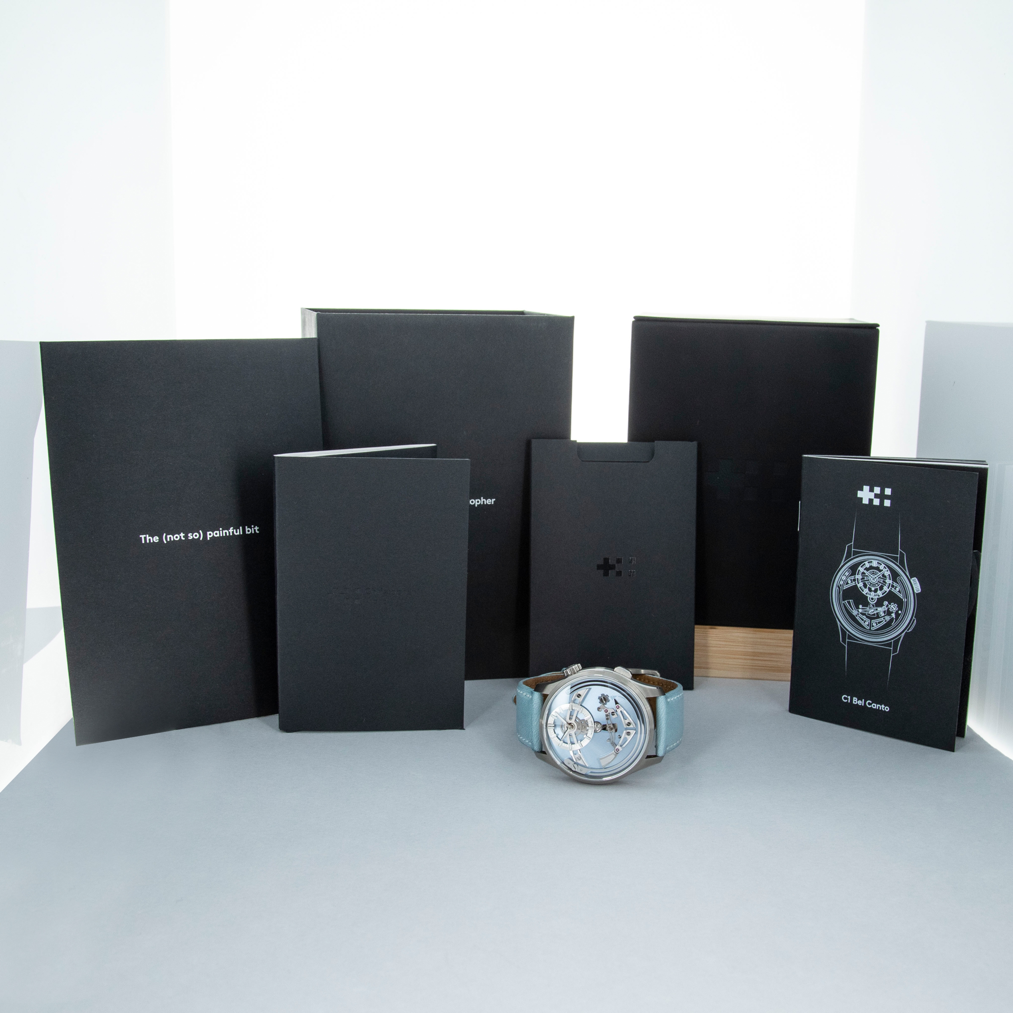 Made of titanium and measuring 41mm in diameter, the Bel Canto is a comfortable watch that doesn't sacrifice on wearability for the sake of its complication.