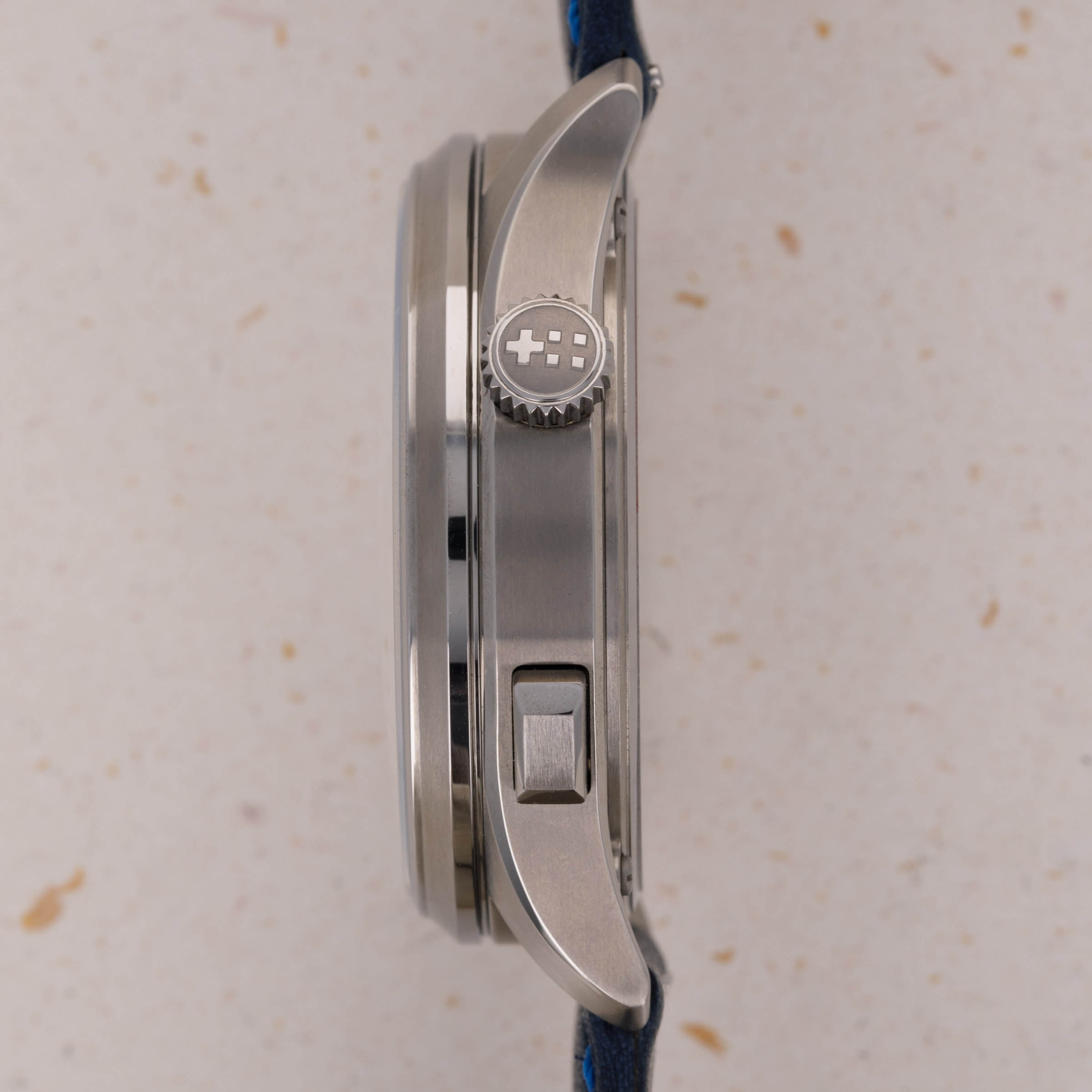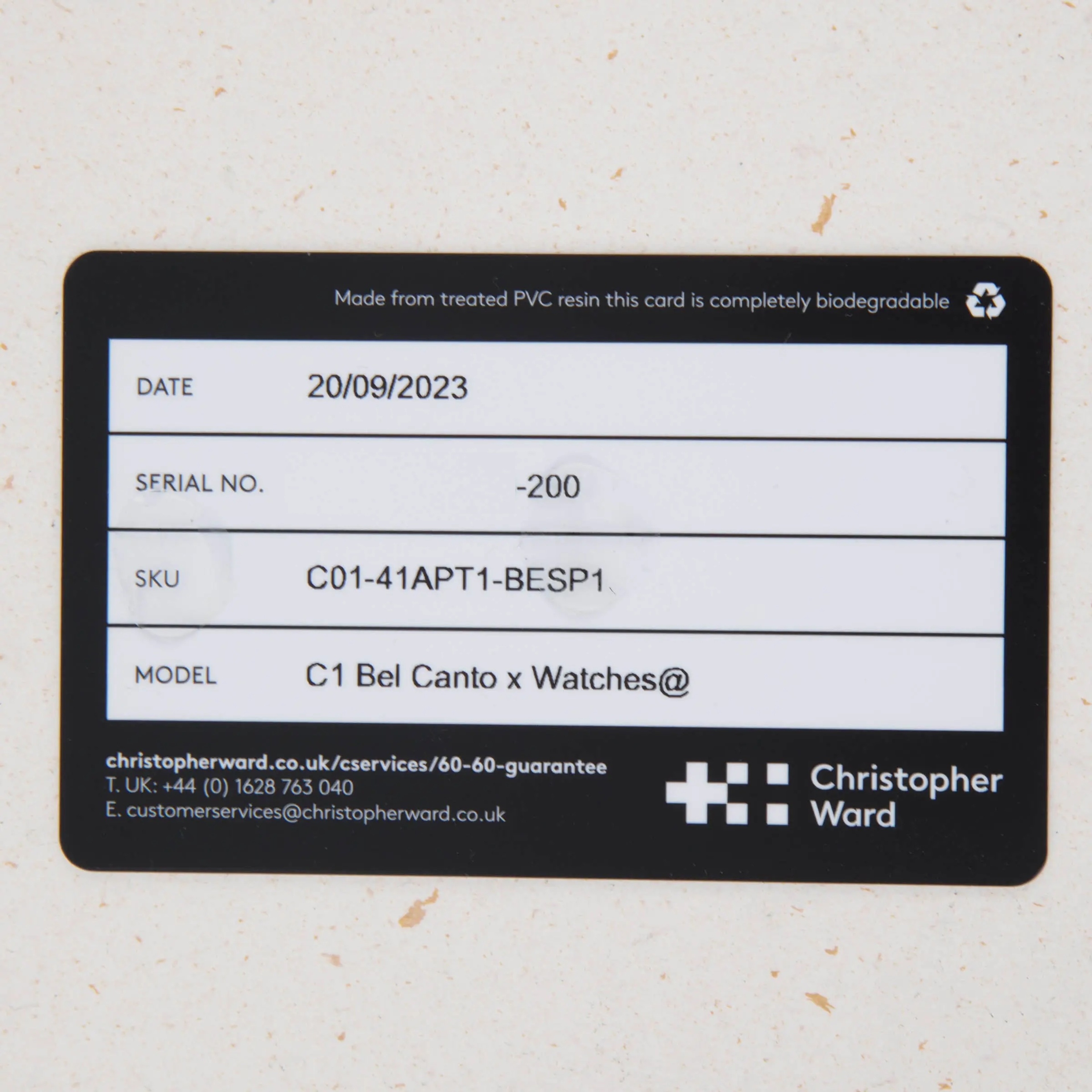 It’s not often a relatively new watchmaker sets the world of horology alight. Typically brands incrementally improve their offerings and slowly develop a fanbase. And while Christopher Ward has done those things too since their launch in 2004, they have recently begun to release homerun after homerun with an increasingly long line of admirers beginning to finally pay attention to what they are putting out, and one of the watches they have to thank for that is the Bel Canto – perhaps one of the best value propositions in all of watchmaking. Launched in 2023 as a limited edition release of just 300 pieces, the Bel Canto collection offered collectors the ability to add a chiming watch to their collection for just $3,595. Offered here, however, we a watch offered outside of the Bel Canto’s regular production – the special variant made in collaboration with the watch collector group Watches@. Made of titanium and measuring 41mm in diameter, the Bel Canto boasts a stunning display that showcases its chiming parts and some of its time-telling assembly. Powered by the automatic cal. FS01 movement, the Bel Canto is a ‘sonnerie au passage’ whereby it chimes the new hour every hour – an impressive complication to offer for Christopher Ward’s price range and a serious marker of their intent as a watchmaker with an eye on doing things no one else has ever done before. However, as a Watches@ collaboration, this limited edition variant of just 200 pieces features some unique flourishes, such as its heavily-grained dial texture, which contrasts the Bel Canto’s typical sunburst finish, the Watches@ logo engraved on its caseback and blued hands instead of the collection’s typical silver and red hands.