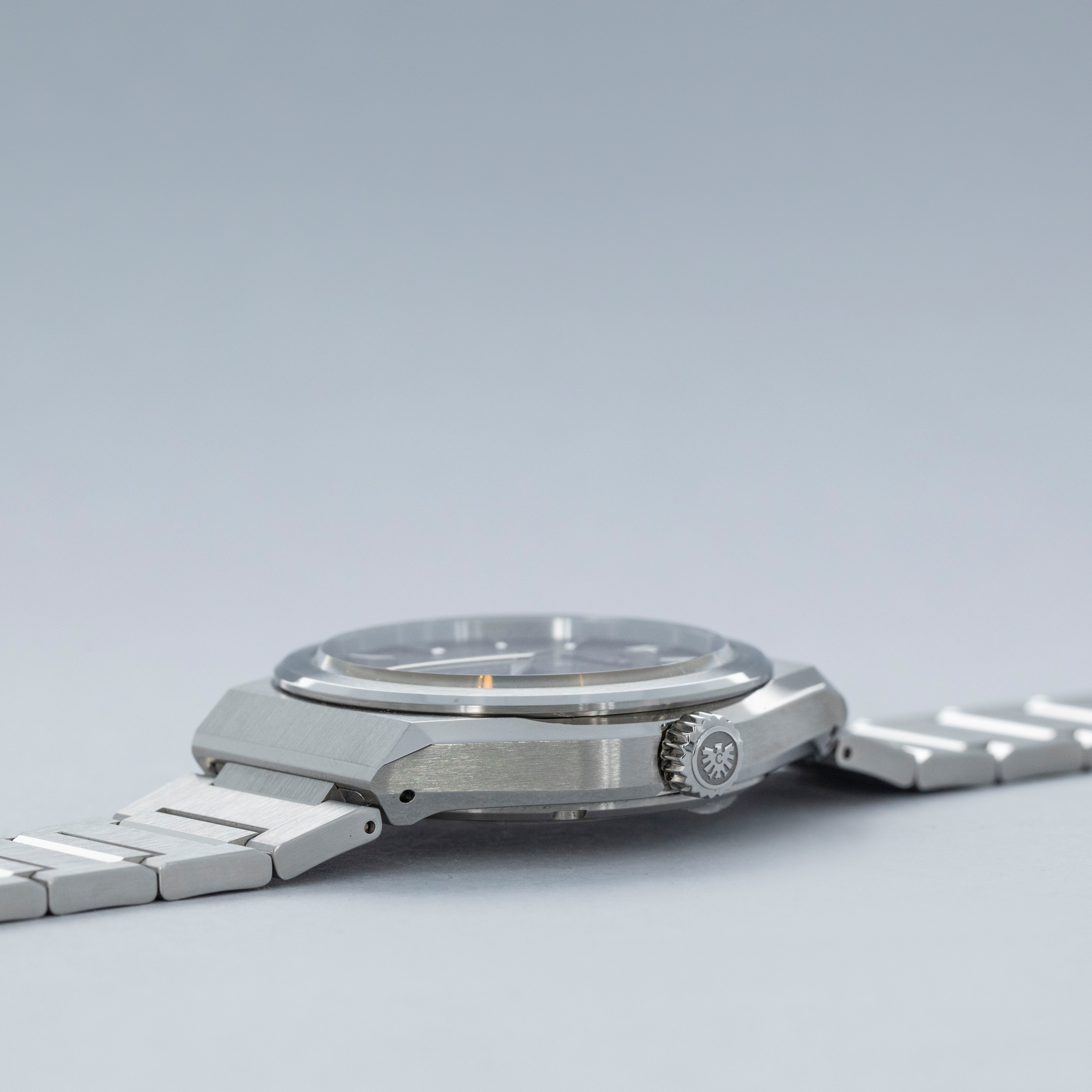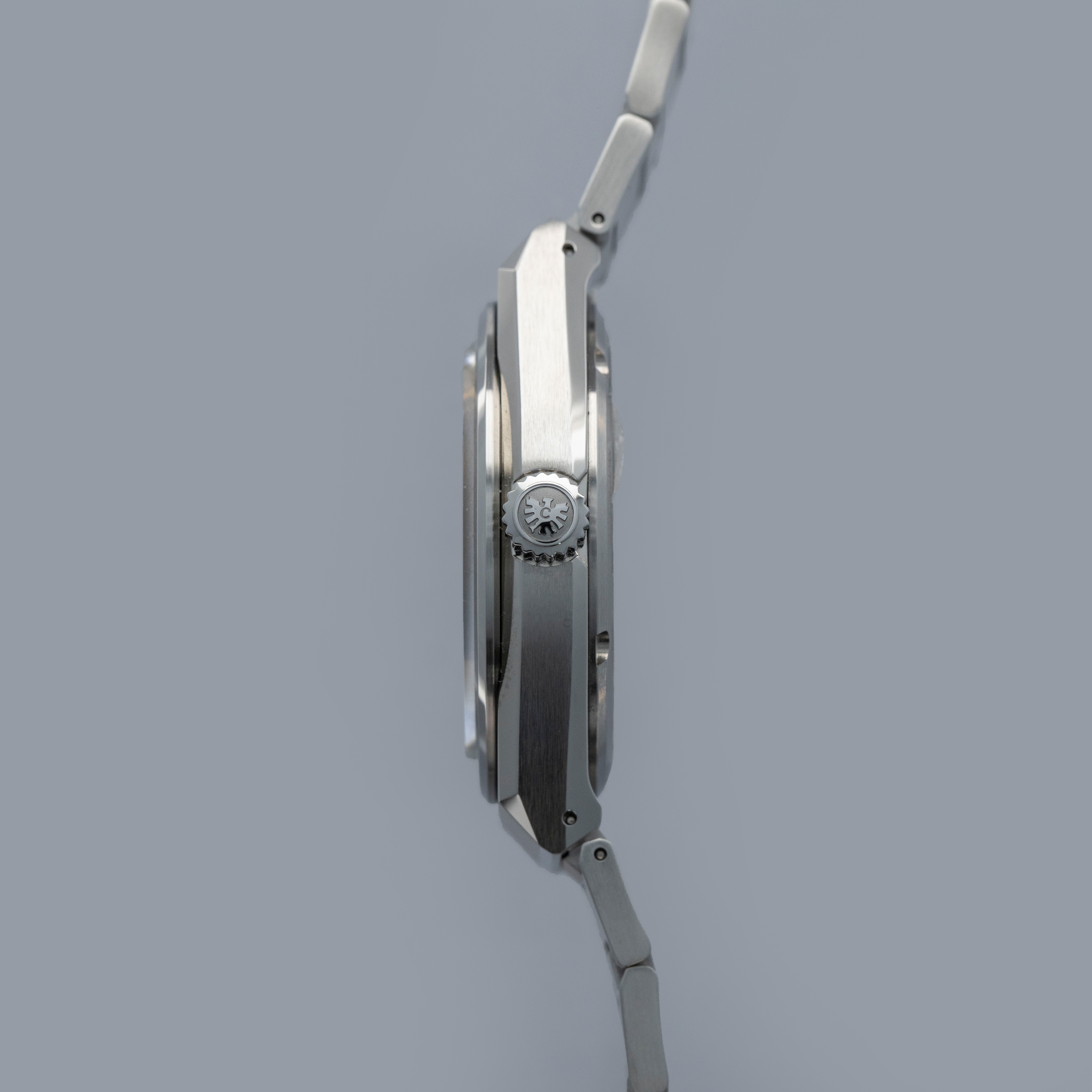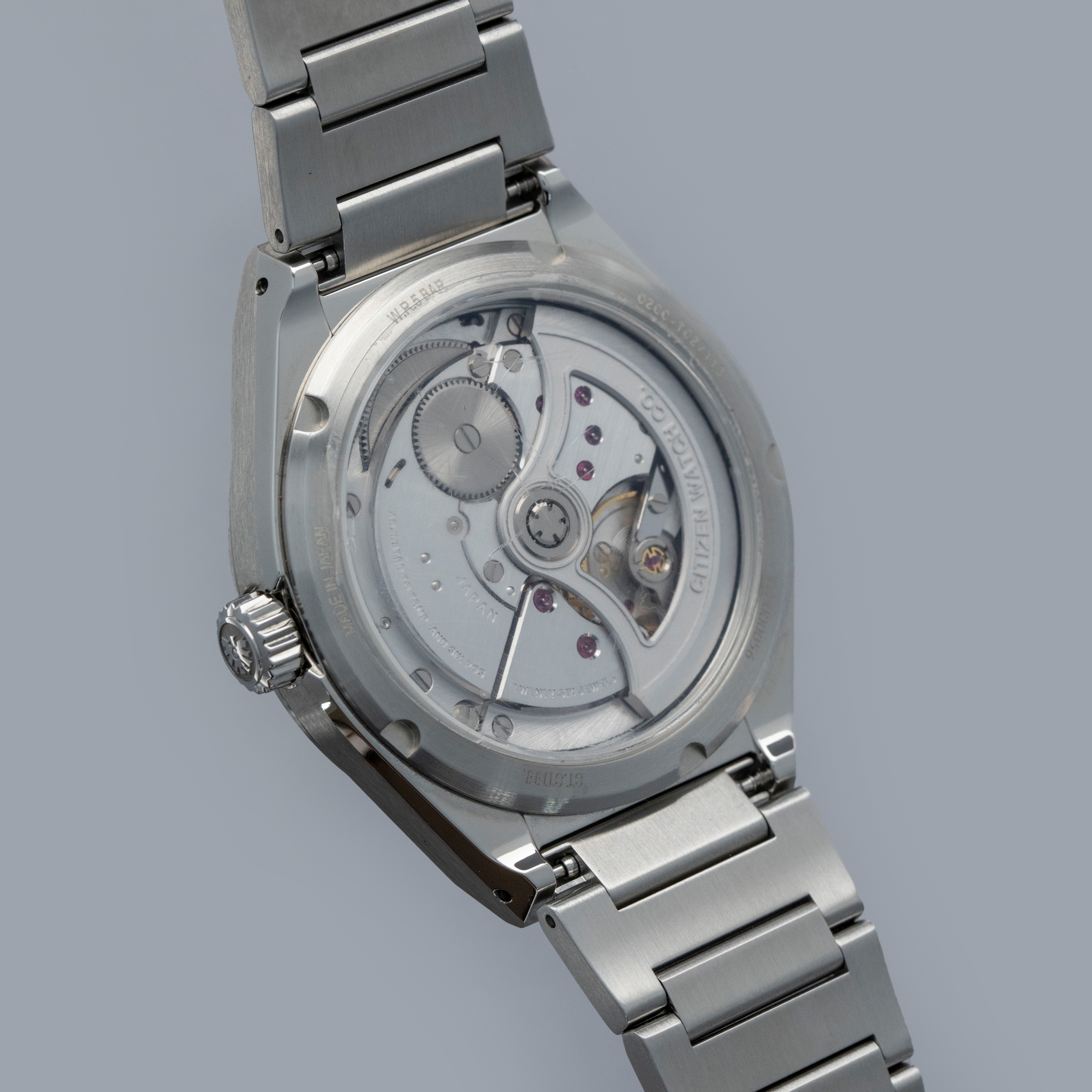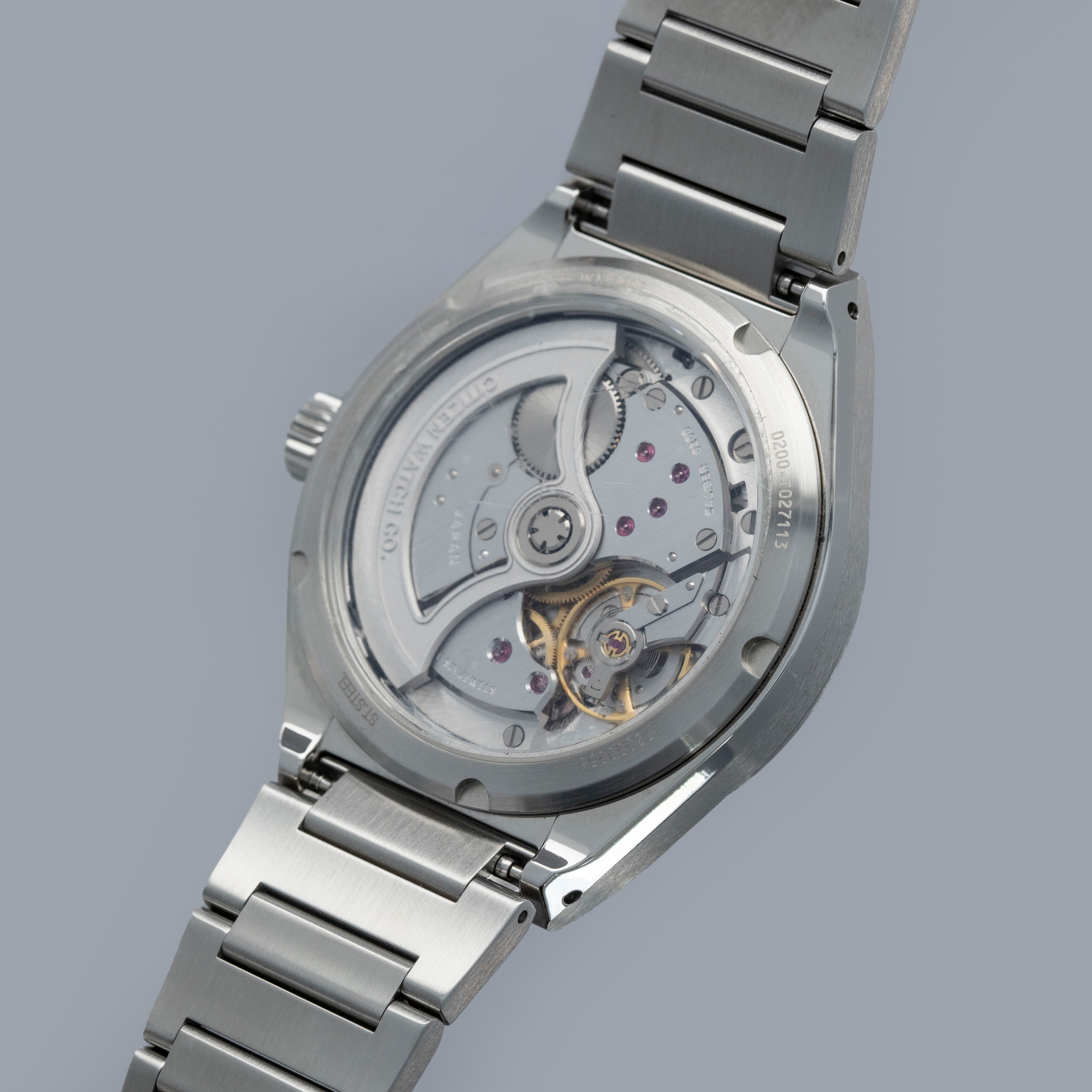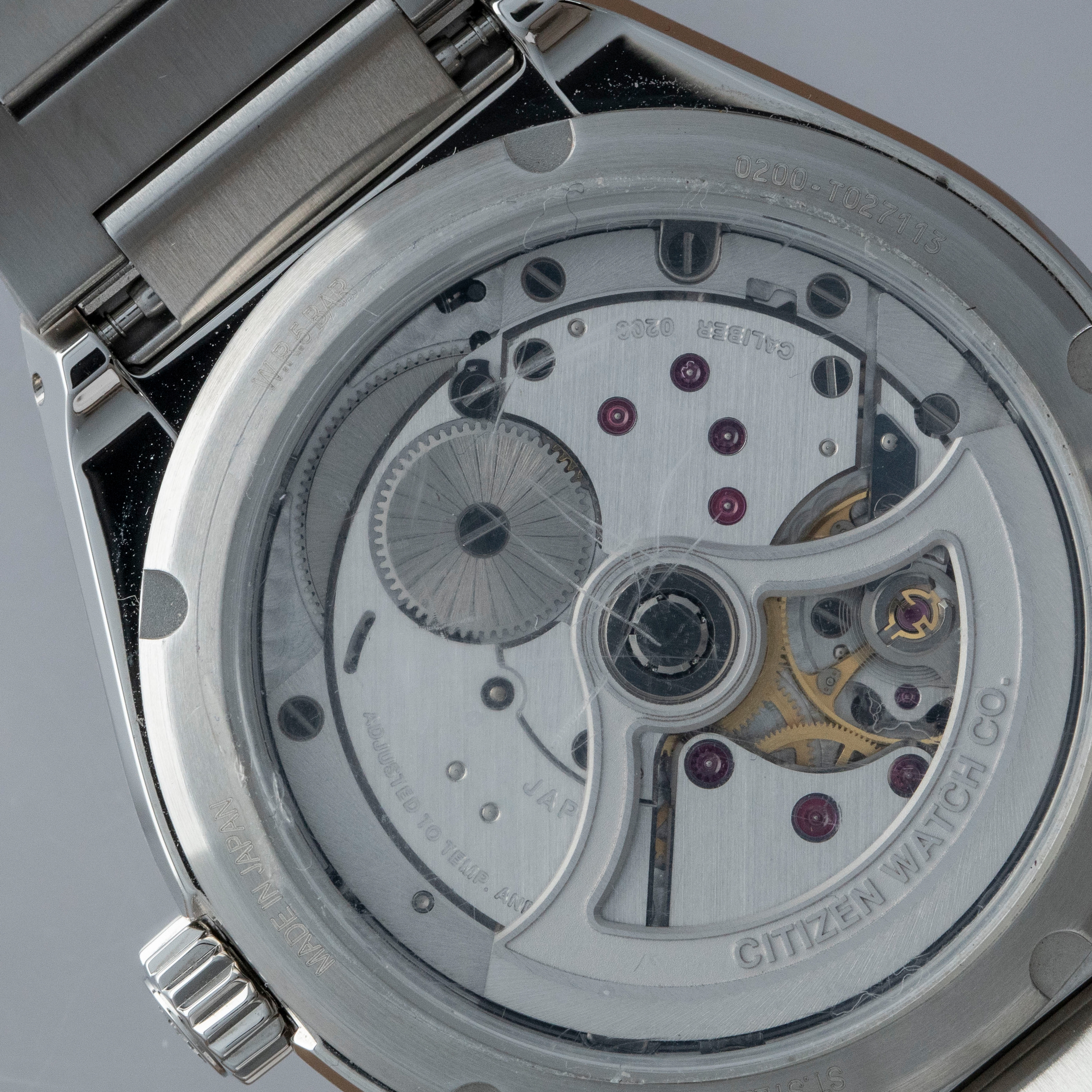 While they might be famed for their hyper-accurate quartz watches, Citizen saw this as an opportunity to push the boat and create their own high standard of accuracy for mechanical timepieces. As such, in 2021 they collaborated with La Joux-Perret, the Swiss movement manufacturer who they acquired in 2012, in a bid to combine the best of their design and assembly expertise with the best of the Swiss maker's movement manufacturing and finishing expertise. As a result, The Citizen that we have here was created, the ref. NC0200-90E, along with two other references. Powered by the automatic cal. 0200, which was Citizen’s first mechanical movement in 11 years at the time, with an accuracy of -3/+5 seconds per day, the ref. NC0200-90E is a high-end Japanese mechanical sports watch that rivals the craftsmanship and quality of other Japanese brands like Grand Seiko. Boasting a textured black dial that was the result of the electroforming technique used to create the dial, the timepiece’s display immediately differentiates itself from other, more accessible watches from Citizen. With sharp dauphine hands and faceted applied indices, the ref. NC0200-90E’s display echoes the same design language used throughout its angular tonneau-shaped 40mm stainless steel case that creates quite a unique wearing experience indeed.