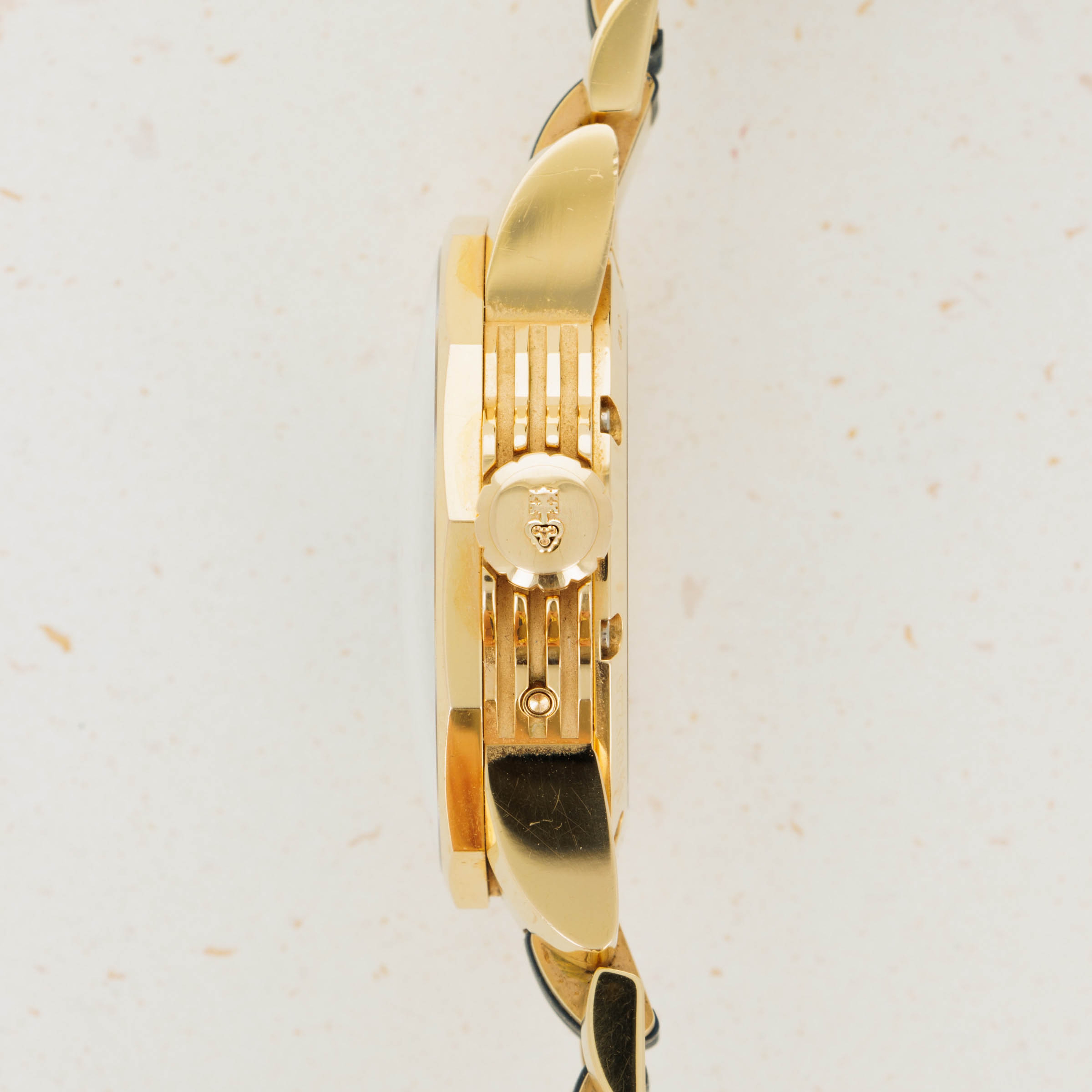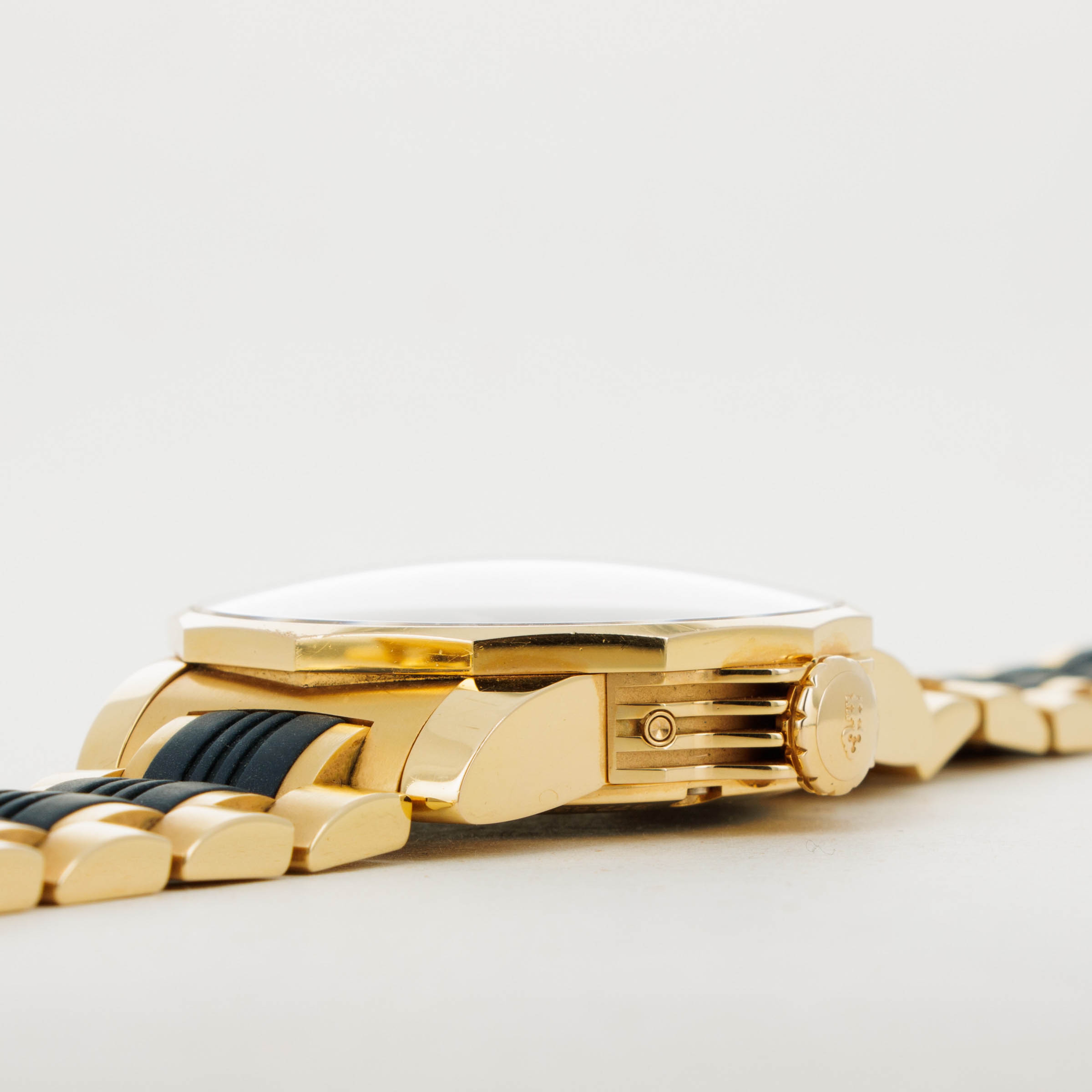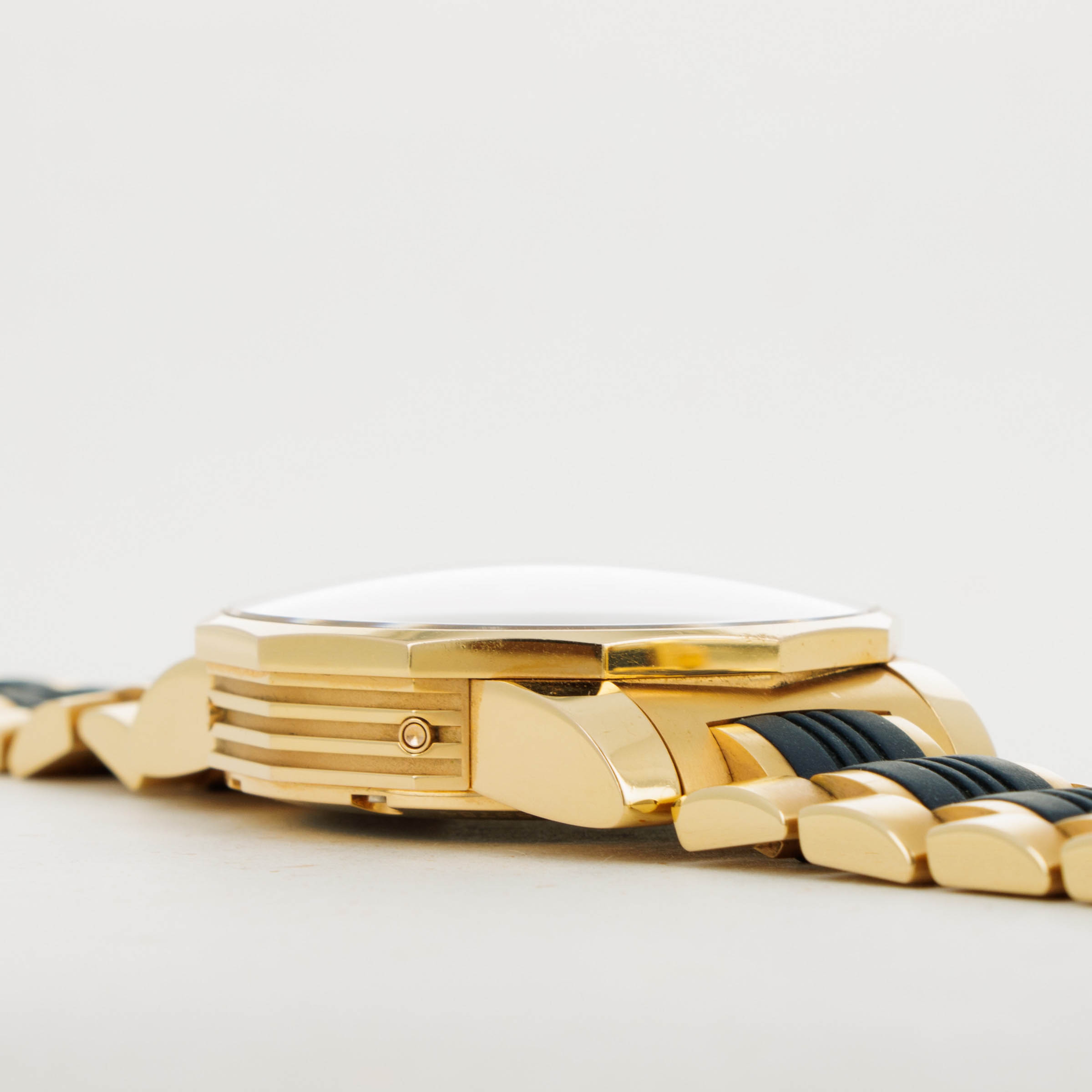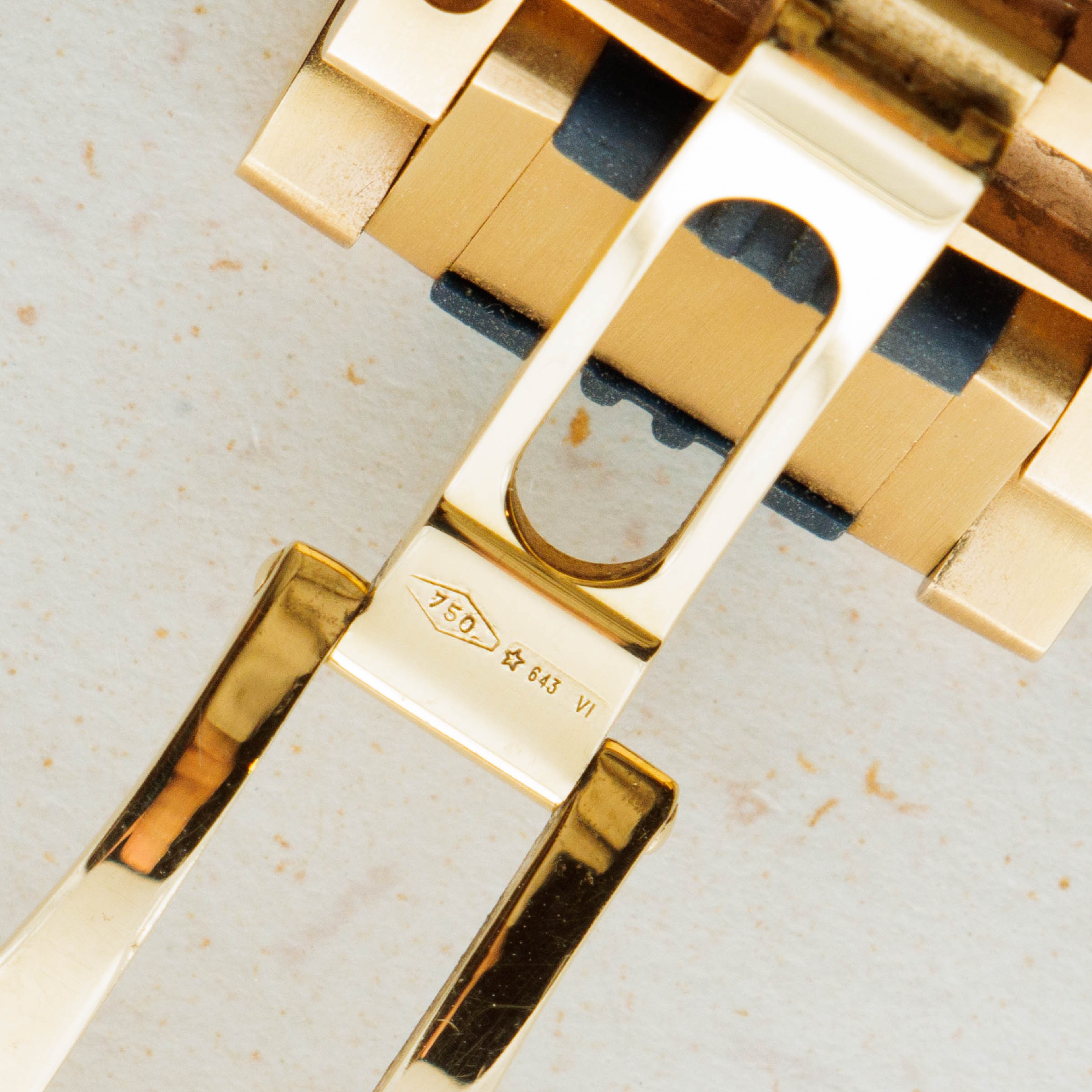 Watch is in overall excellent condition. Rose gold case exhibits some minor surface wear and scratches. The caseback engravings are crisp and have good definition The rose gold and rubber bracelet show comesurate minor wear and little to no stretch. There are 13 links, 3 of which are removable.