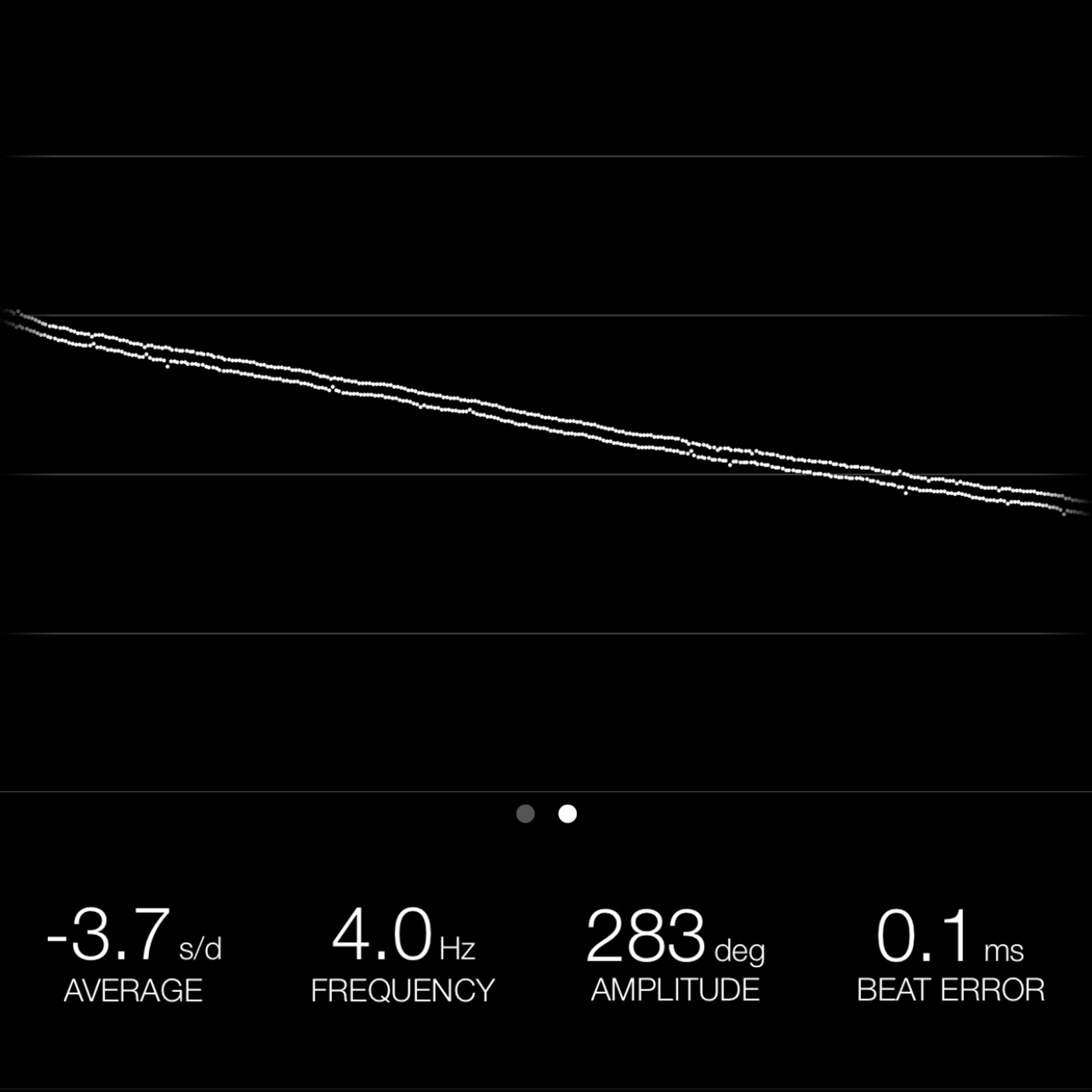 This reading was taken (crown down) with a ONEOF Accuracy Boutique Edition timing machine at time of cataloging. It is provided as a courtesy only, and shall not be construed as a warranty or guarantee of any kind. Please refer to our terms and conditions of sale for more information.