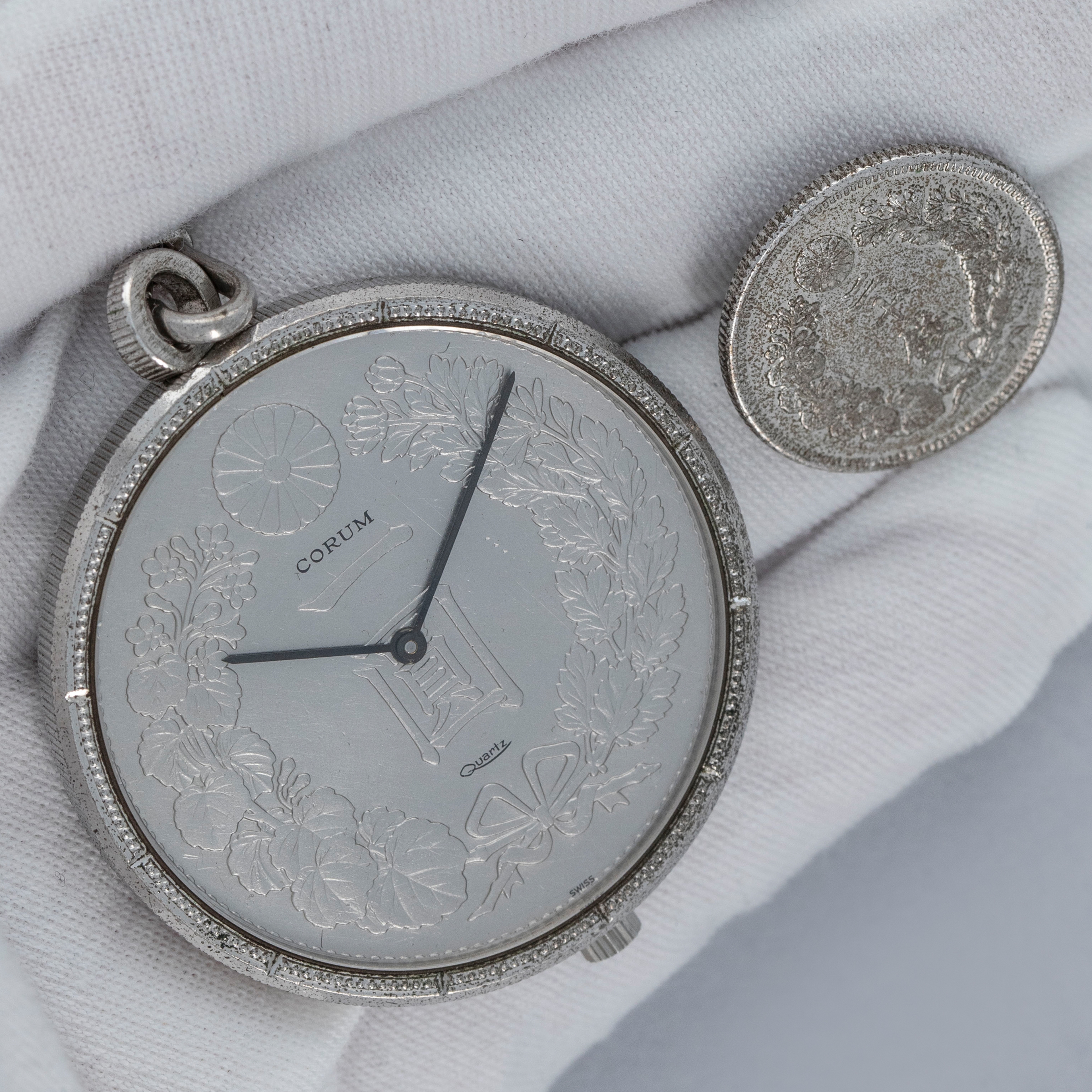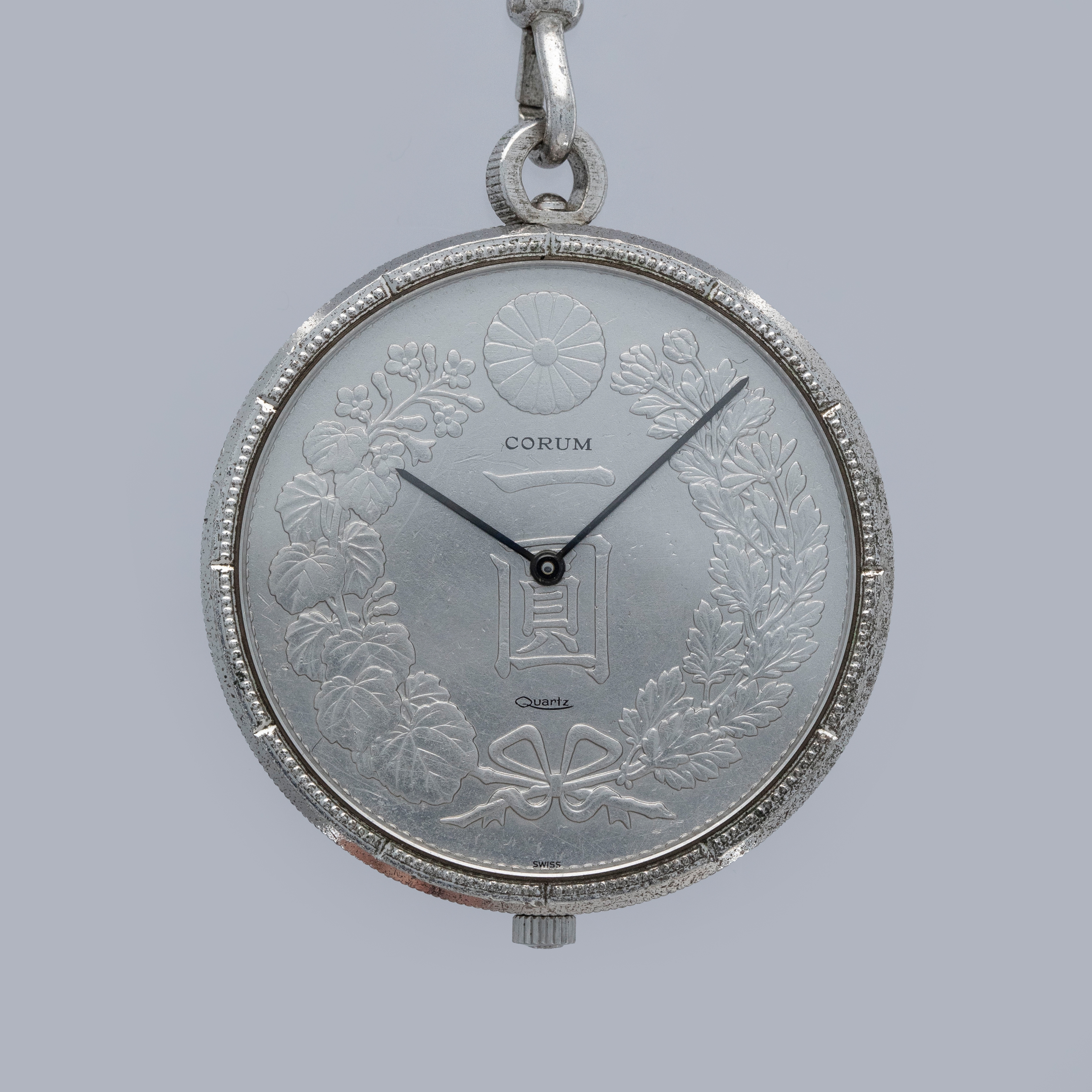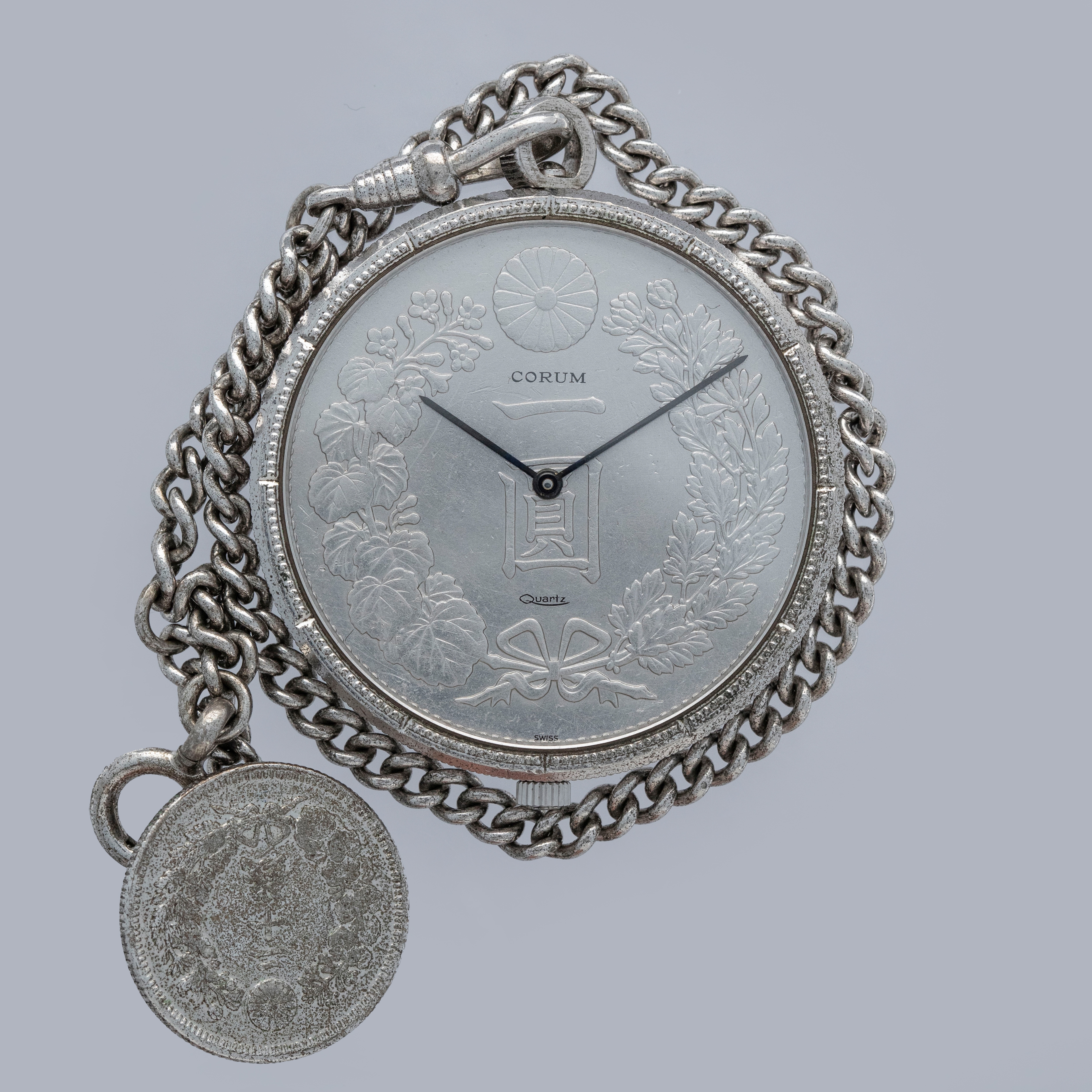 Founded in 1955, Corum are a watchmaker famed for their unique outlook on horological design, with collections such as the Coin and Bubble both standing as aesthetically unique and interesting. Belonging to the Coin collection, the watch that we have here is not a wrist watch, but a pocket watch using a 1 Yen Japanese silver coin from the Meiji Era, which ran from 1868 until 1912, while Emperor Meiji was the ruler of Japan. Made using 900 grade silver with 90% silver and 10% copper, this 40mm coin pocket watch is powered using a quartz Corum movement, and lacks almost any form of inscription with the exception of small black printed inscriptions reading “Corum” and “quartz”. Featuring a silver chain, this is a marriage between world history and horology.