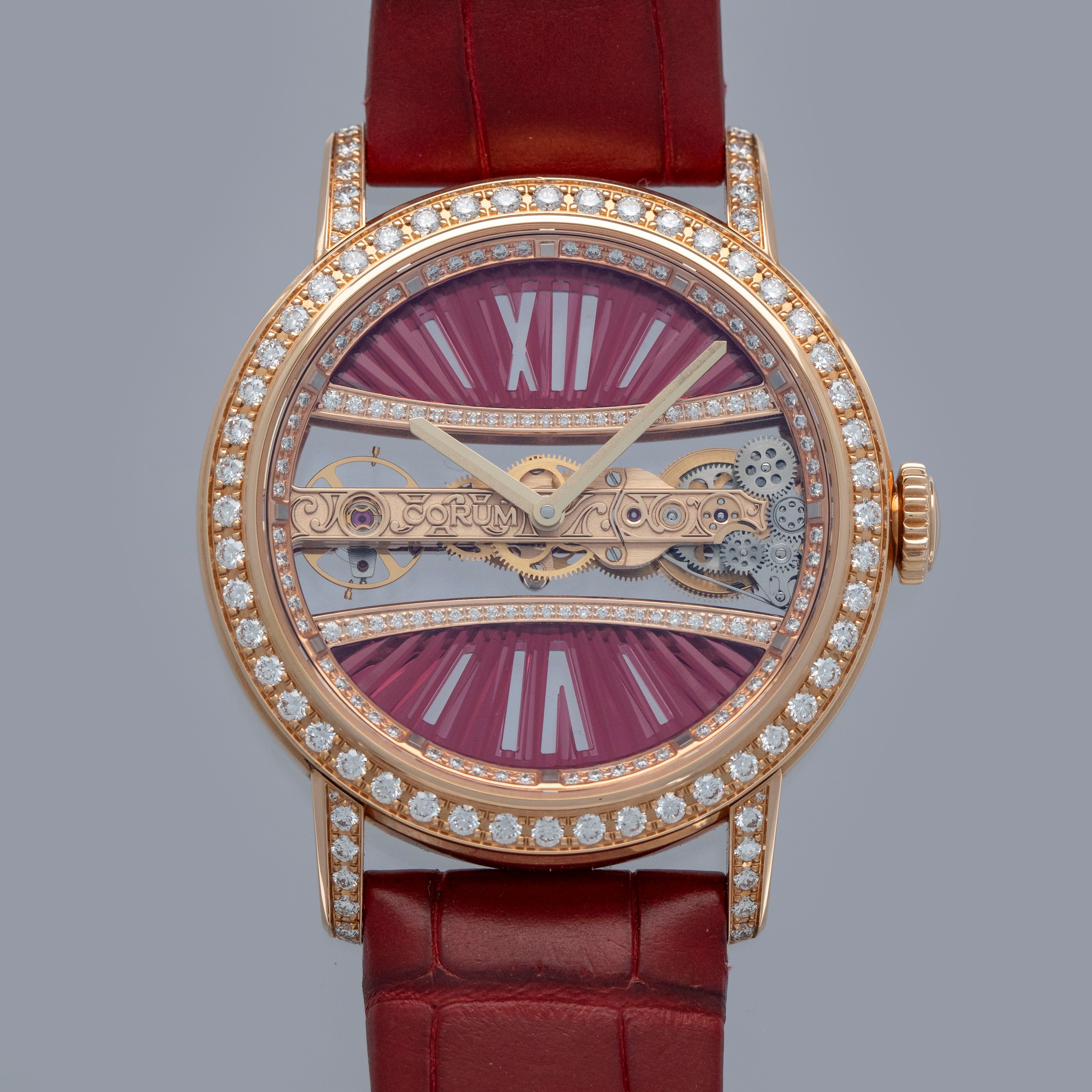 Founded in 1955, Corum are a watchmaker famed for their unique outlook on horological design, with collections such as the Coin, Bubble, and Golden Bridge – all of which standing as aesthetically unique and interesting timepieces that break free from traditional aesthetic and horological standards. Offered here as part of the Golden Bridge collection we have the Golden Bridge Round ref. B113/03277. Designed like the rest of the Golden Bridge collection, but with a twist, the ref. B113/03277 features the collection’s signature internal design whereby its straight line movement makes up almost all of the clock’s internal workings and architecture. However, instead of being vertical, it is horizontal in the ref. B113/03277, which translates through to the watch’s design via its round case shape, as opposed to the typical rectangular design for the Golden Bridge collection. Featuring a diamond-set dial and case, the ref. B113/03277 is a wonderfully avant-garde exhibition of Corum’s unique design language and ingenious watchmaking craftsmanship.