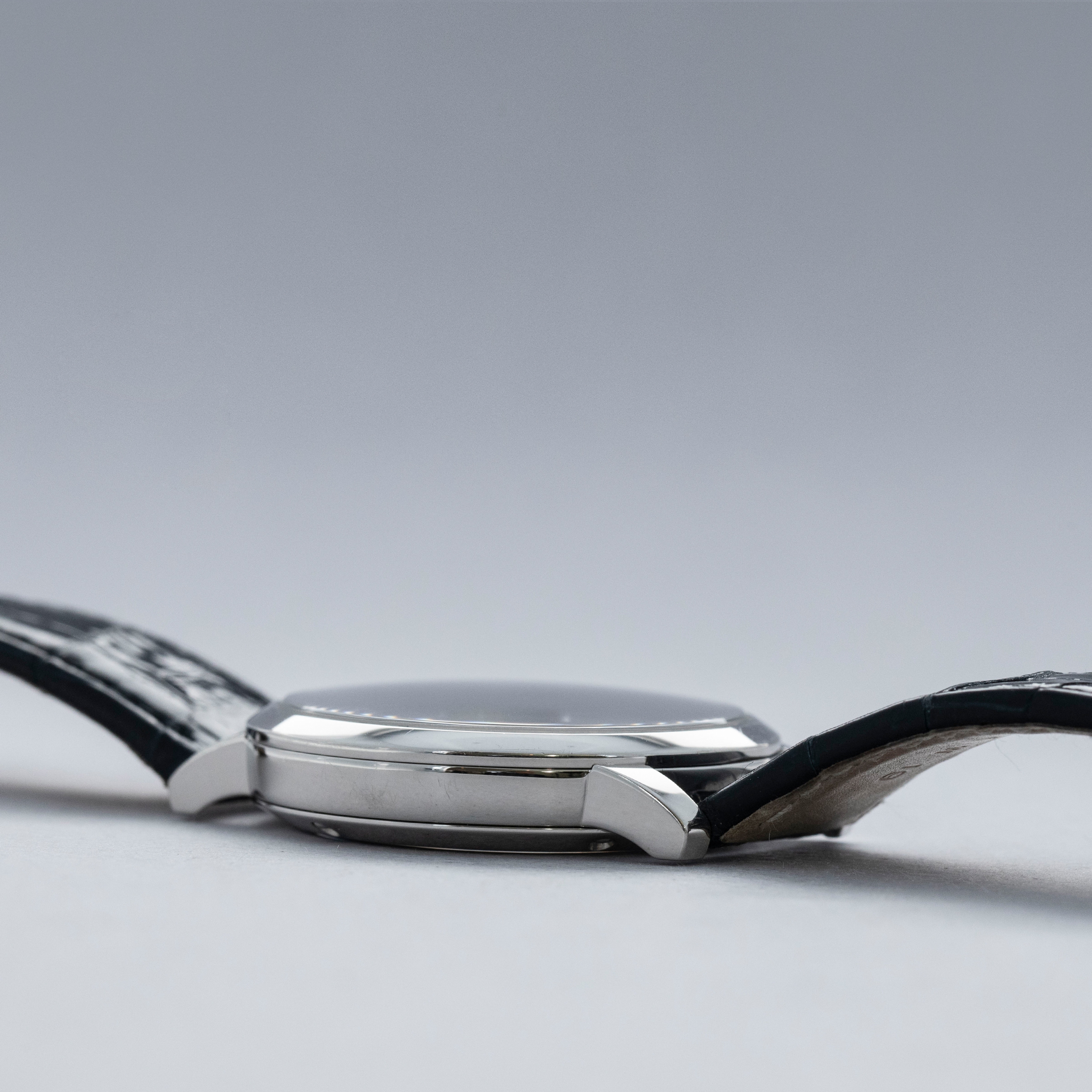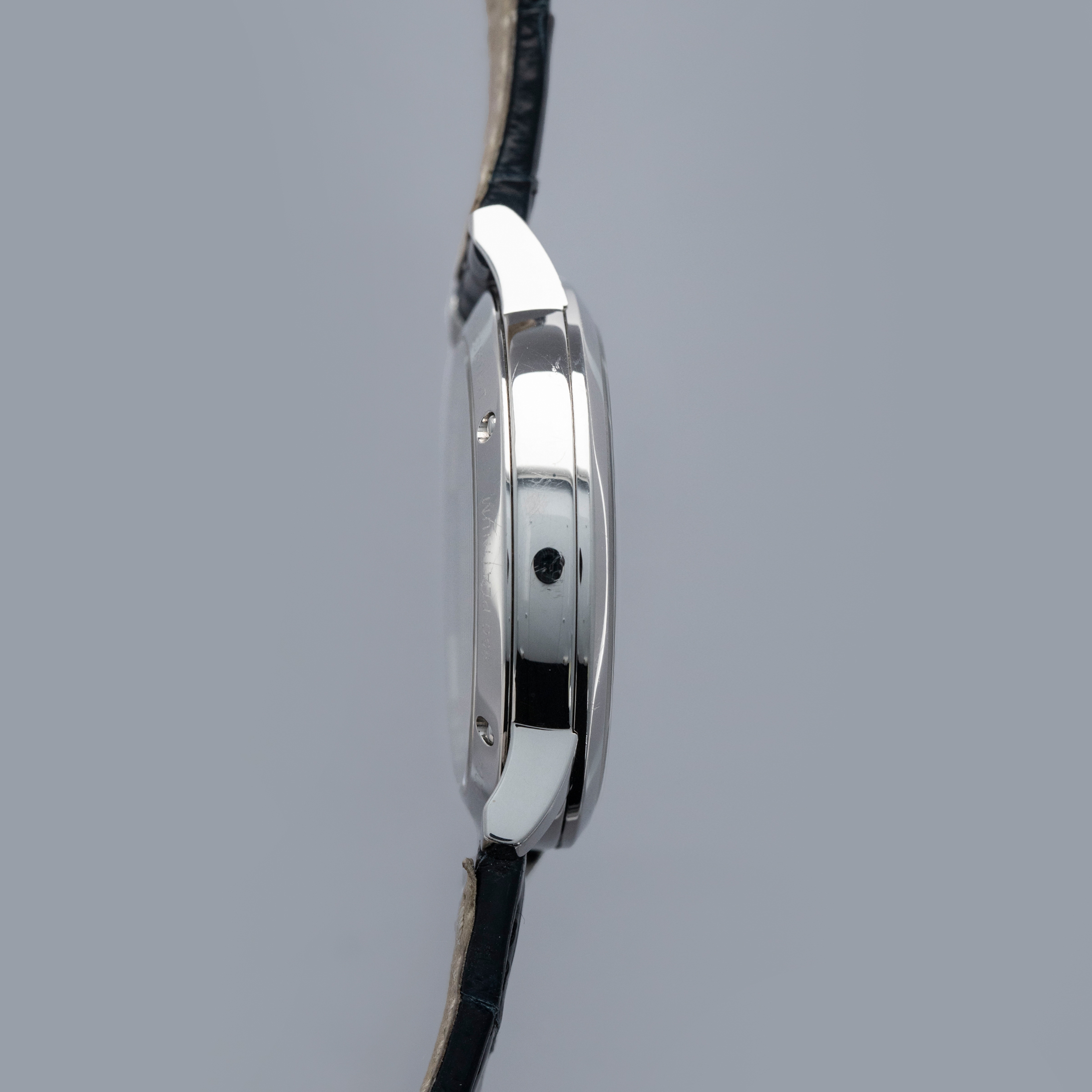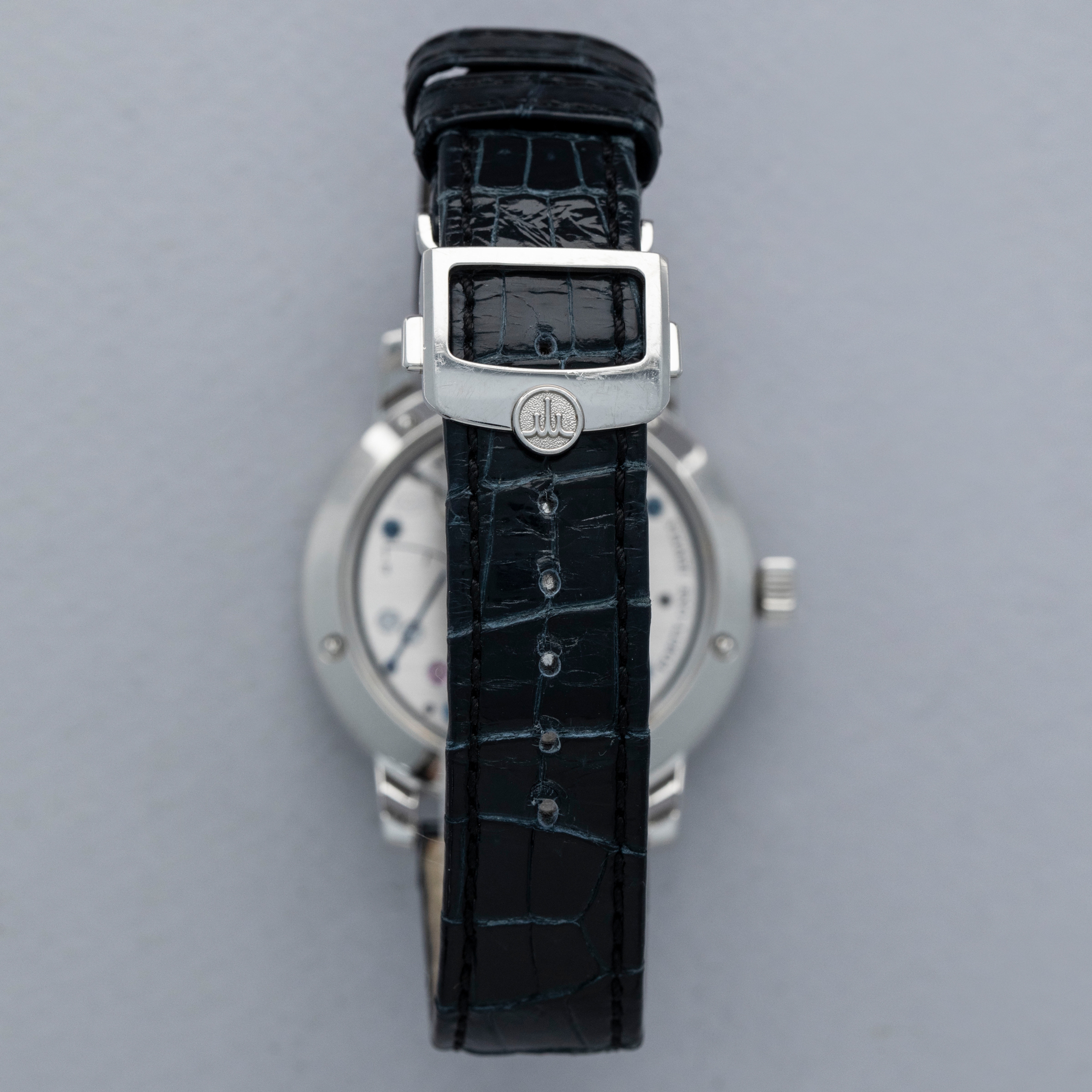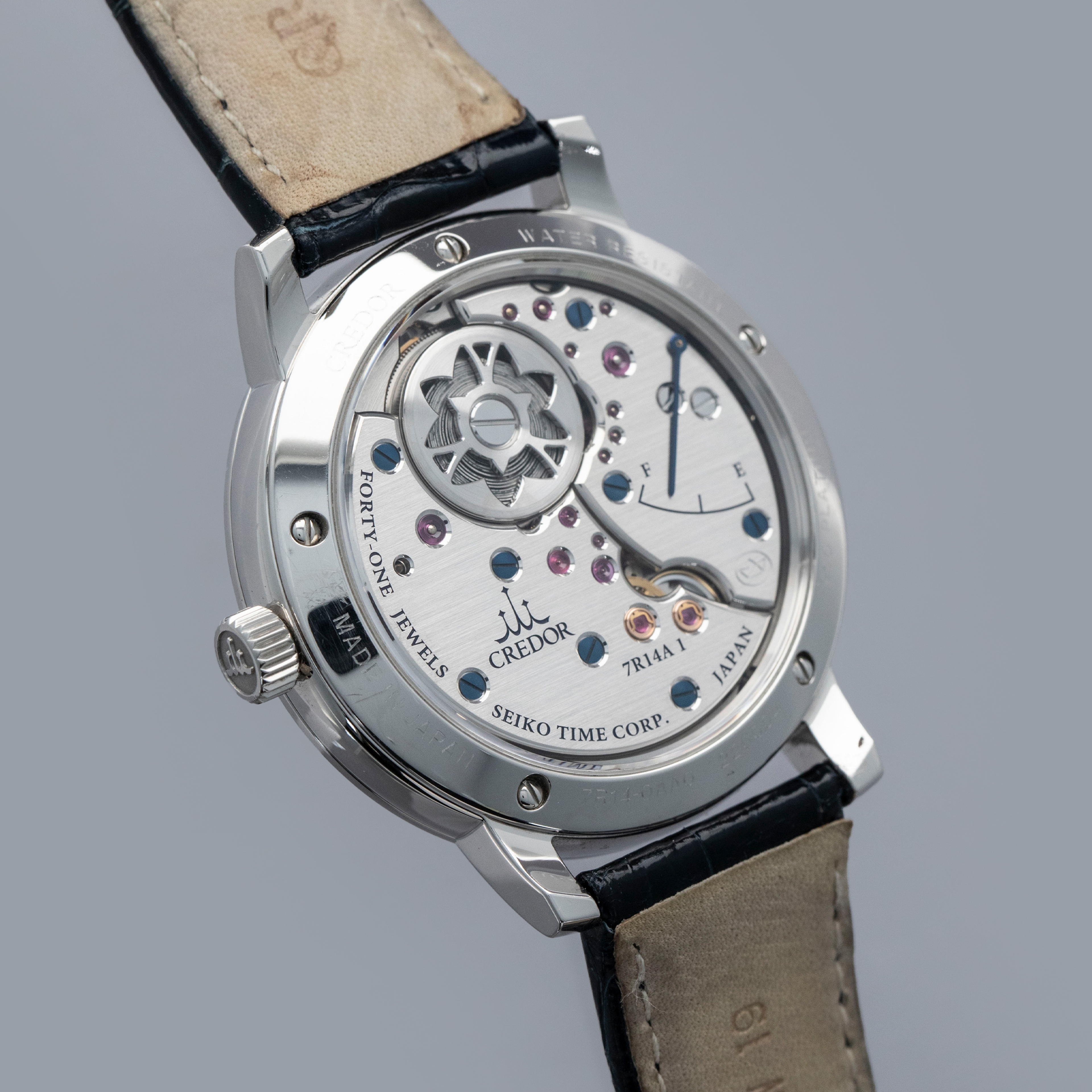 The watch is in overall excellent condition. The platinum case is well-defined but has a number of light scratches and scuffs on the polished bezel and case sides. The display case back has very well-defined engravings on the outer edge. The dial and hands are near-mint. It is fitted with a Credor alligator strap with a platinum deployant clasp showing light surface scuffs. The watch comes complete with boxes, warranty, booklets and paperwork. The name on the guarantee certificate has been cut out as seen in the images.