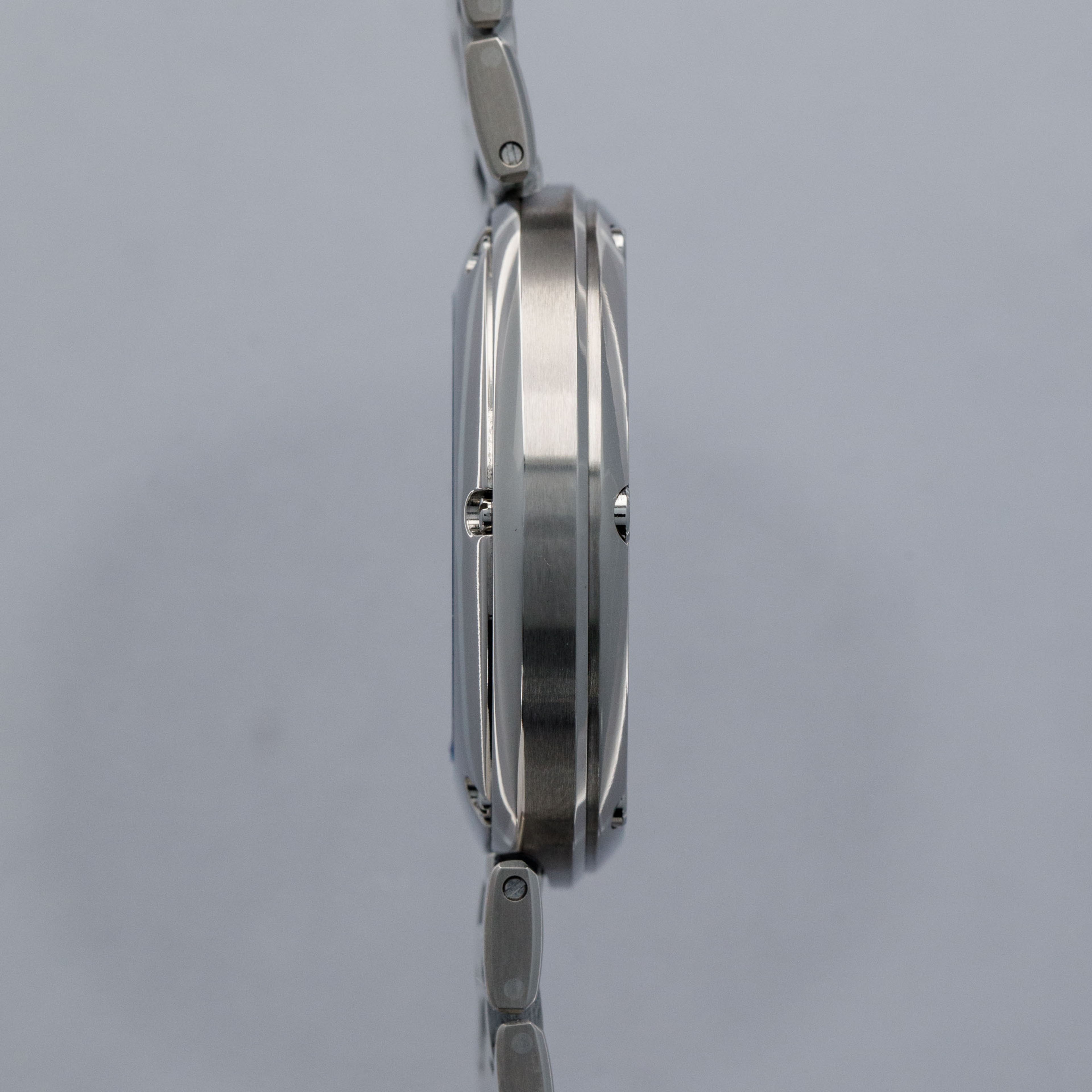 The watch is in like-new condition, with only a few light handling marks visible. The bracelet currently fits a 6 1/2” wrist, and is fitted with 15 links. There are 6 additional links included. The watch comes complete with its original box and papers.