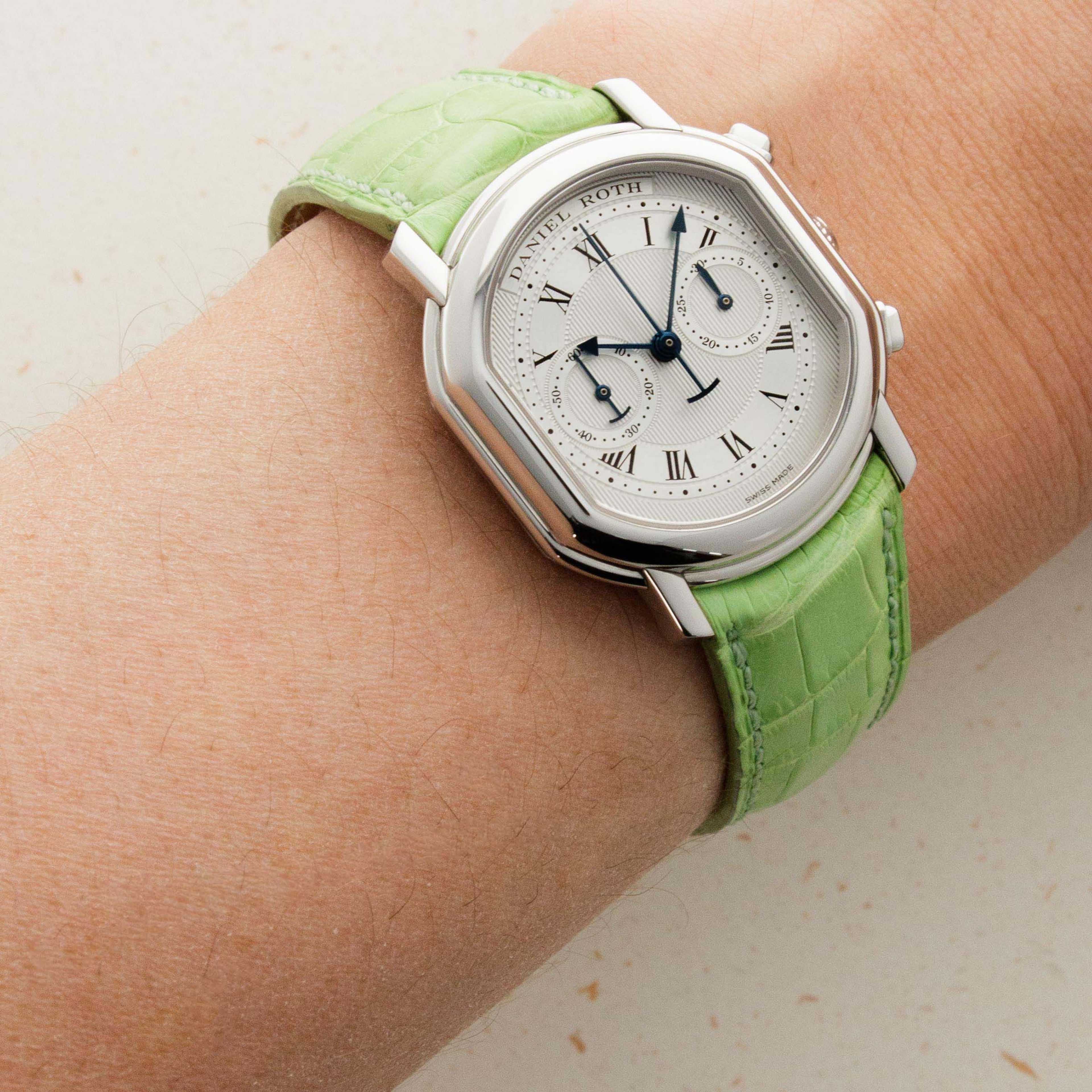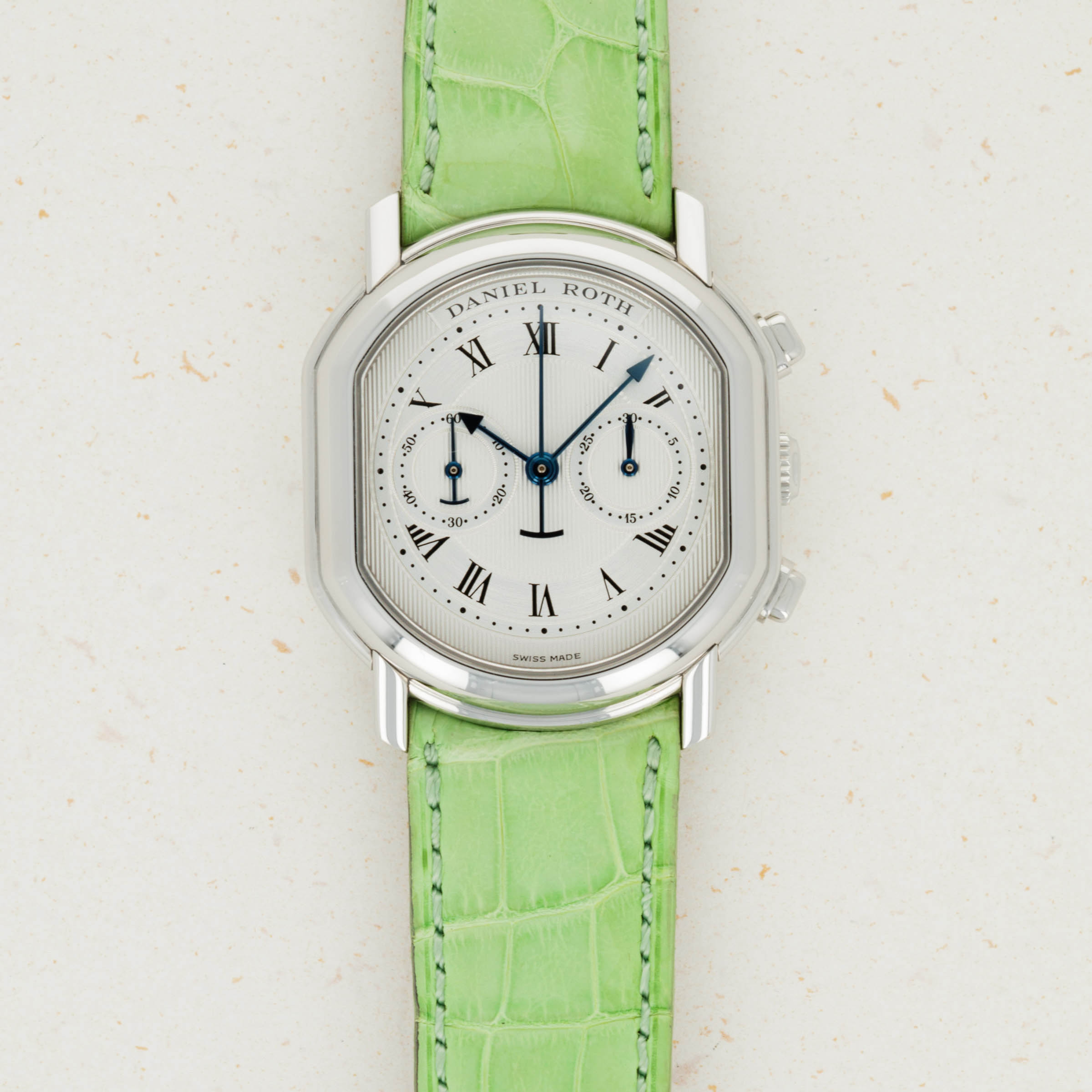 Featuring Daniel Roth's signature ellipsocurvex-shaped case, this example is unapologetic in its distinctive styling and uncompromising wrist presence.