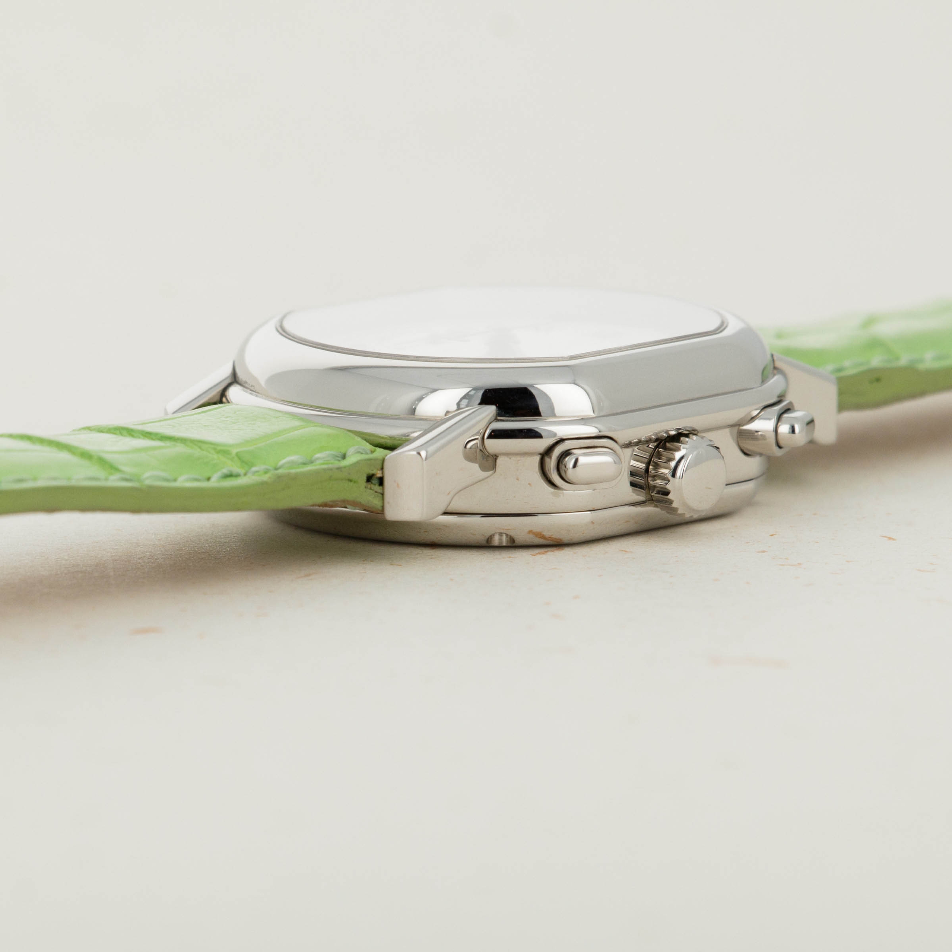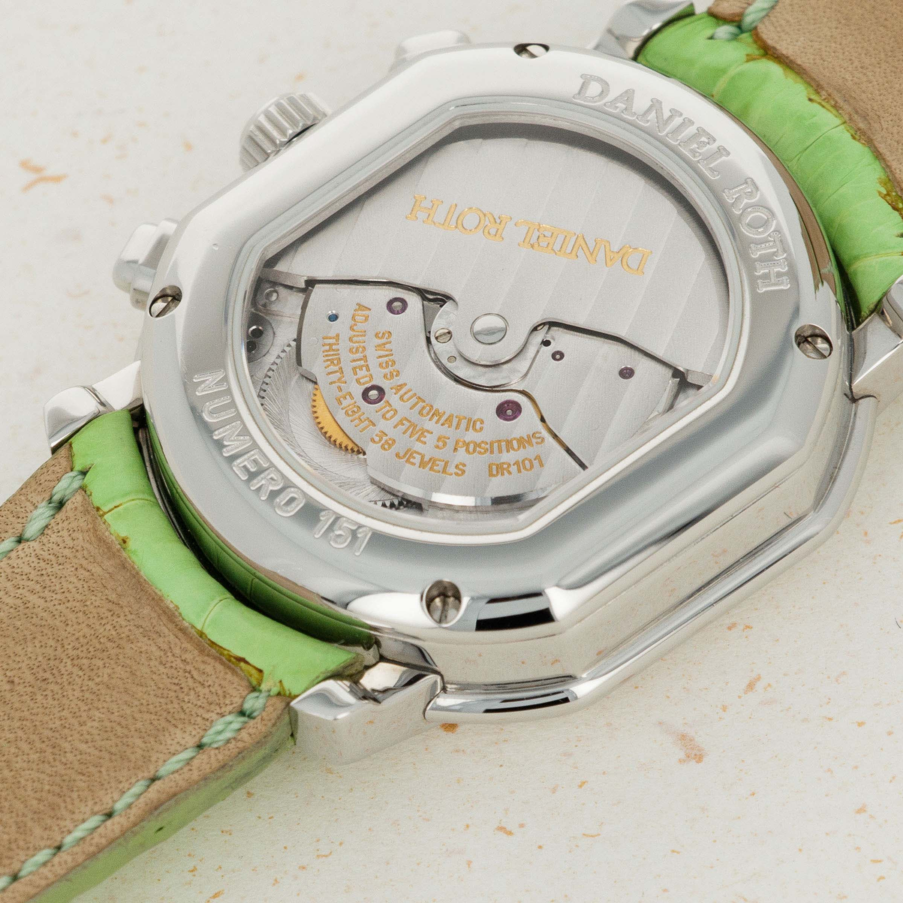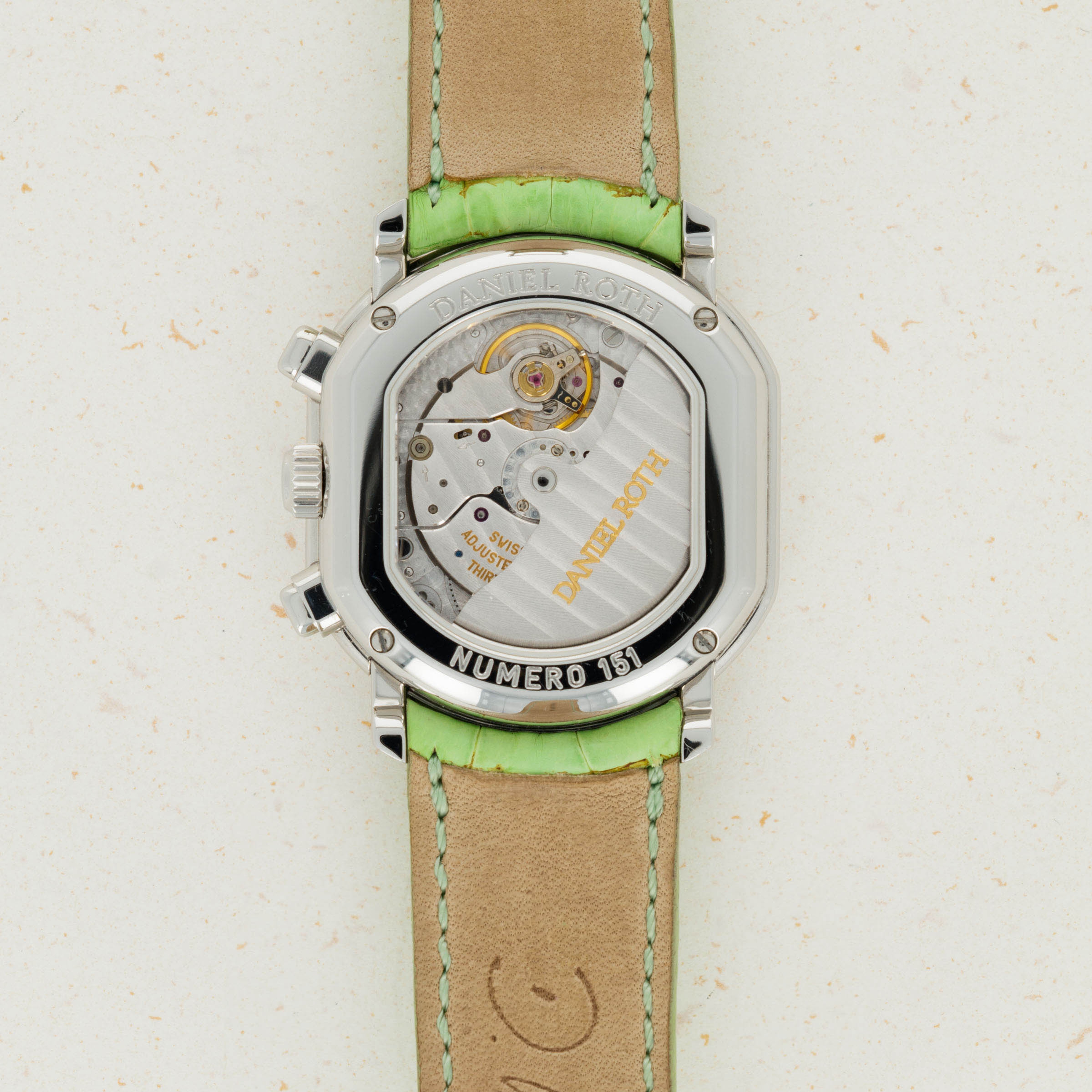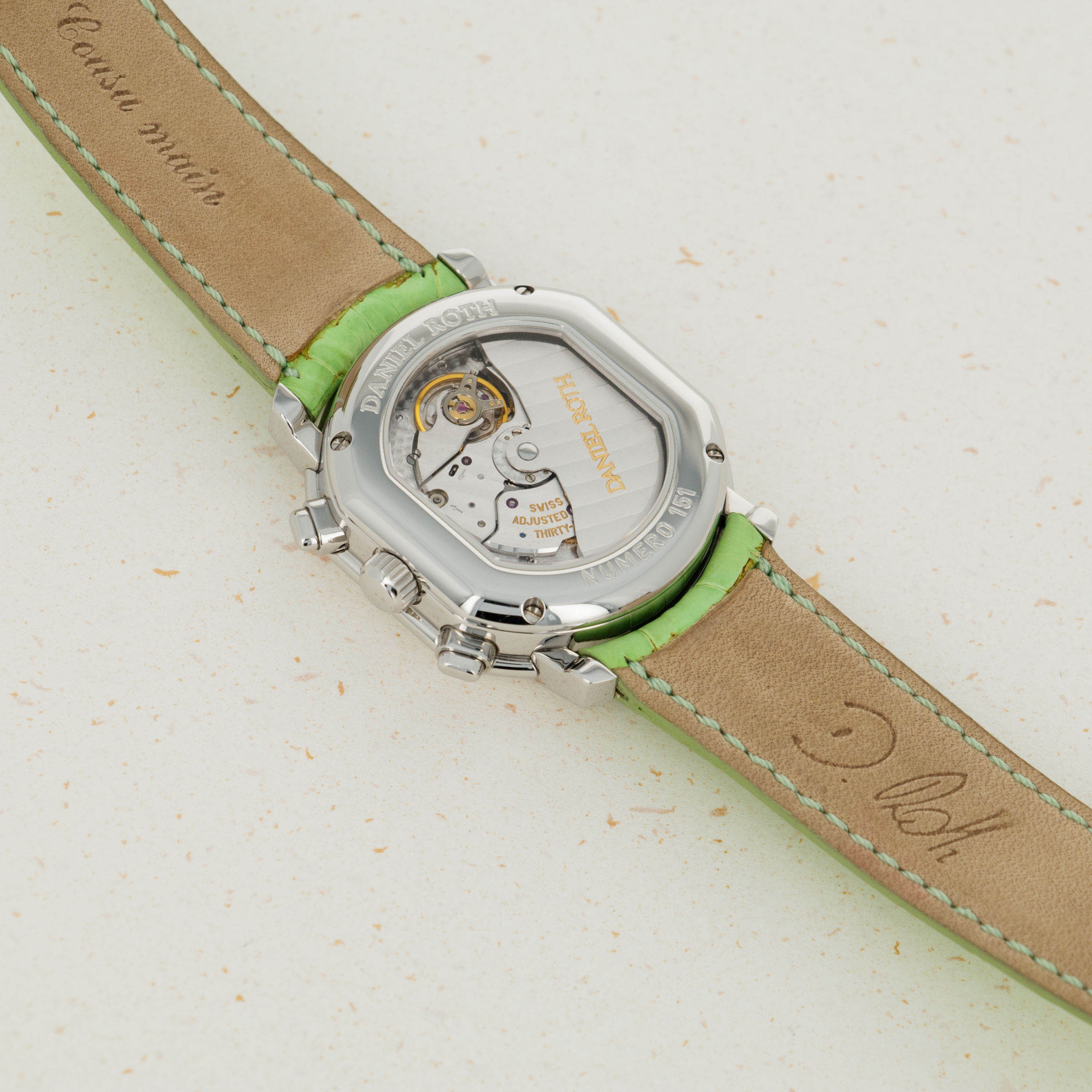 Founded in 1989, Daniel Roth is long-established as one of the early entrants in the independent watchmaking space that has since ballooned with brands like Urkwerk, MB&F, and Richard Mille launching from the foundations that Daniel Roth laid. With their distinctive styling, fresh take on design, and technical prowess, the watchmaker quickly rose to fame. An emblematic example of their watchmaking style, this stainless steel Chronograph model features a stunning silver dial with vertical guilloche and concentric satin-finished chronograph counters and chapter rings. Pairing distinctive blued steel hands with heritage-inspired black Roman numerals, this Chronograph’s styling is unique in that it blends design cues rooted in watchmaking tradition with Daniel Roth's own innovative take on the industry’s processes, namely through their signature ellipsocurvex case - much like Richard Mille and Franck Muller's use of the tonneau case.