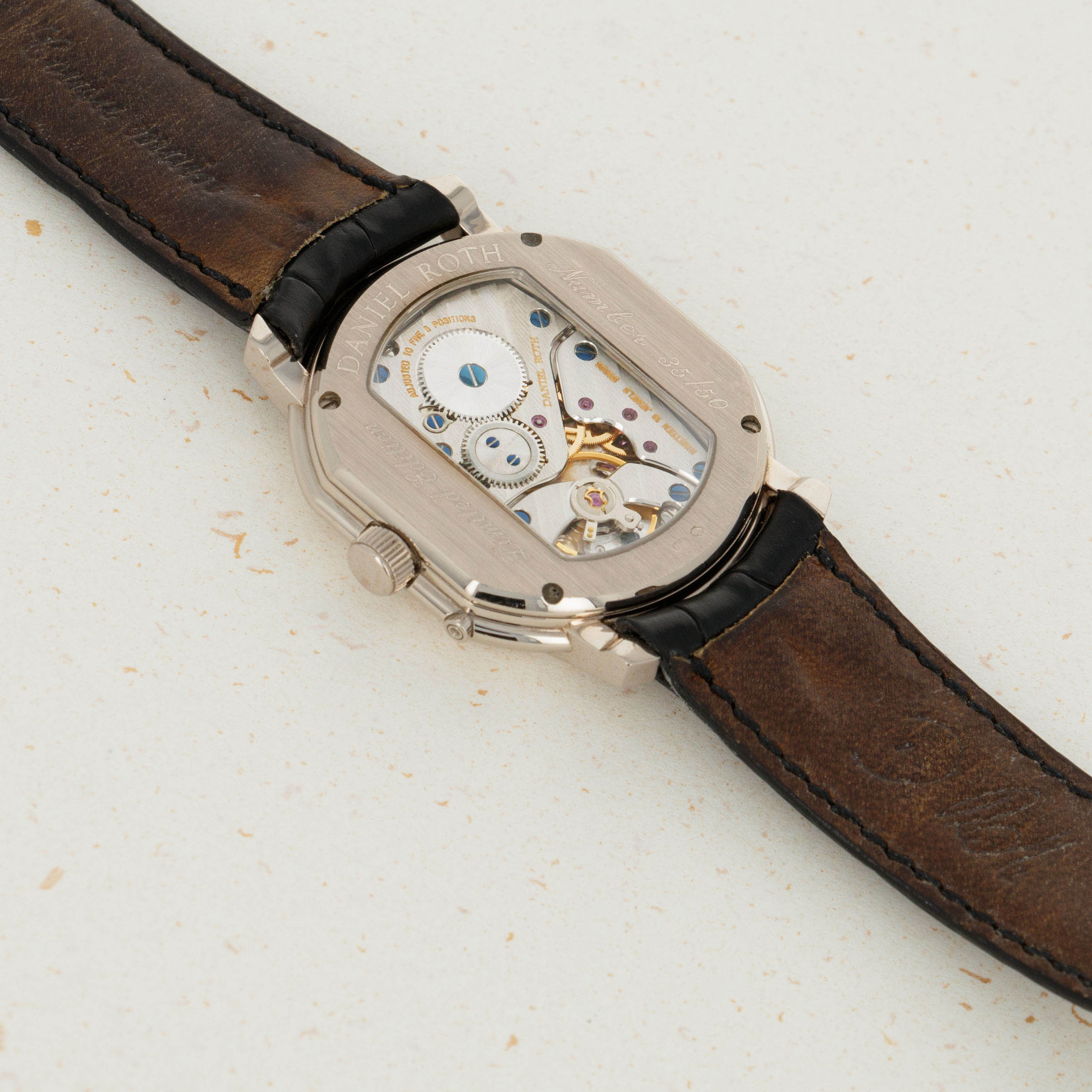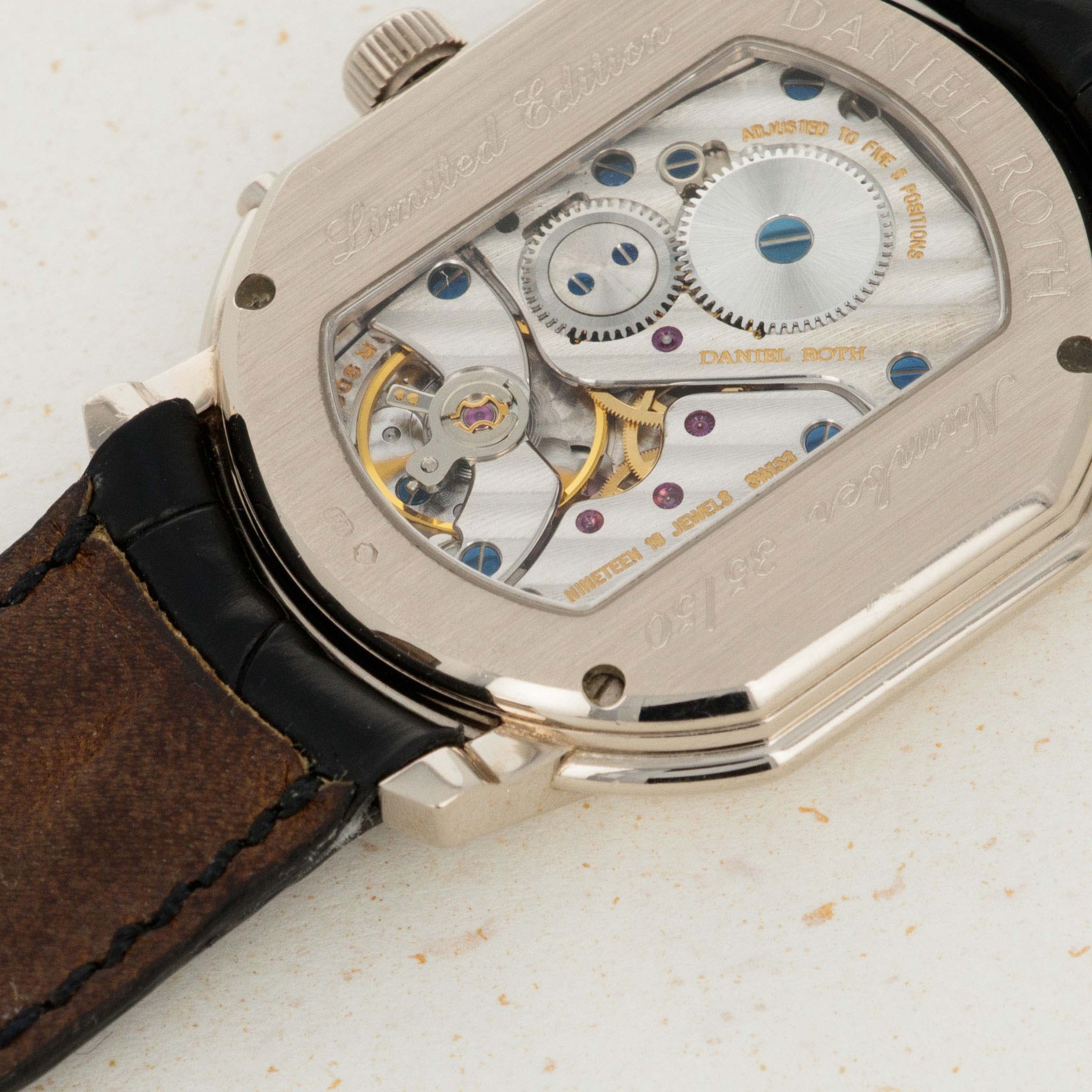 Featuring Daniel Roth's signature ellipsocurvex-shaped case, this beautiful timepiece is unapologetic in its distinctive and iconic Daniel Roth aesthetic and uncompromising wrist presence.