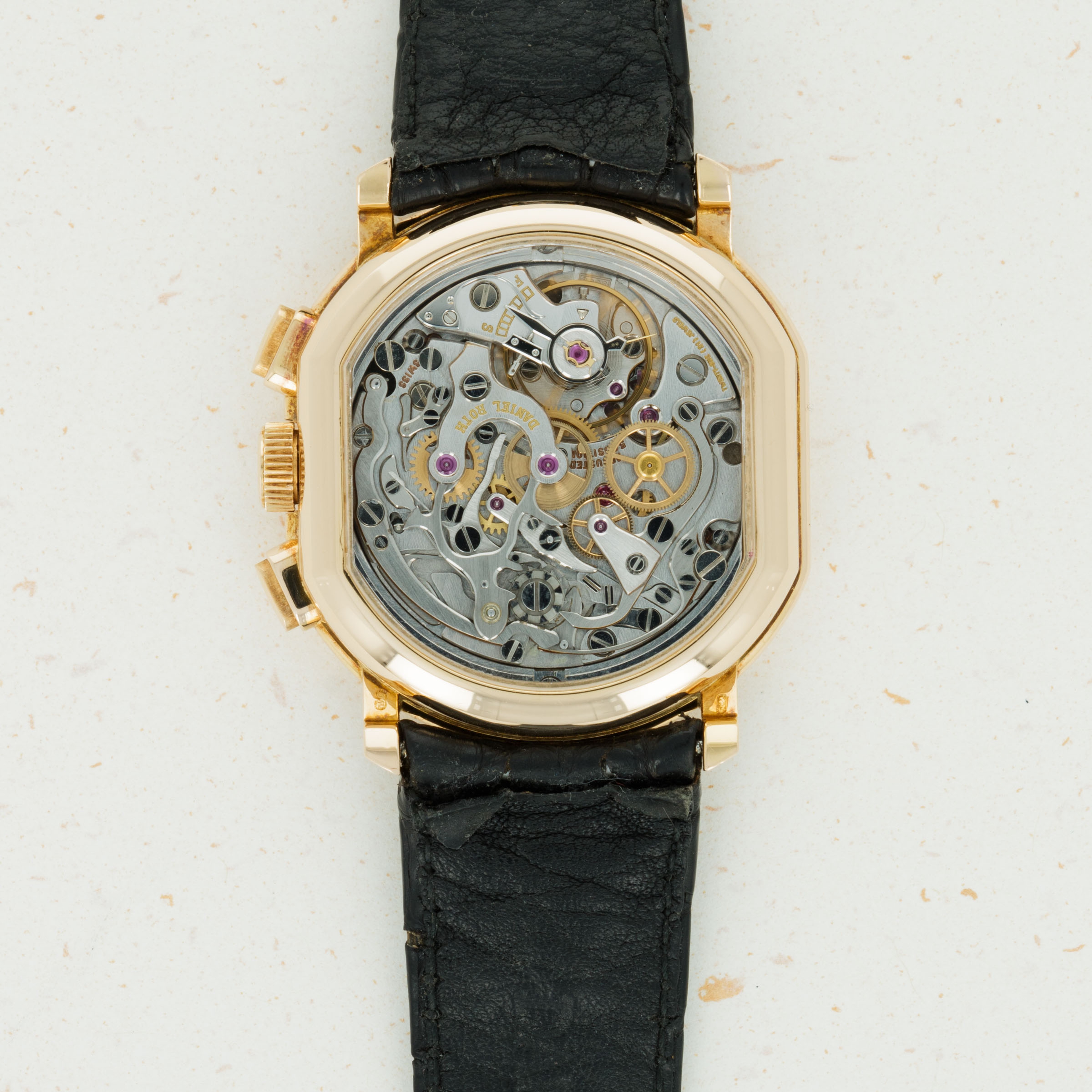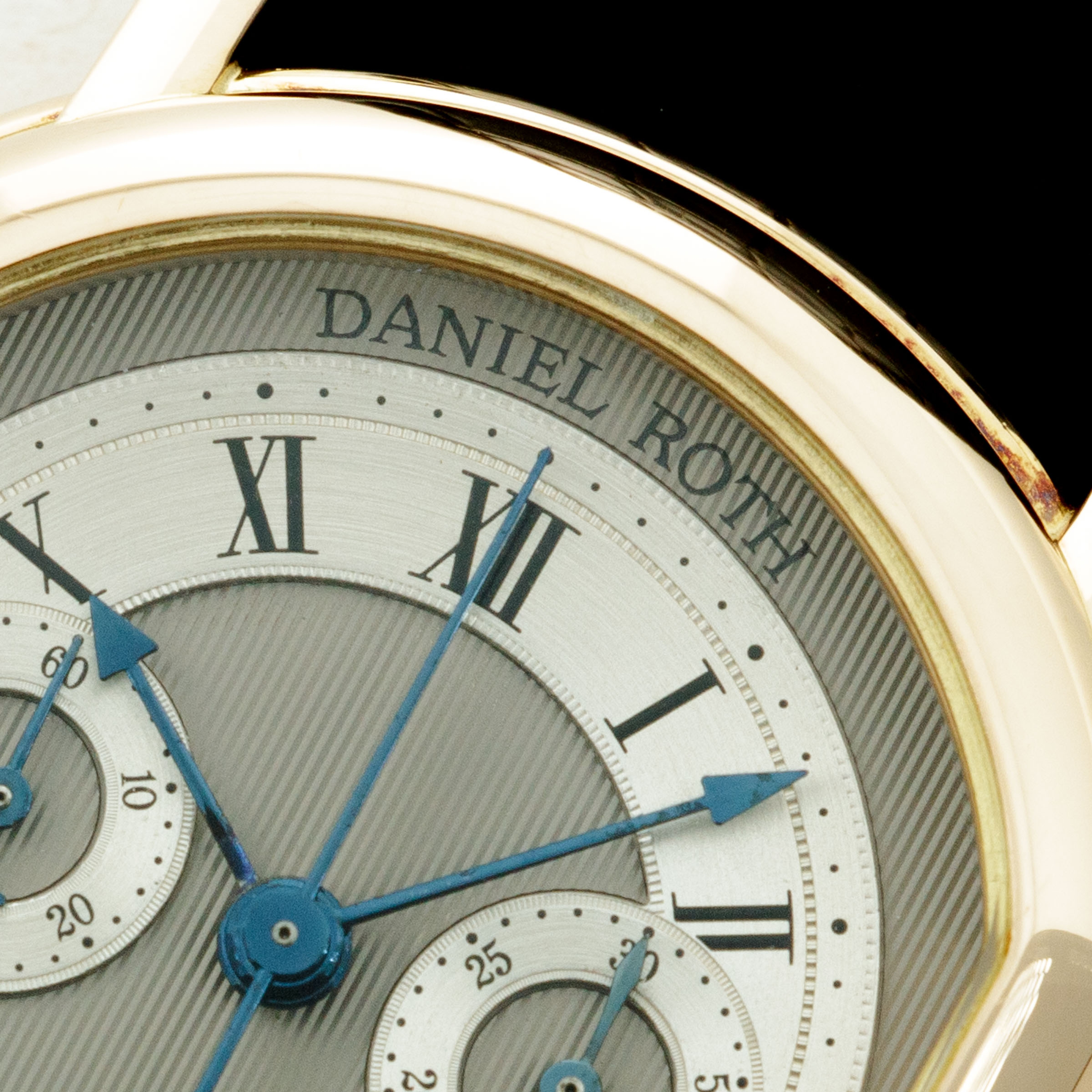 After working for several years at Audemars Piguet and Breguet, Daniel Roth moved to initiate his own brand in 1998. Some of the earliest timepieces exemplify what we find to be most interesting about his watches- unique, double ellipse shaped cases, and pinstriped guilloche dials. This particular example features the Lemania 2320 movement, which is similar to what is found in the Patek Philippe 5070, as well as some Roger Dubuis Hommage chronographs.