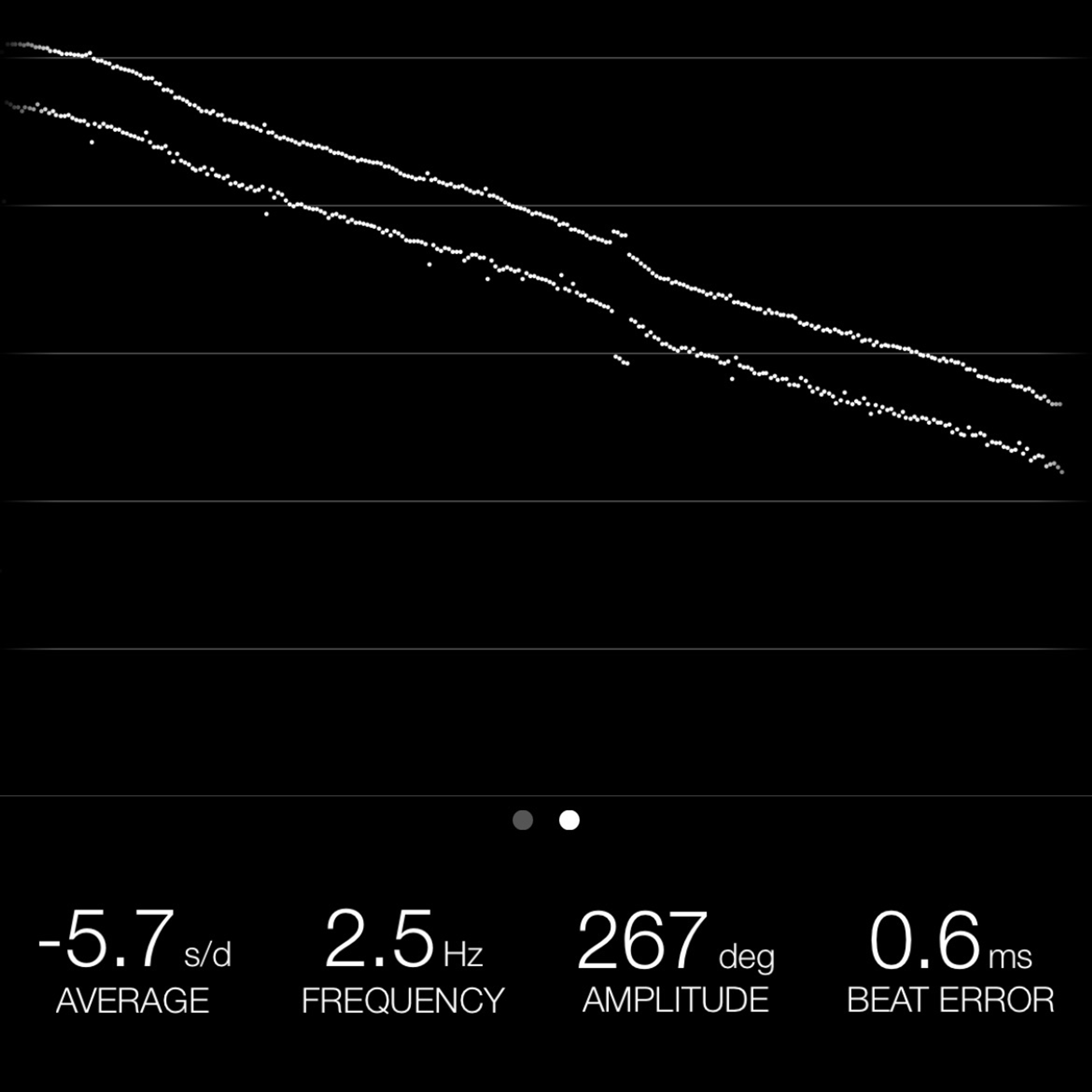 This reading was taken (crown down) with a ONEOF Accuracy Boutique Edition timing machine at time of cataloging. It is provided as a courtesy only, and shall not be construed as a warranty or guarantee of any kind. Please refer to our terms and conditions of sale for more information.