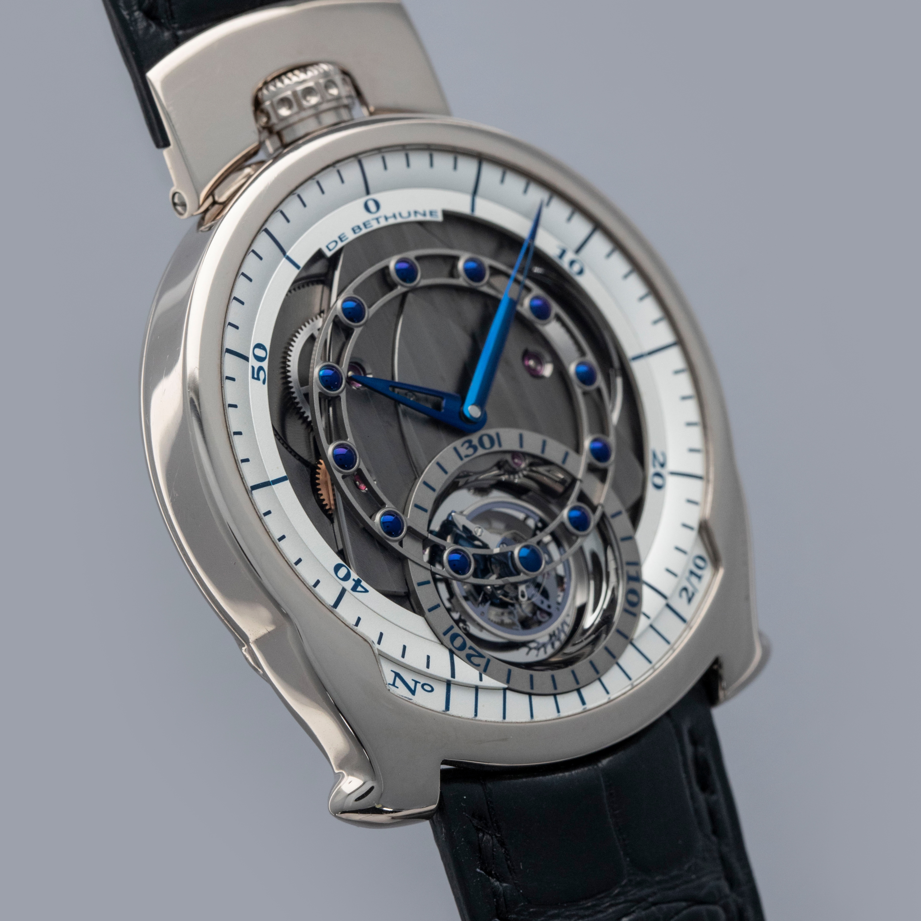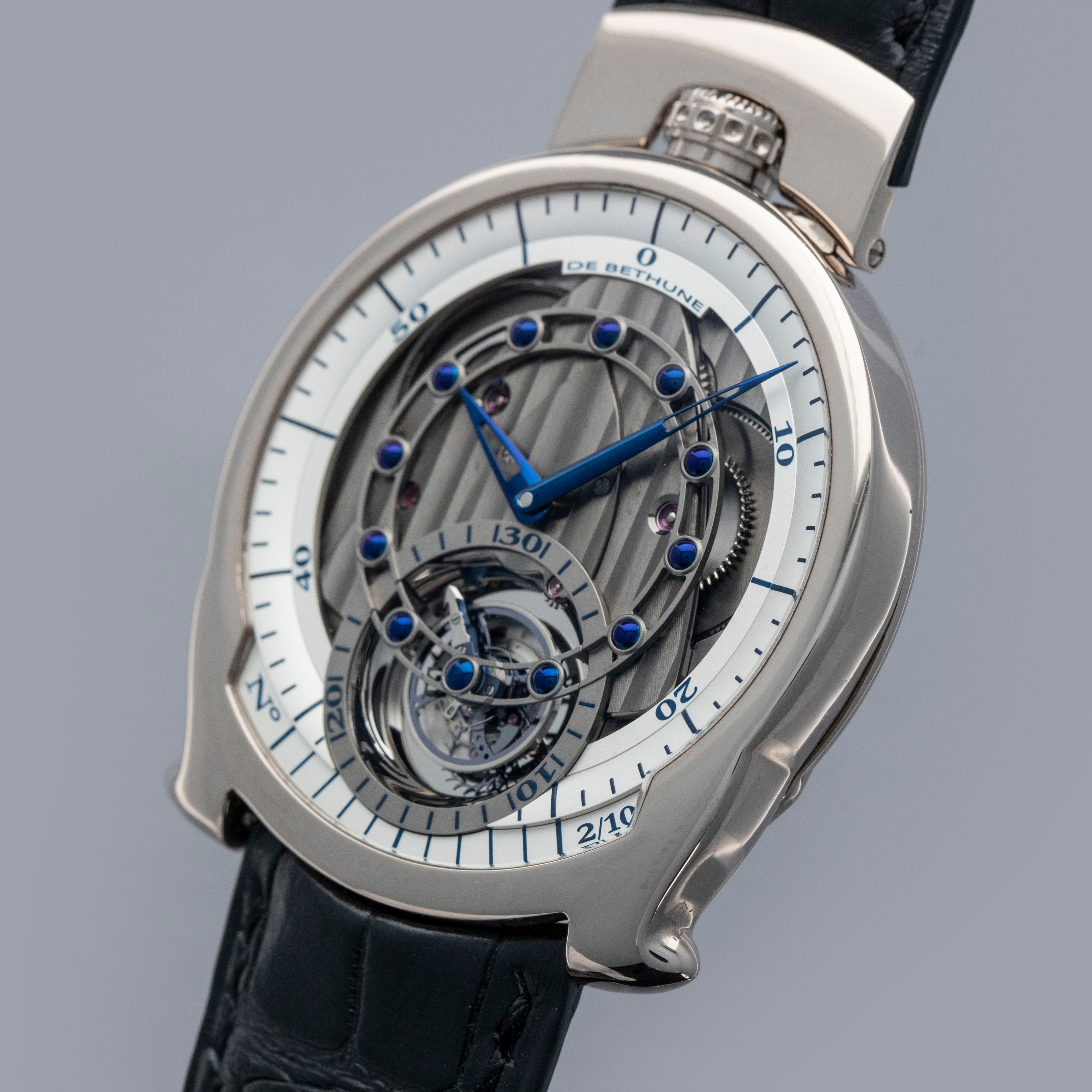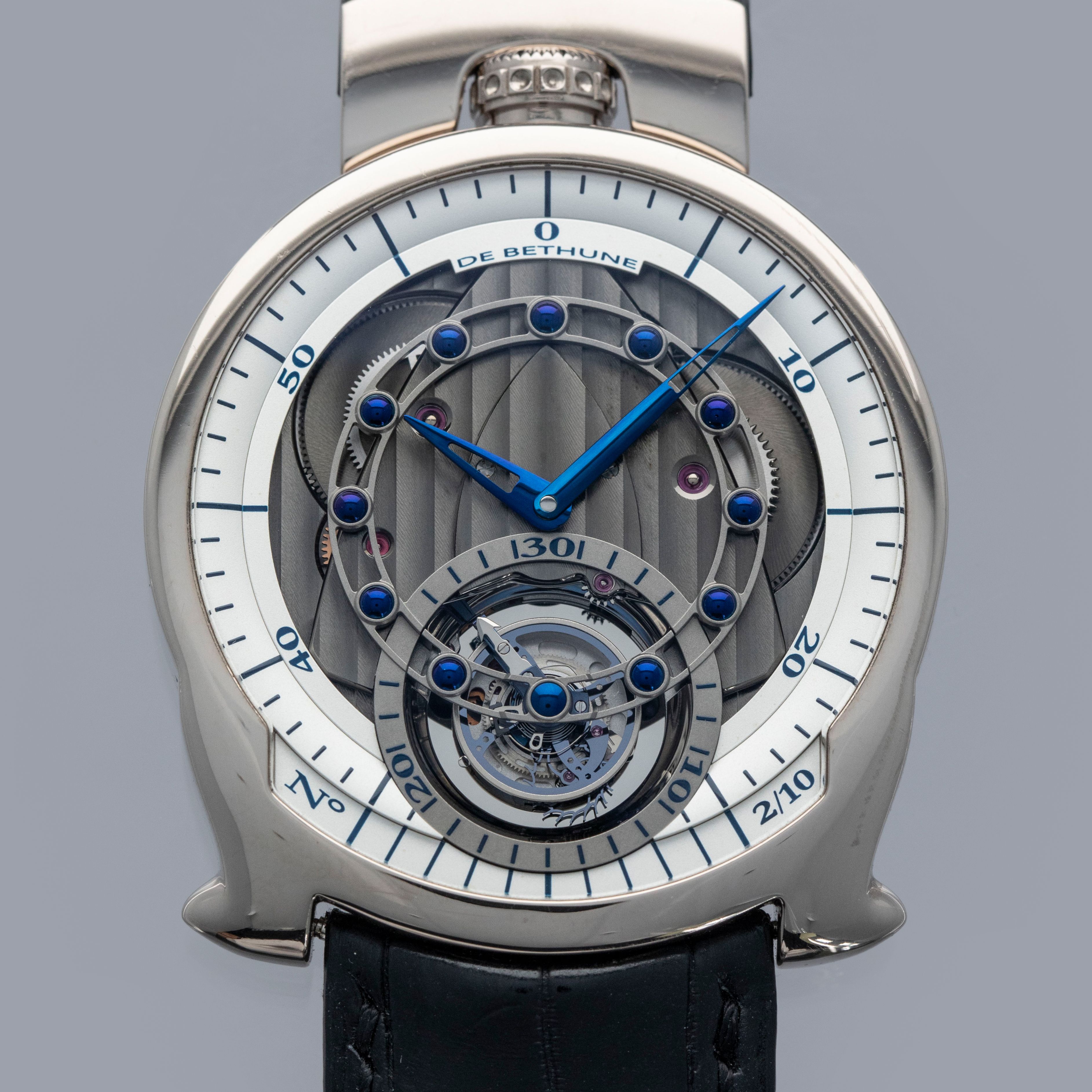 Limited to only 10 pieces and combining a unique design with a finely executed and equally unique construction, this timepiece is a wonderful exhibition of De Bethune's prowess as a watchmaker.