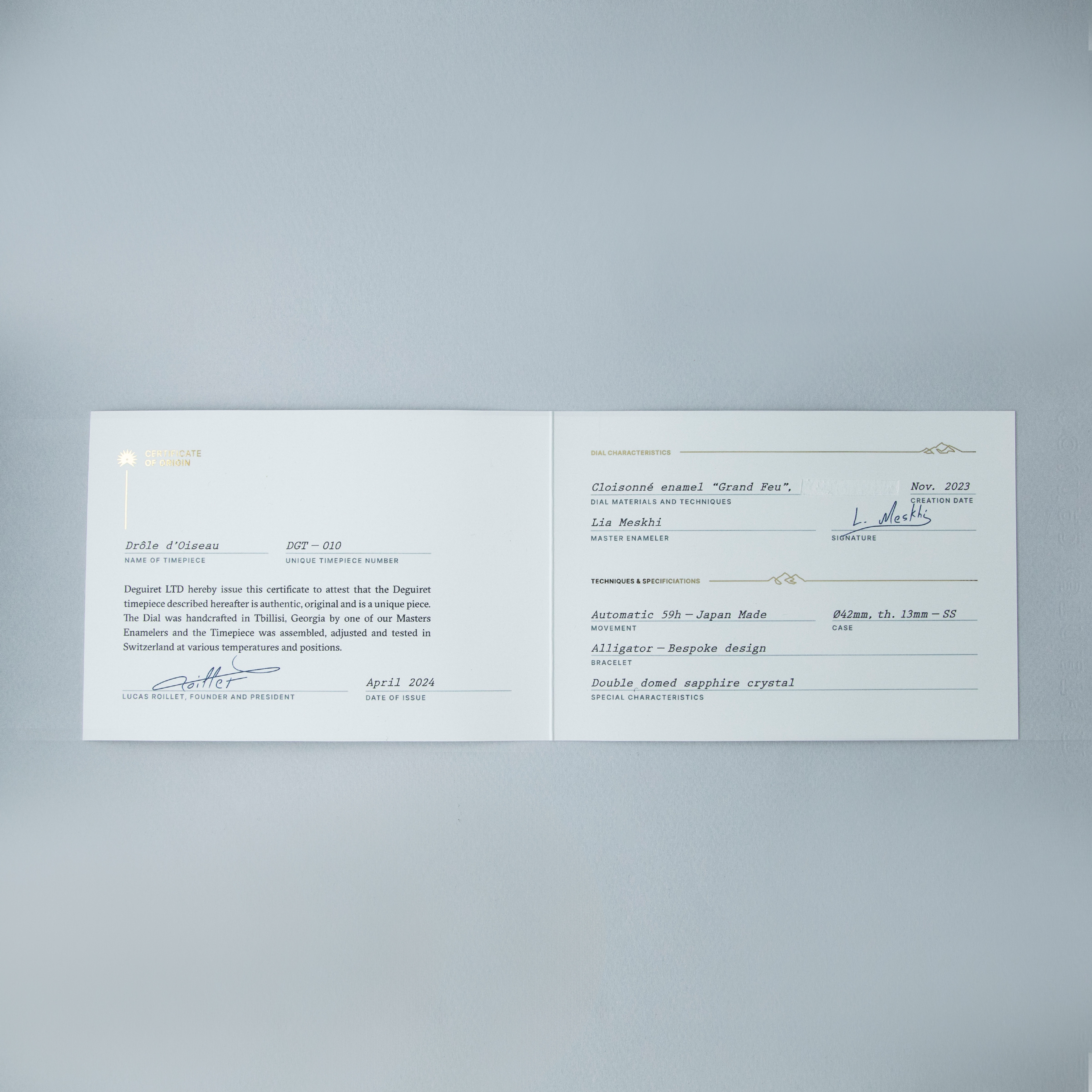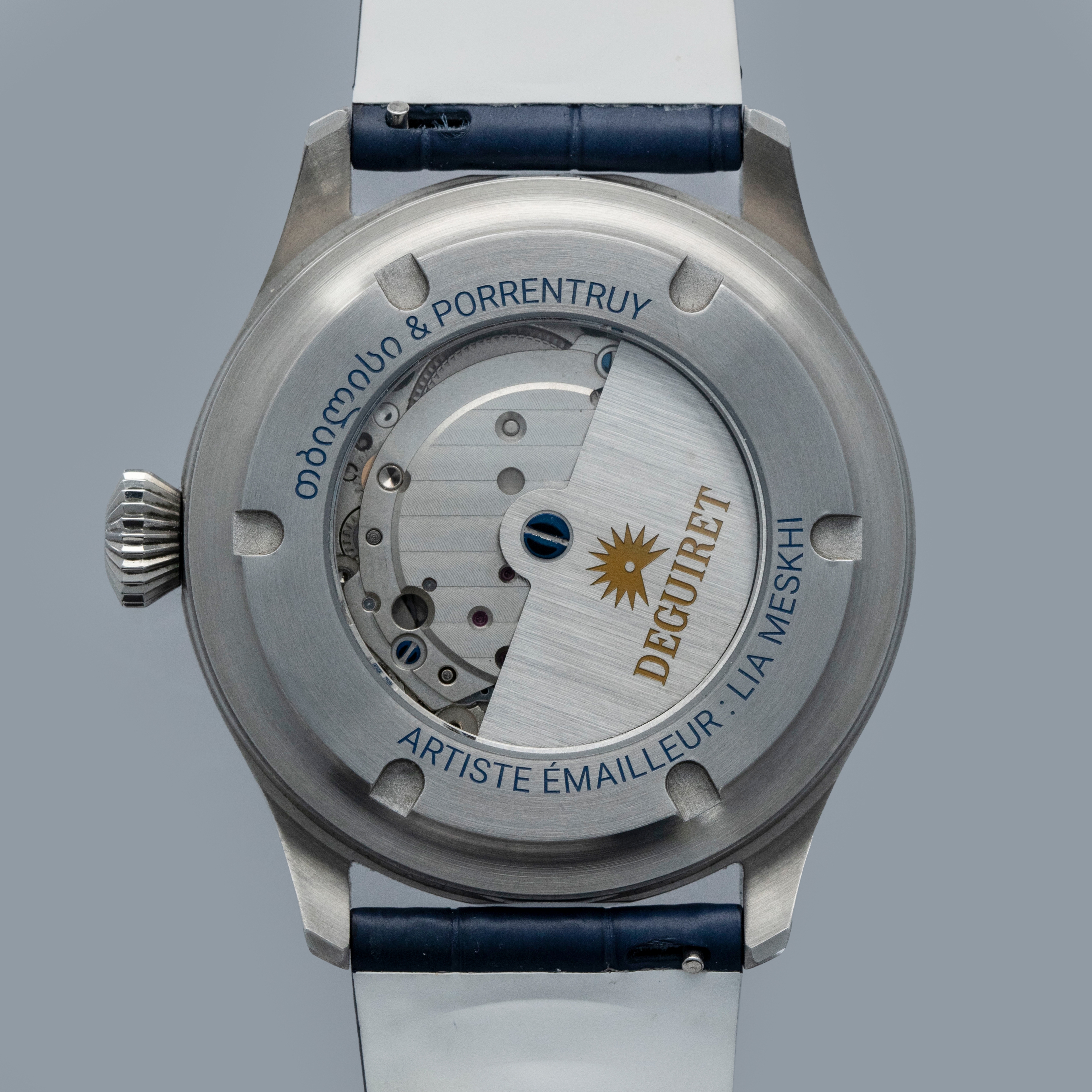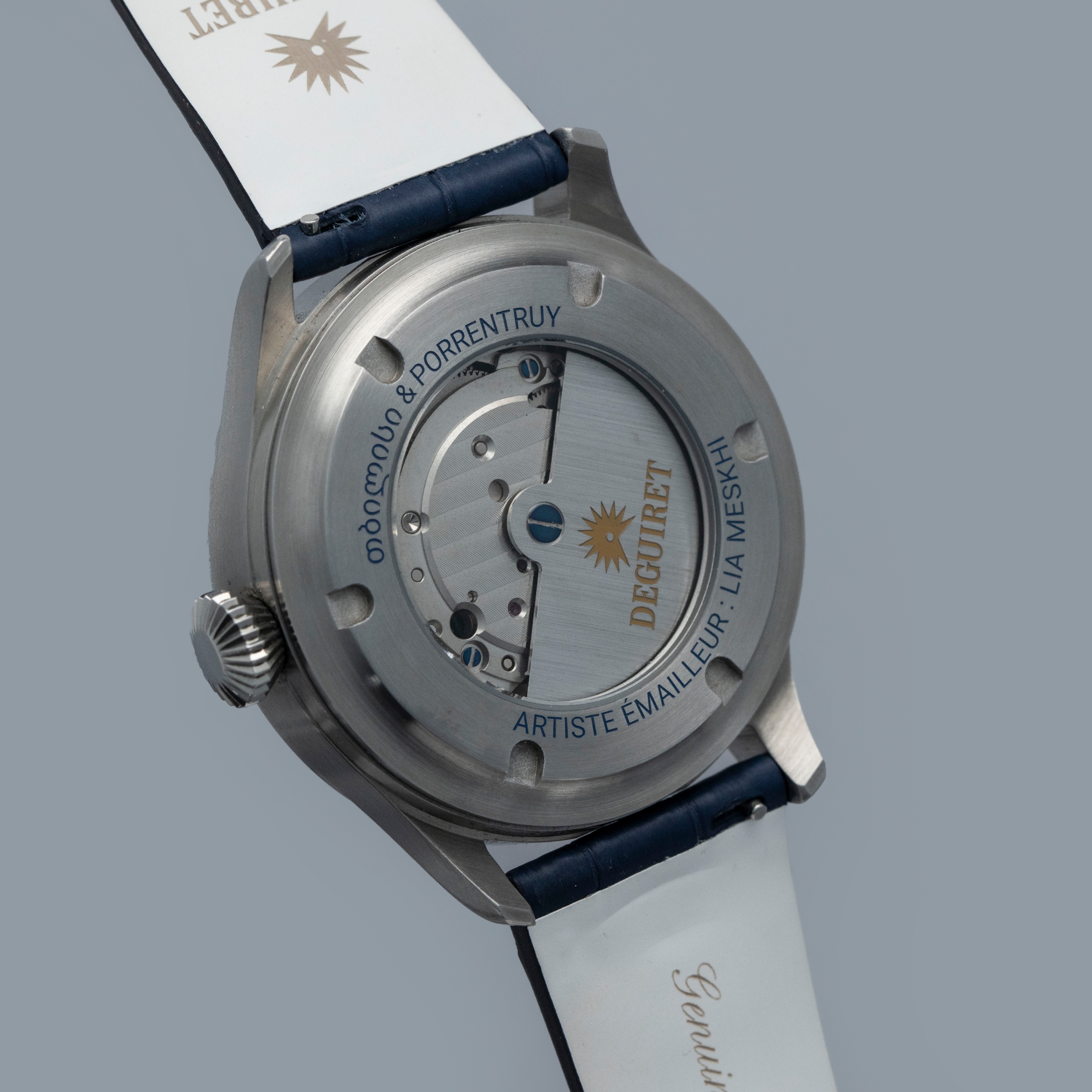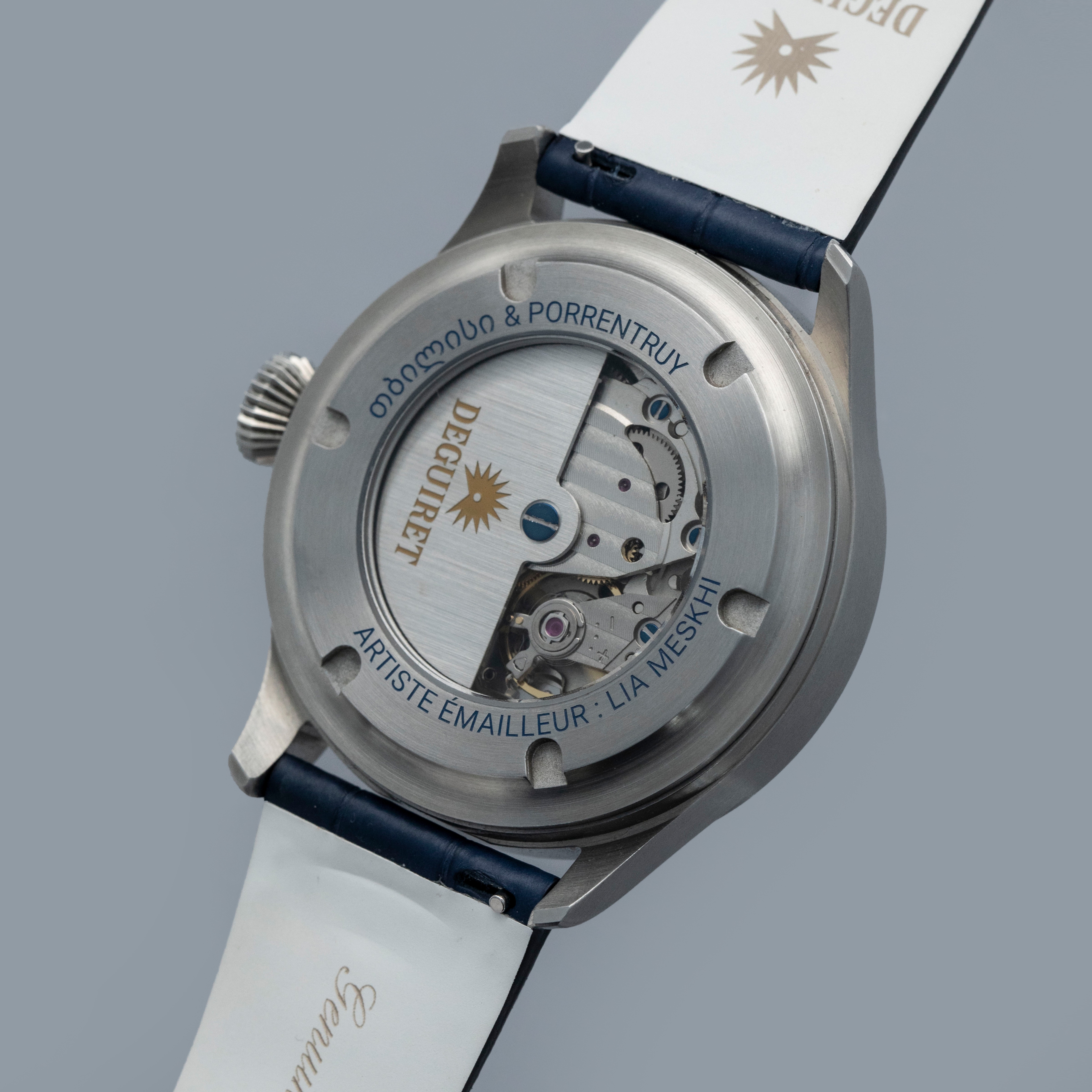 Founded in 2021 by Frenchman Lucas Roillet after he met Lia Meskhi and Nikoloz Panchulidze in Tbilisi, Georgia after he was instantly drawn to the skills of these two enamelers who mastered the art of cloisonné enamel, also known as minankari, which originated in Georgia in the 7th century, Deguiret is a new independent watchmaker that gives enamellers the space to create pieces of genuine artistry that is seldom seen in watches anywhere close to Deguiret’s retail price. Offered here we have the Drole d’Oiseau ref. DGT-010, made by Lia Meskhi, which is an incredibly bright and vivid tapestry of colors and art inspired by the film "The Eccentrics (Sherekilebi)" by Eldar Shengelaia. With a flying contraption set amongst a spectacularly colorful backdrop, this 42mm stainless stel timepiece’s display is wearable art. Made by firing glass enamel powder placed within metal wire borders across dozens of steps, making cloisonne enamel dials is exceptionally difficult at the best of times, let alone to depict an image as complex as this, and therein lies the appeal of Deguiret’s watches. Not only are they democratizing cloisonne enamel dials in watchmaking, but they are doing it with a level of detail, complexity, and artistry that is unparalleled.