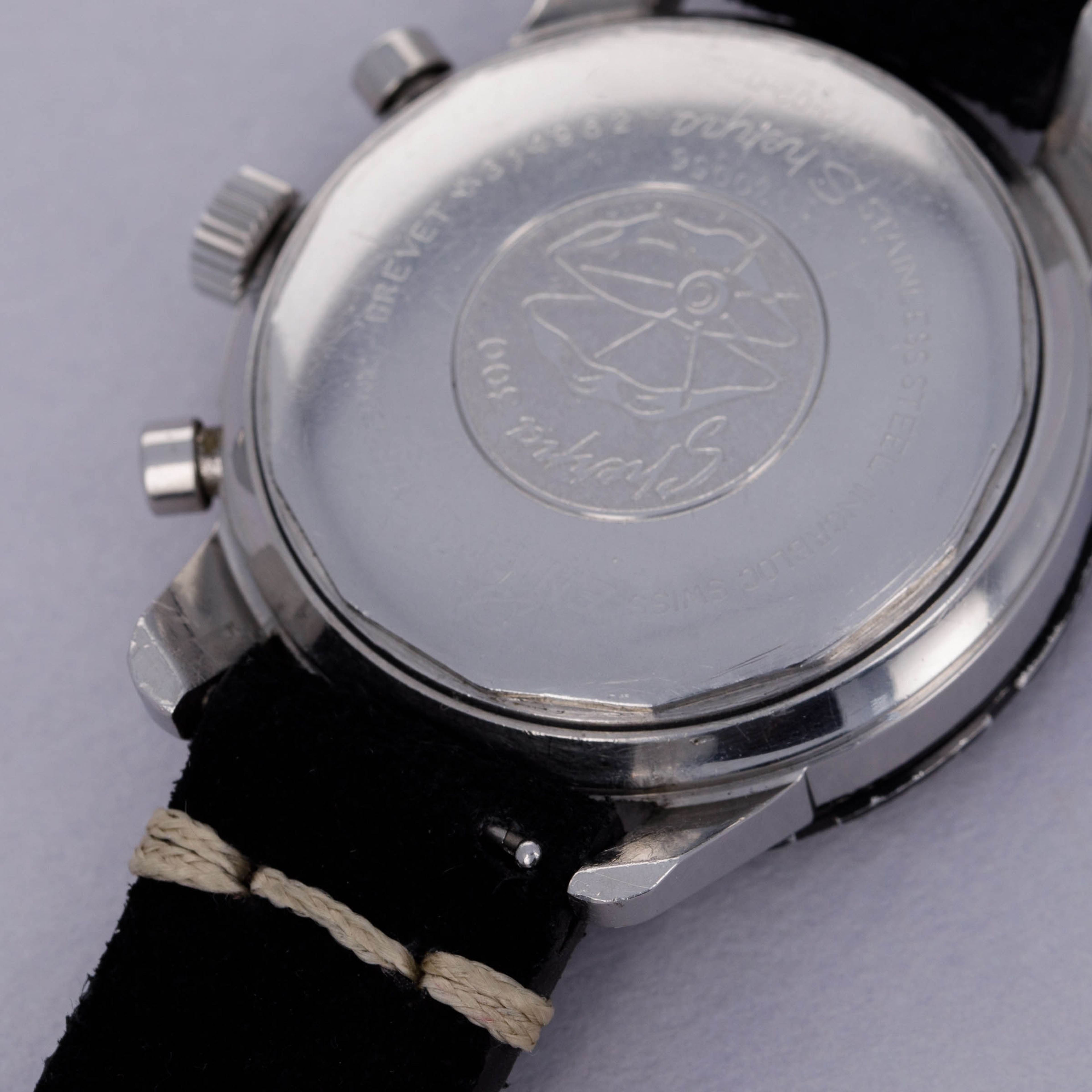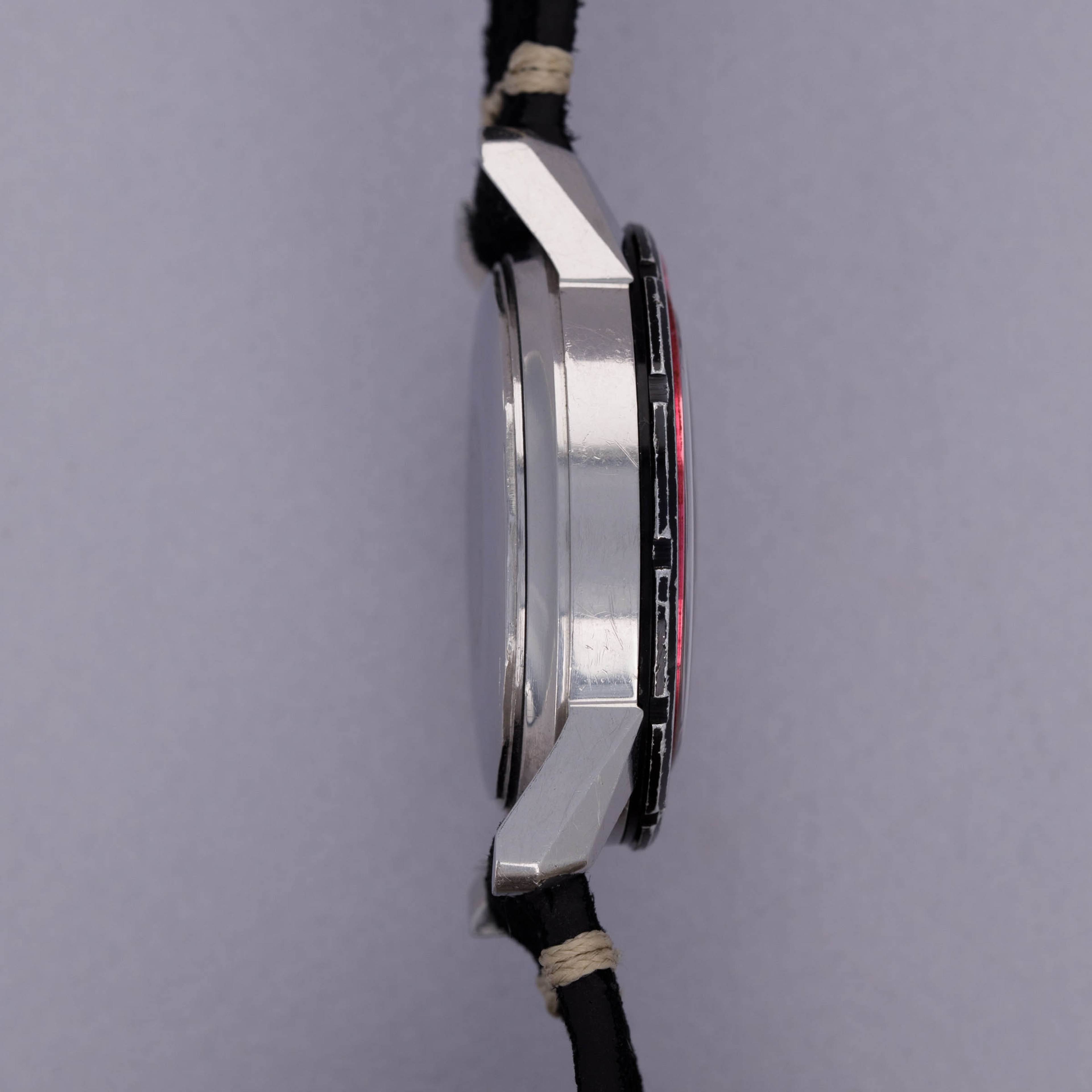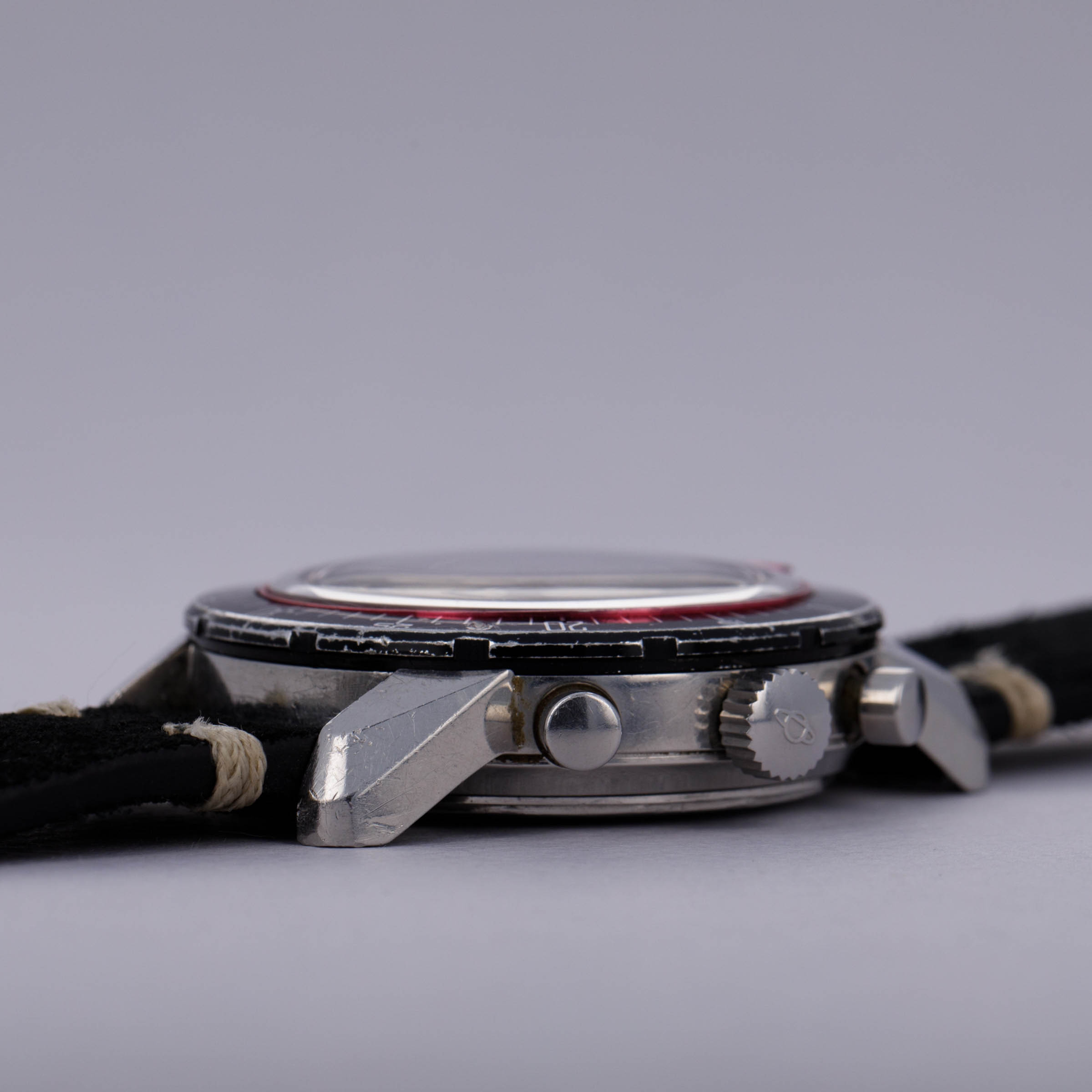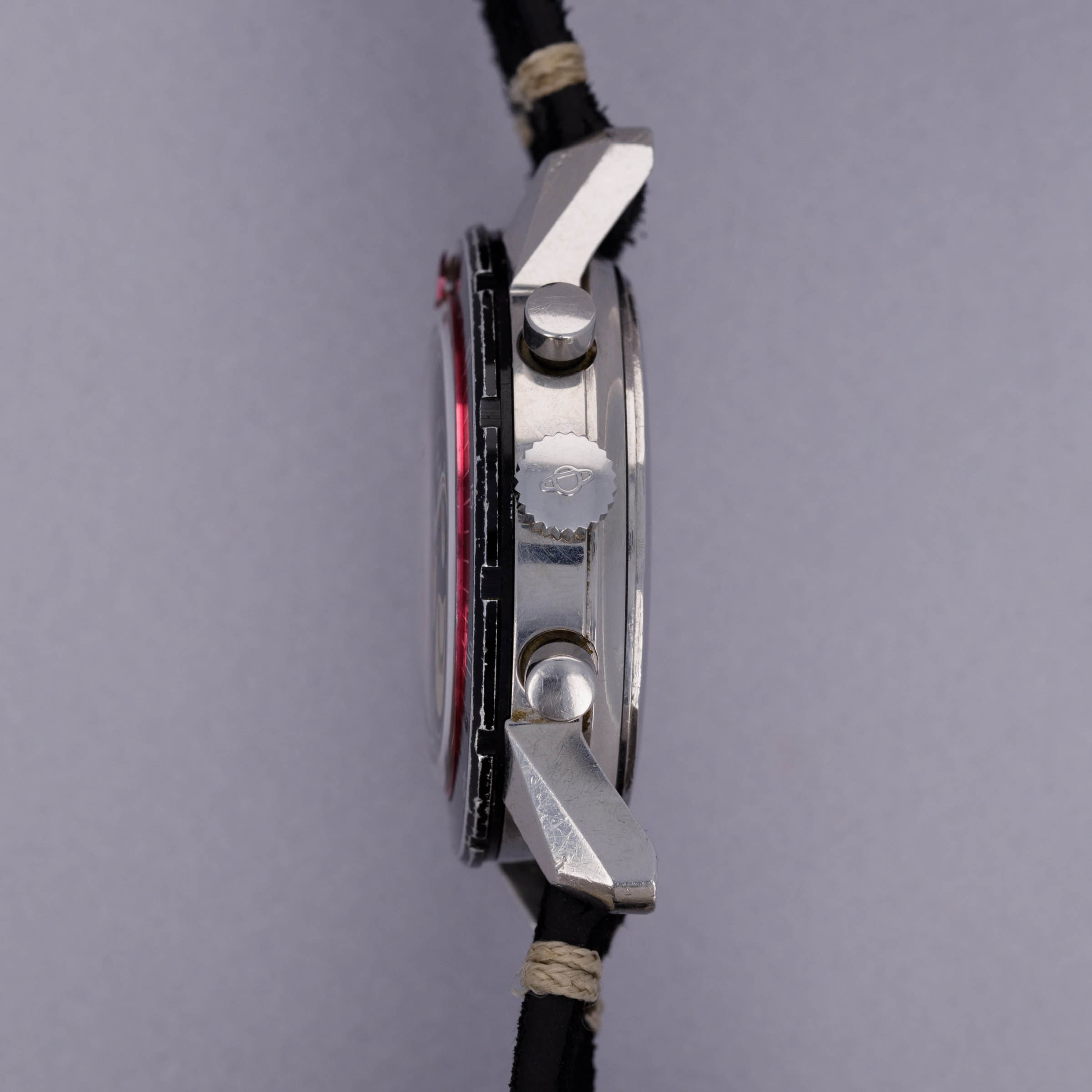 Founded in 1913 by the Racine family, Enicar ('Racine' backwards) grew in popularity thanks to their marketing tactic of supplying mountaineers and other adventurers with their watches in the 1950s. One particularly iconic event in Enicar's growth was when a team of Swiss climbers wore Enicar watches to the top of Lhoste and Mount Everest in 1956. As a result, Enicar registered the sub-brand "Sherpa" and began releasing its first Sherpa watches later in the same year to capitalise on this success. Following on from that, Enicar began to launch other tool watches like the Aqua Graph in 1963, which is a diving chronograph, combining water resistance with the functionality of a chronograph and a rotating 60-minute bezel. Offered here we have a Mk.3 variant of the Aqua Graph from circa. 1967 with a red outer bezel that allowed the wearer to measure elapsed time while diving, without interfering with the bezel’s functionality. Made of stainless steel and measuring 40.5mm in diameter, the Aqua Graph was a huge watch for when it was released, and as a result, it now provides modern collectors to enjoy the world of vintage without compromising on contemporary sizing.