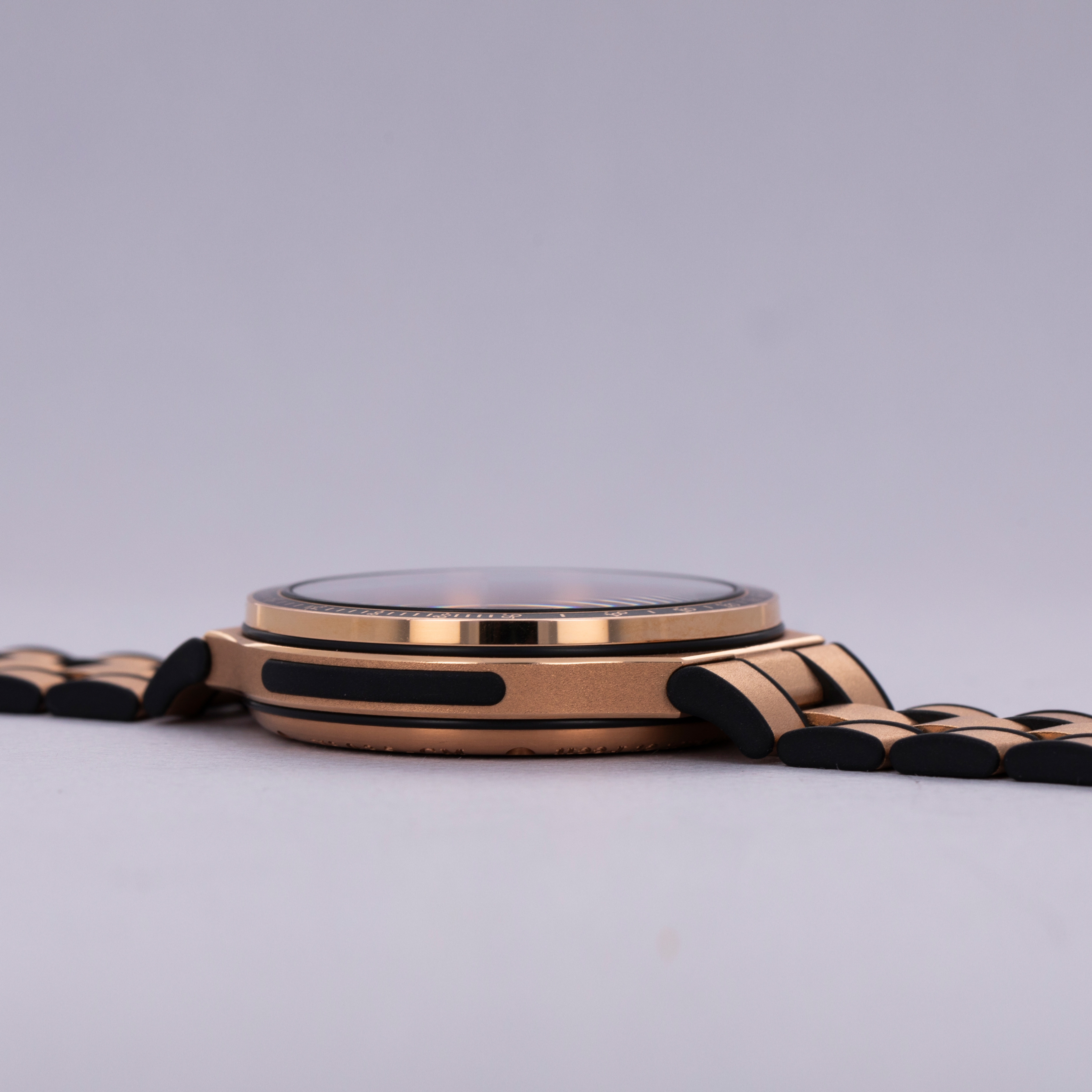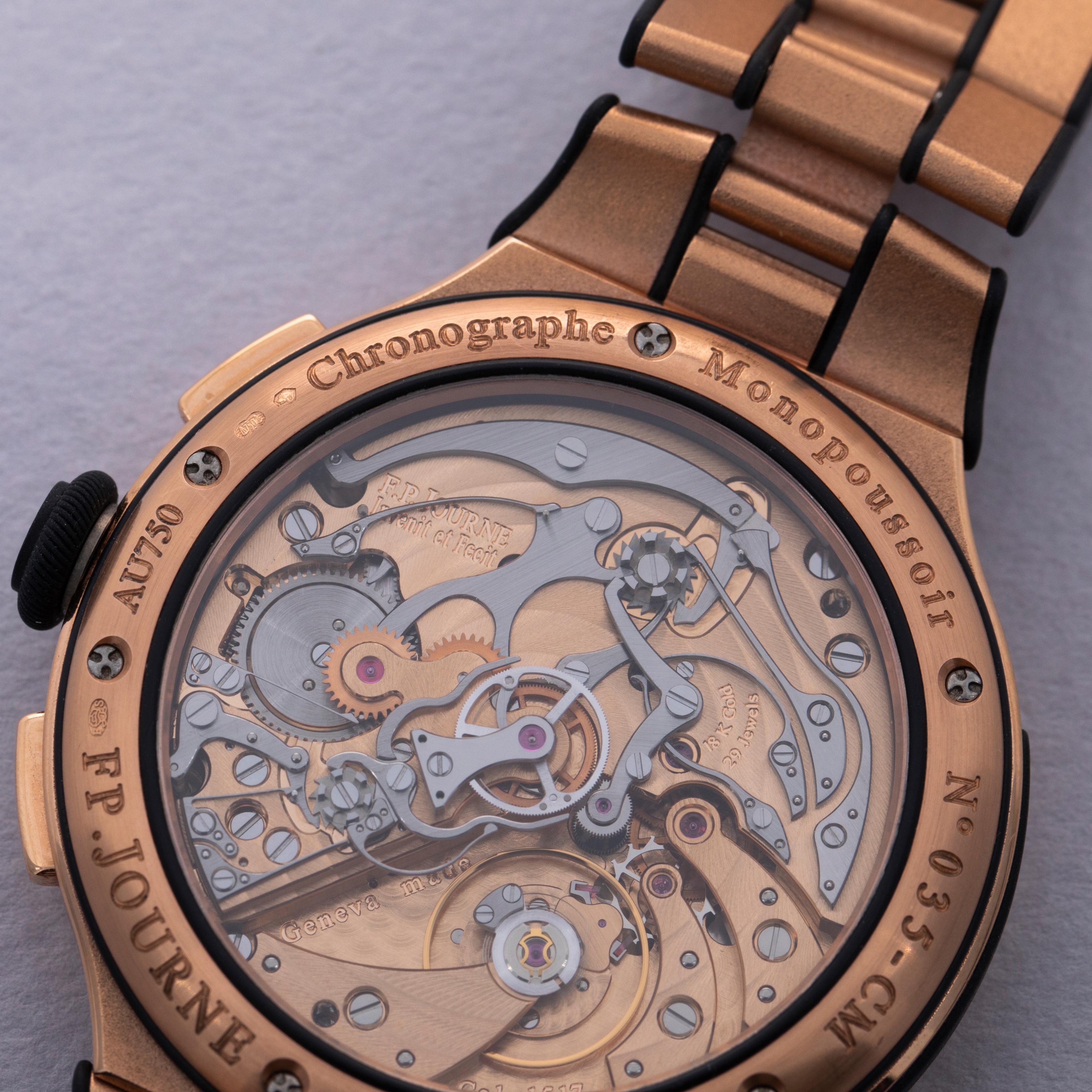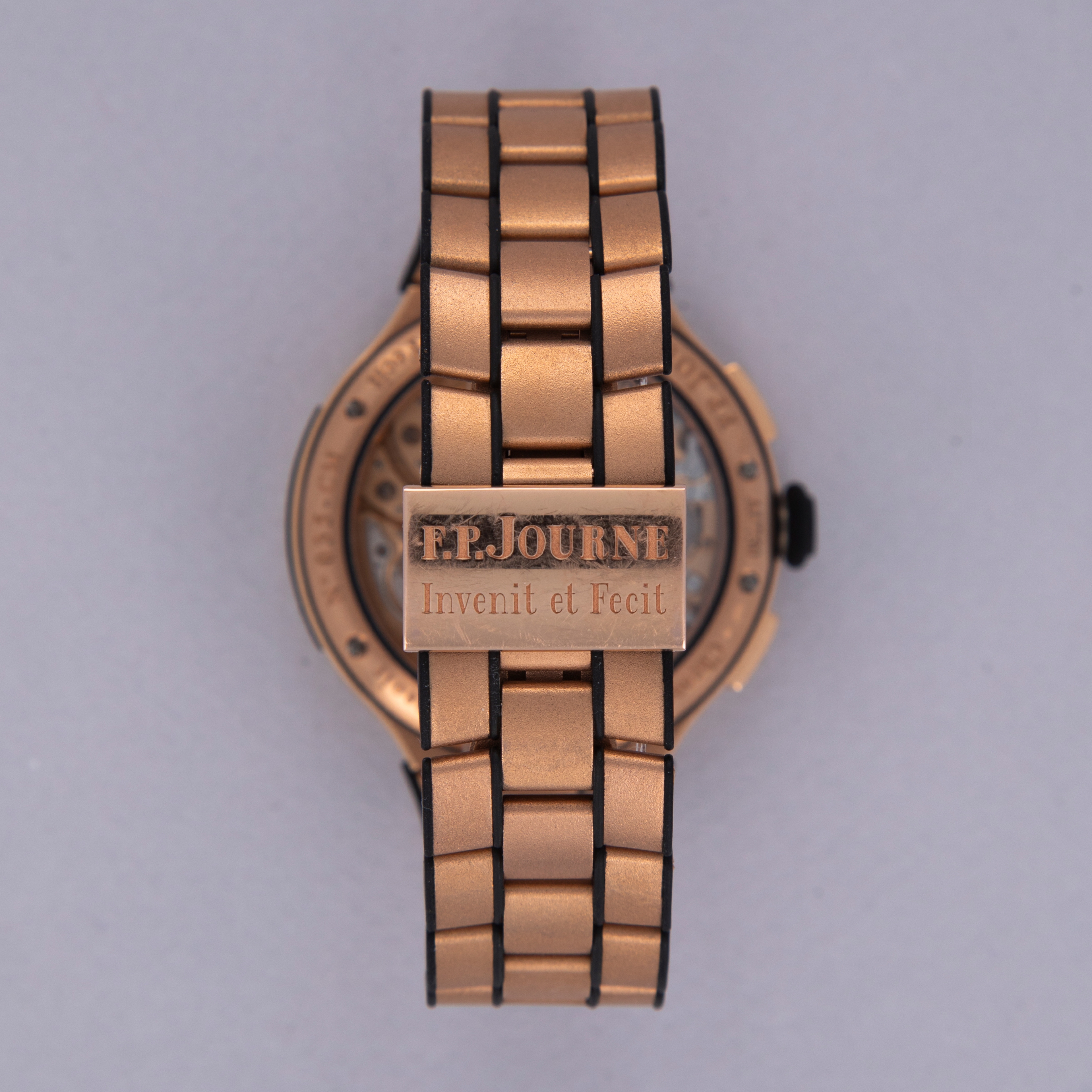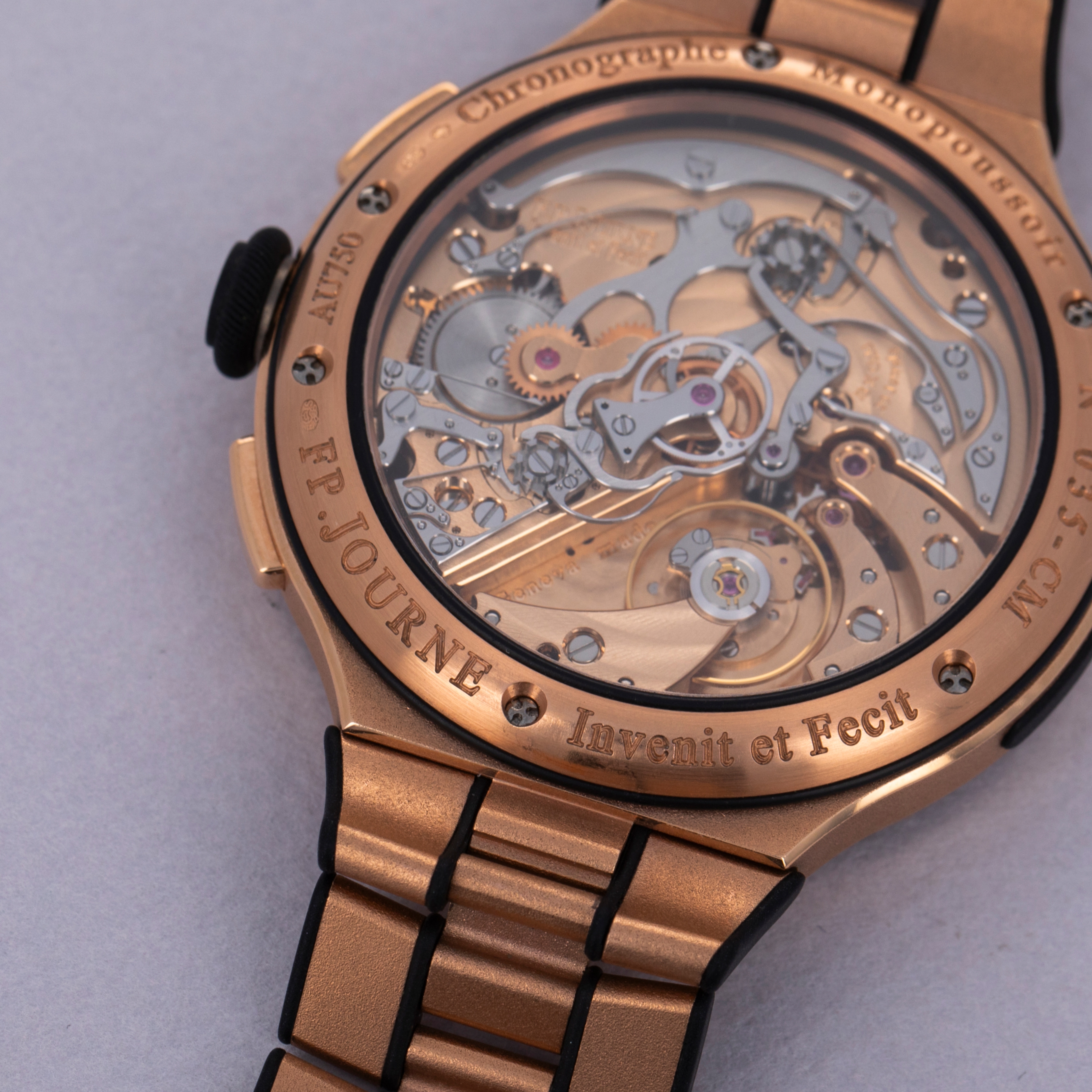 Like many watchmaking brands, FP Journe has become renowned for particular kinds of watches. While this certainly isn't a bad thing, it does lead us to be somewhat surprised when they break the mould, just like when the F.P. Journe launched the Chronographe Monopoussoir Rattrapante. A sports watch in design, and at heart, the Chronographe Monopoussoir Rattrapante is, as its name suggests, a monopusher split-second chronograph fitted on an 18kt rose gose bracelet and case that is powered by FP Journe's technically impressive manually-wound cal. 1518 movement made almost entirely of rose gold. Packing 80 hours of power reserve and a flyback function, the Chronographe Monopoussoir Rattrapante is perhaps one of the finest and best value high horology split-second chronographs on the market. As you would expect from a watchmaker like FP Journe, this timepiece pulls no punches regarding its construction, engineering prowess or unadulterated beauty. Measuring 44mm in diameter, the Chronographe Monopoussoir Rattrapante is certainly on the larger side, and with its precious metal construction and integrated bracelet design it wears with the sort of heft and presence that one would like in a luxury timepiece. Offering F.P. Journe’s aesthetics through its dial and overarching design, the Chronographe Monopoussoir Rattrapante offers F.P. Journe’s iconic design language within a technically astute package that shows F.P. Journe makes a lot more than just dress watches.