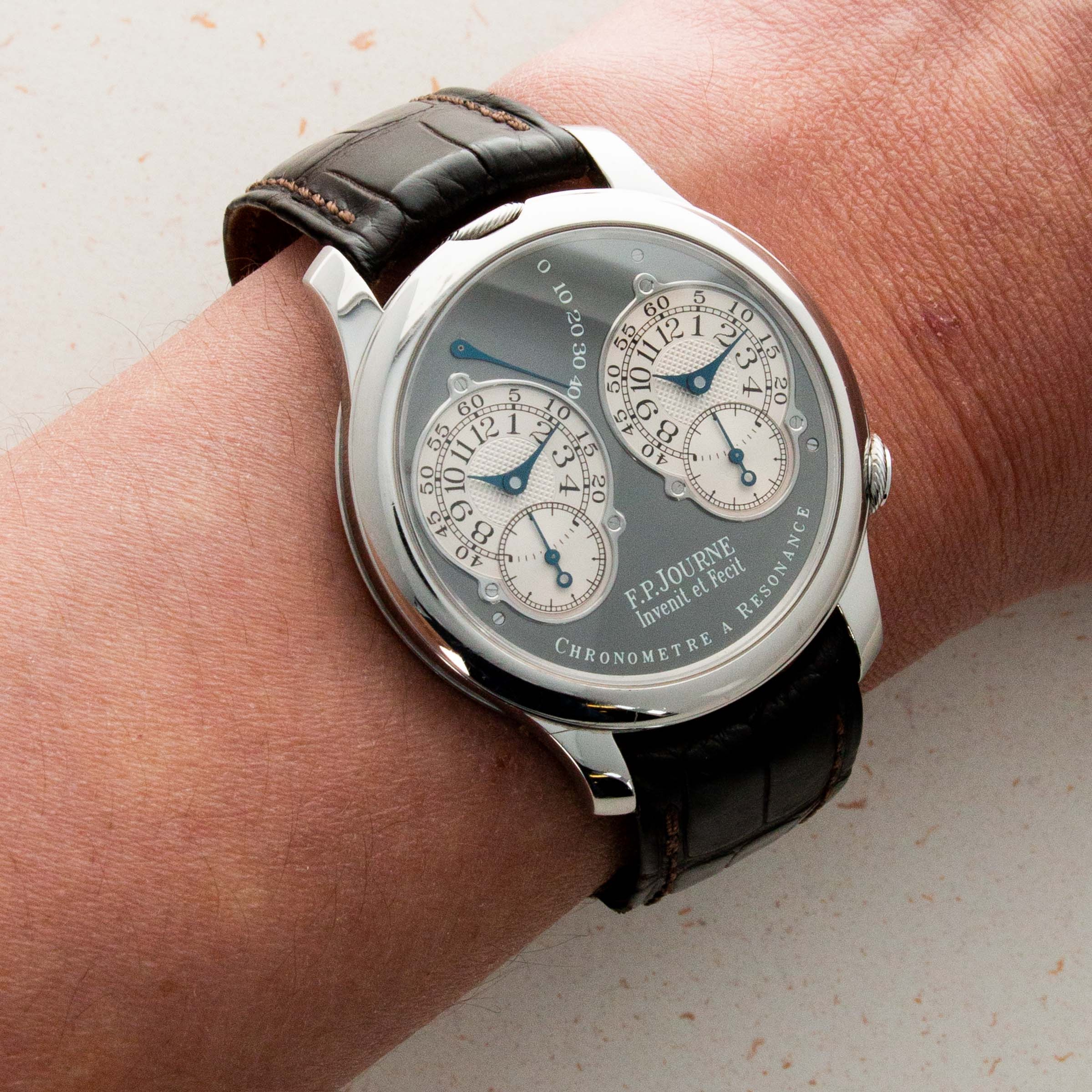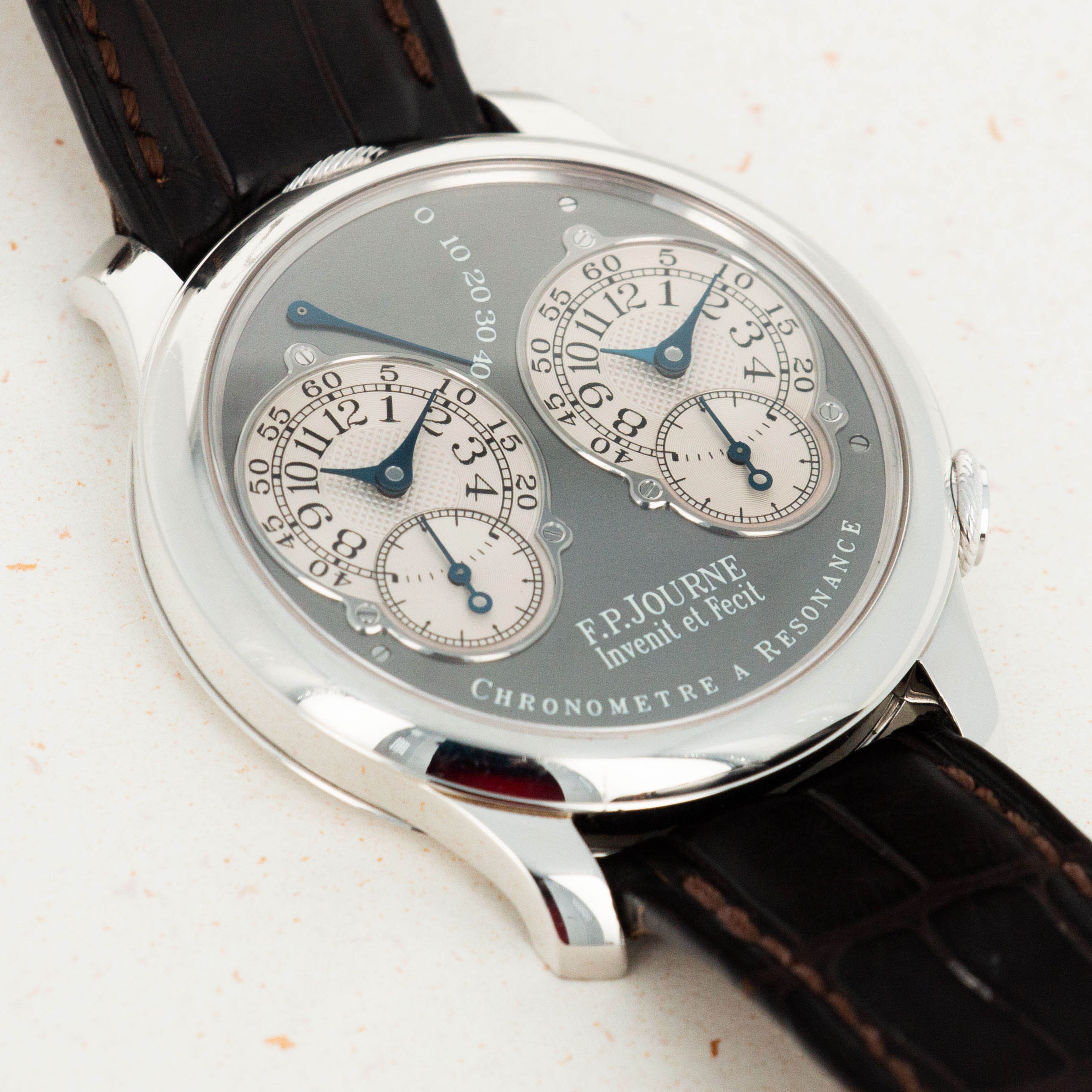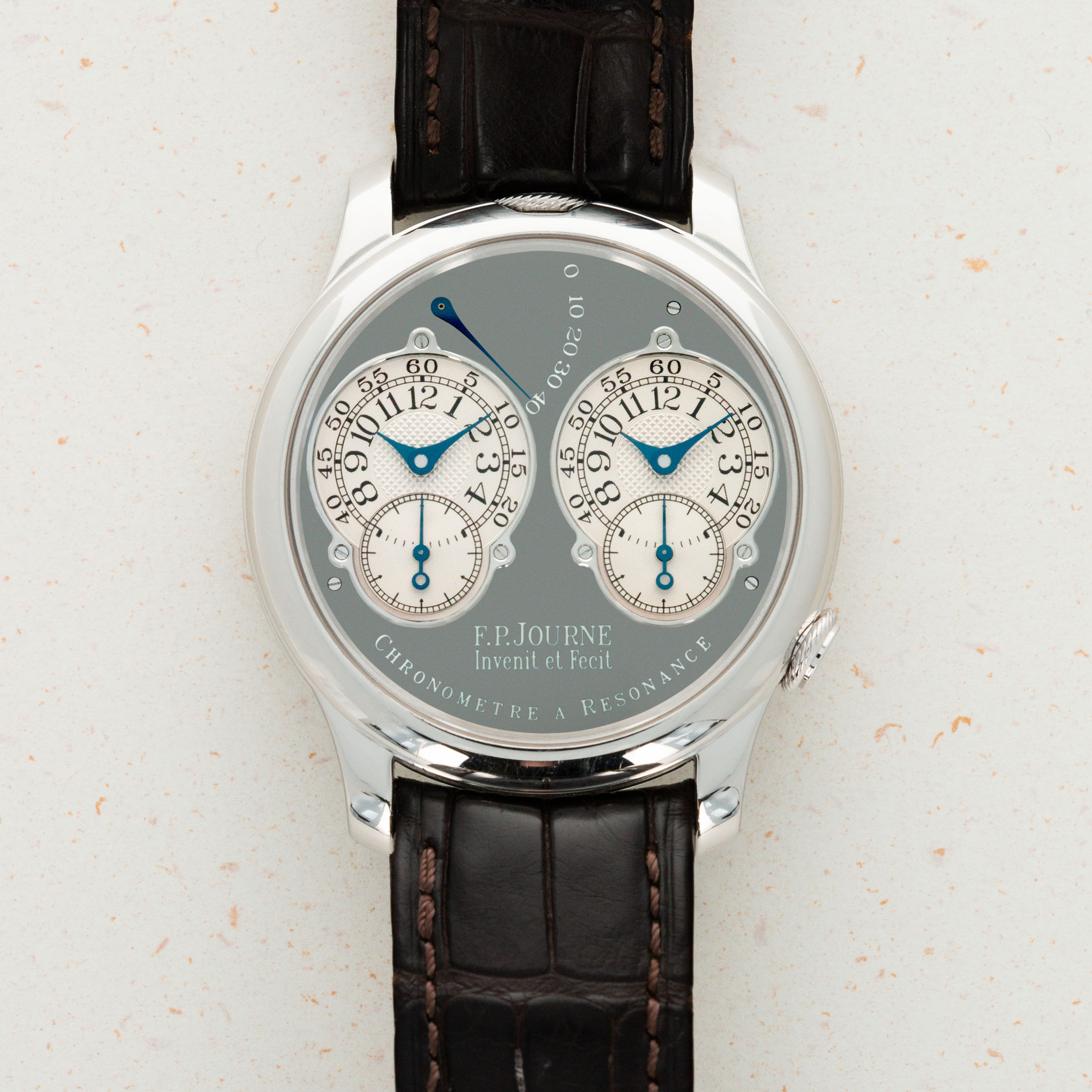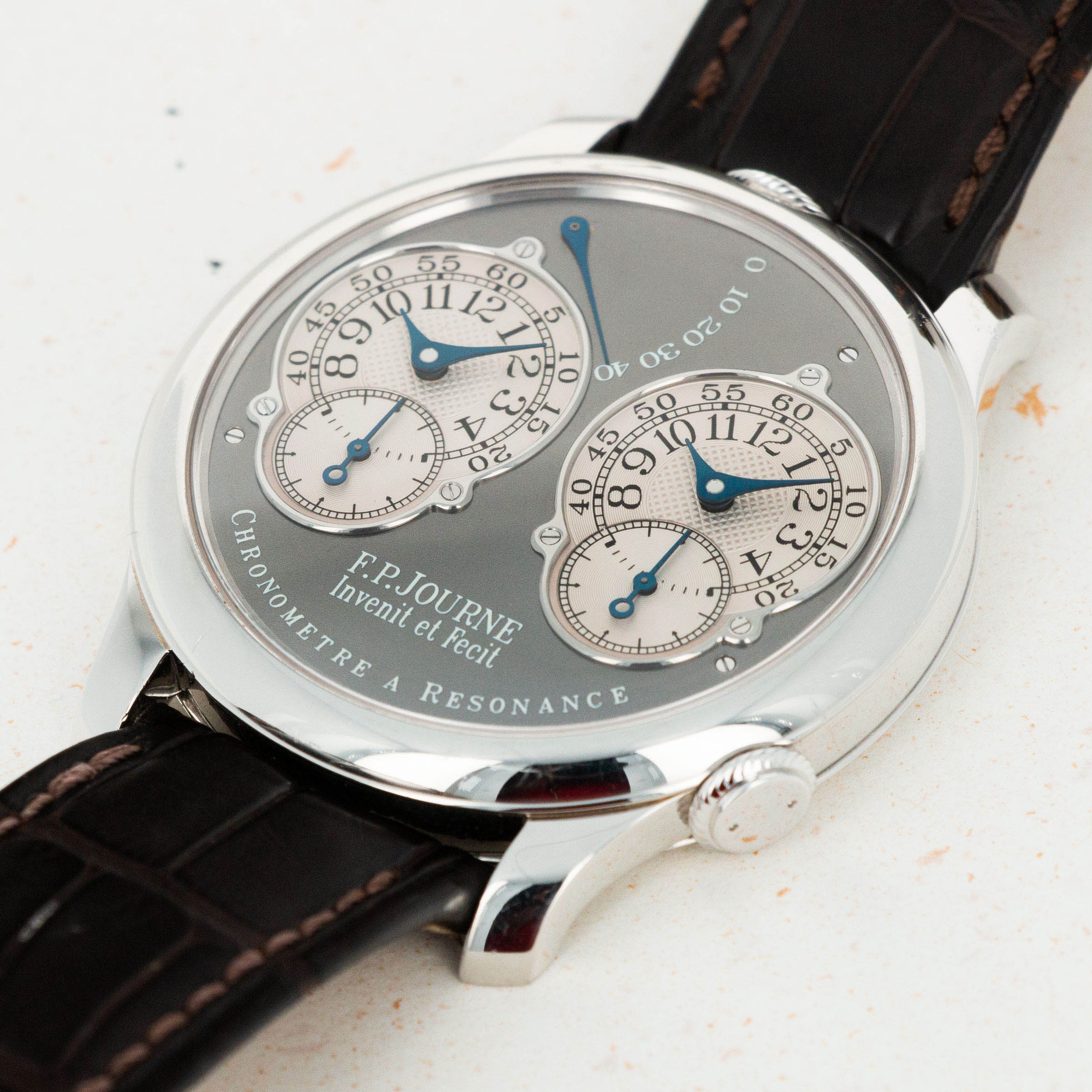 Part of the Ruthenium collection, this Resonance is one of a series of 99 pieces created at the tail end of the brass movement era. I've always prefered the original dial layout to the later versions, and with the frosted ruthenium dial and movement, this is by far my favorite execution of the most famous Journe creation.