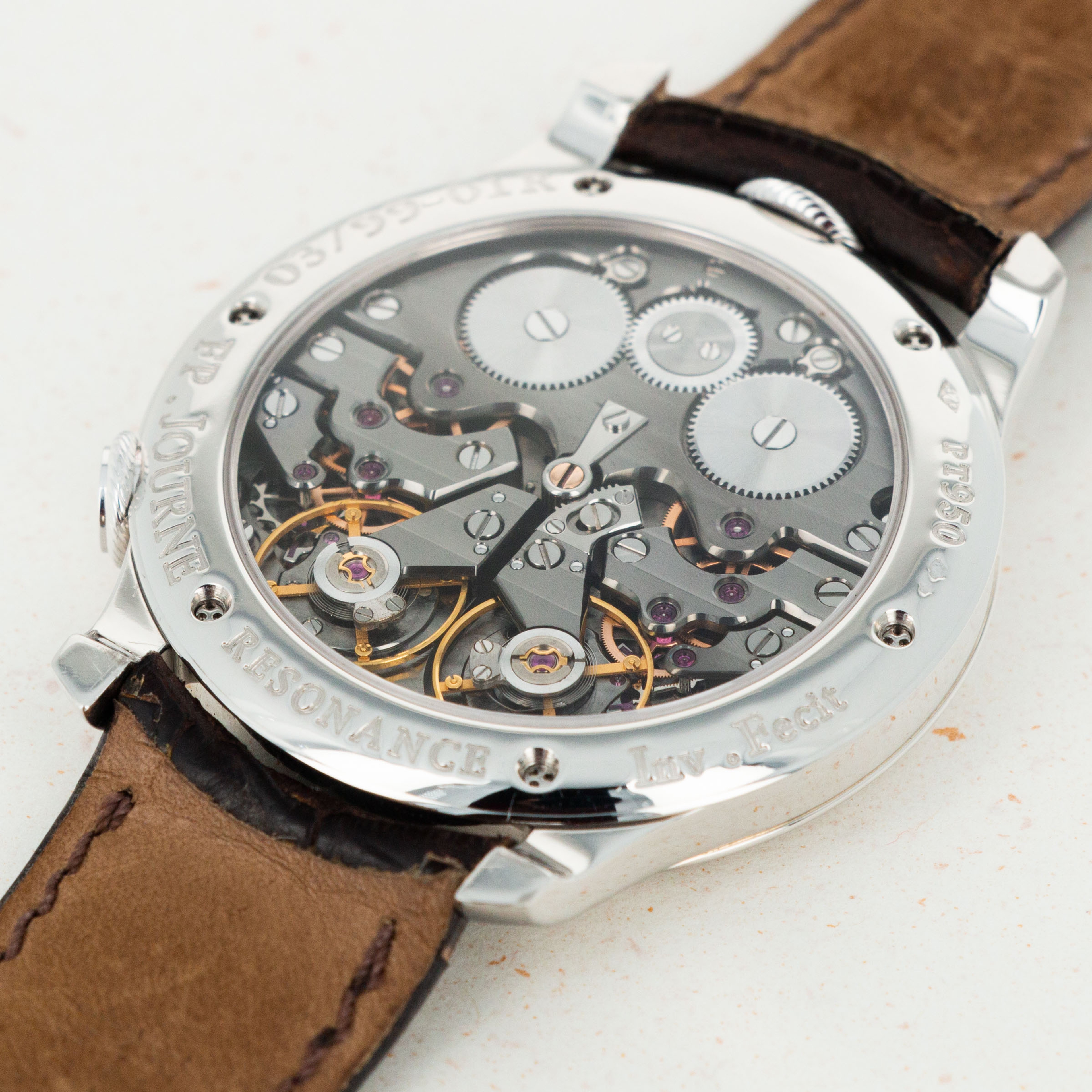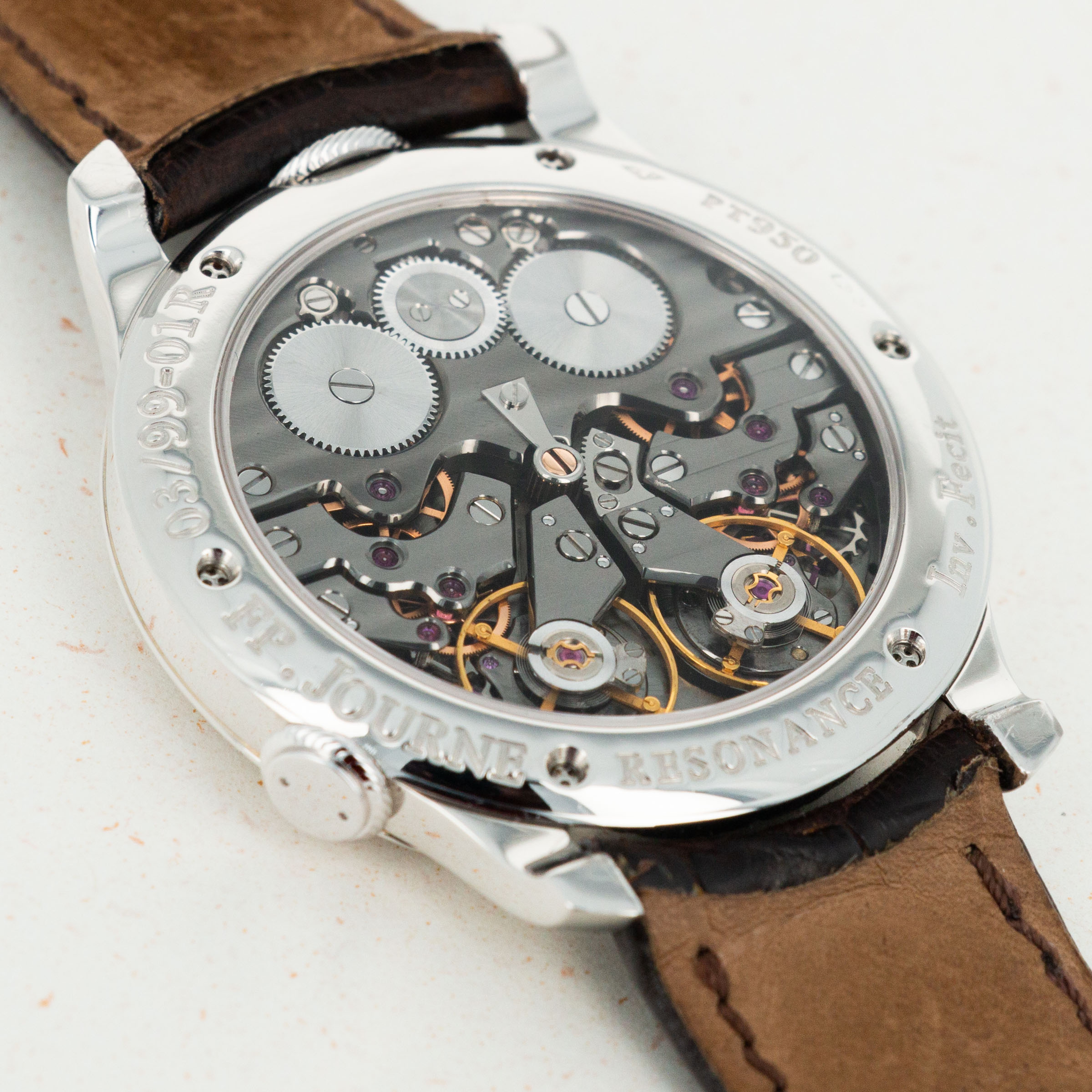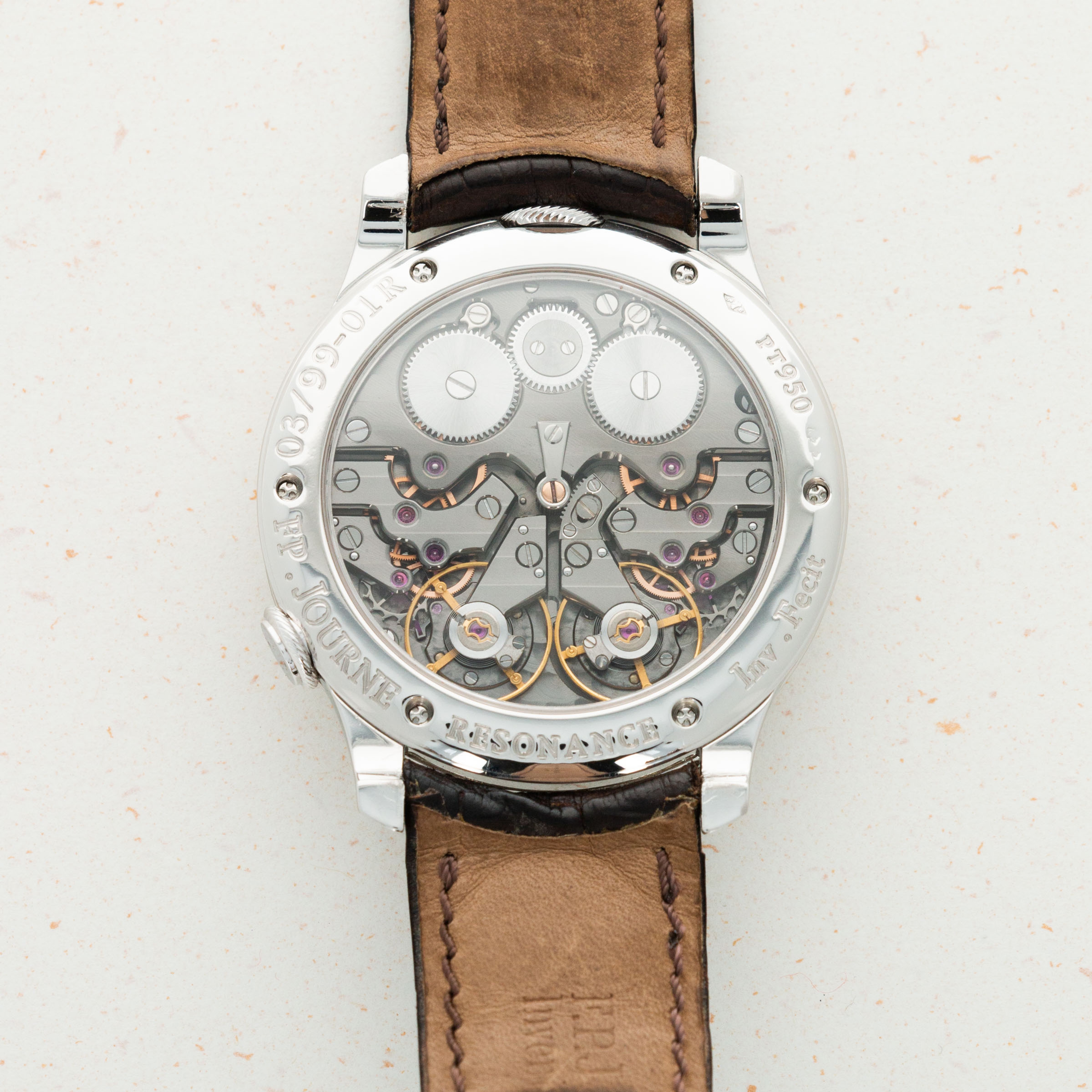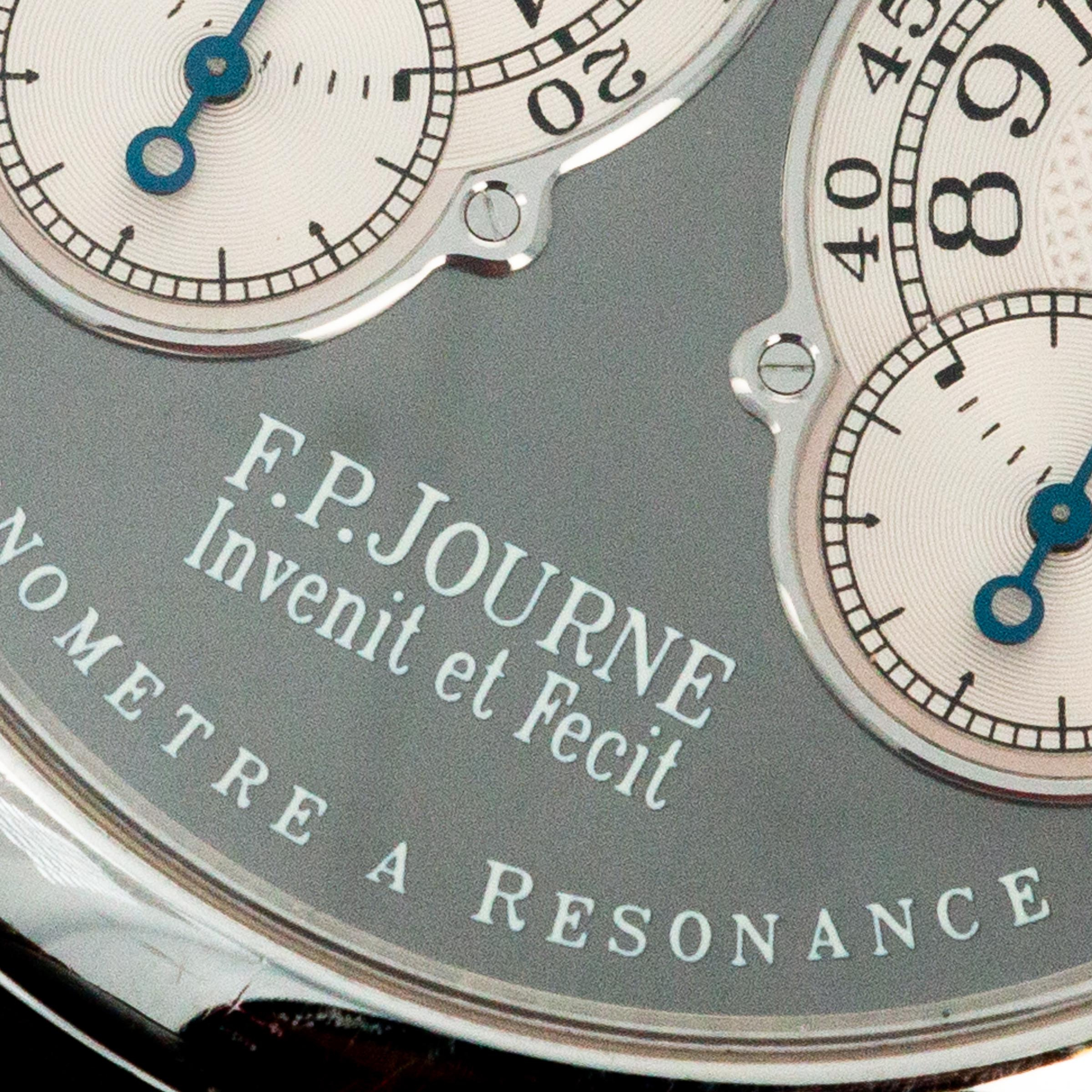 Part of the Ruthenium collection, this Resonance is one of a series of 99 pieces created at the tail end of the brass movement era. I've always prefered the original dial layout to the later versions, and with the frosted ruthenium dial and movement, this is by far my favorite execution of the most famous Journe creation.
