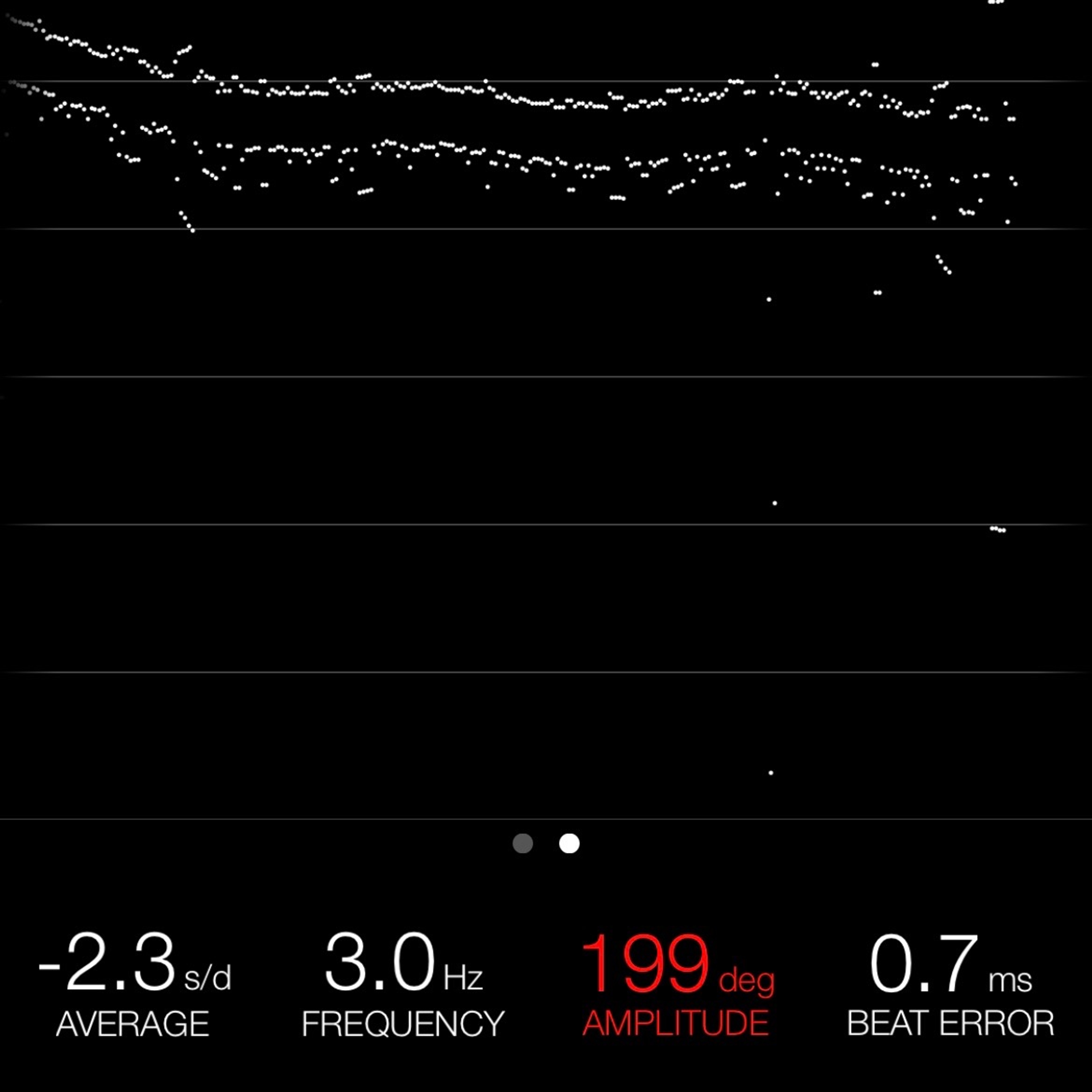 This reading was taken (crown down) with a ONEOF Accuracy Boutique Edition timing machine at time of cataloging. It is provided as a courtesy only, and shall not be construed as a warranty or guarantee of any kind. Please refer to our terms and conditions of sale for more information.