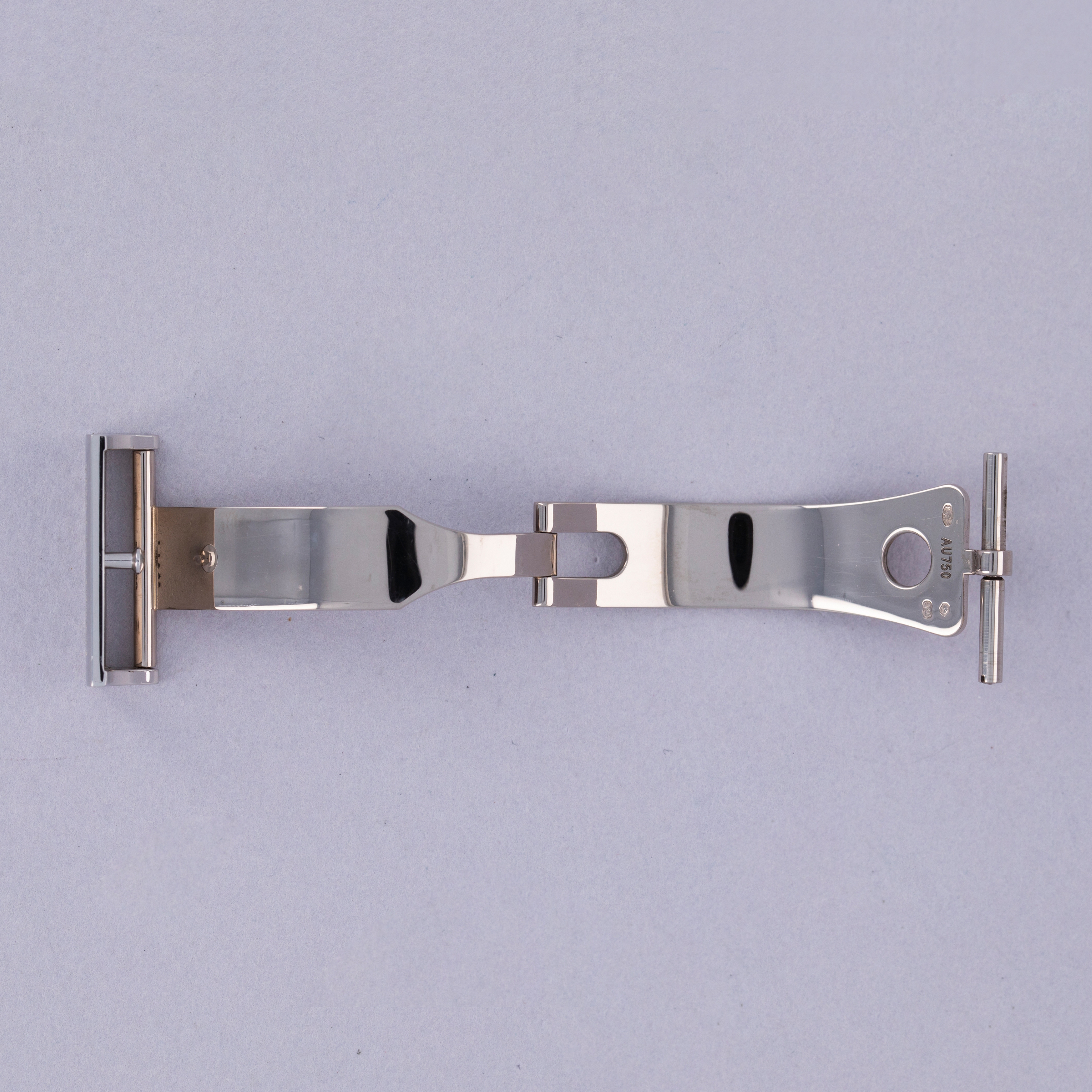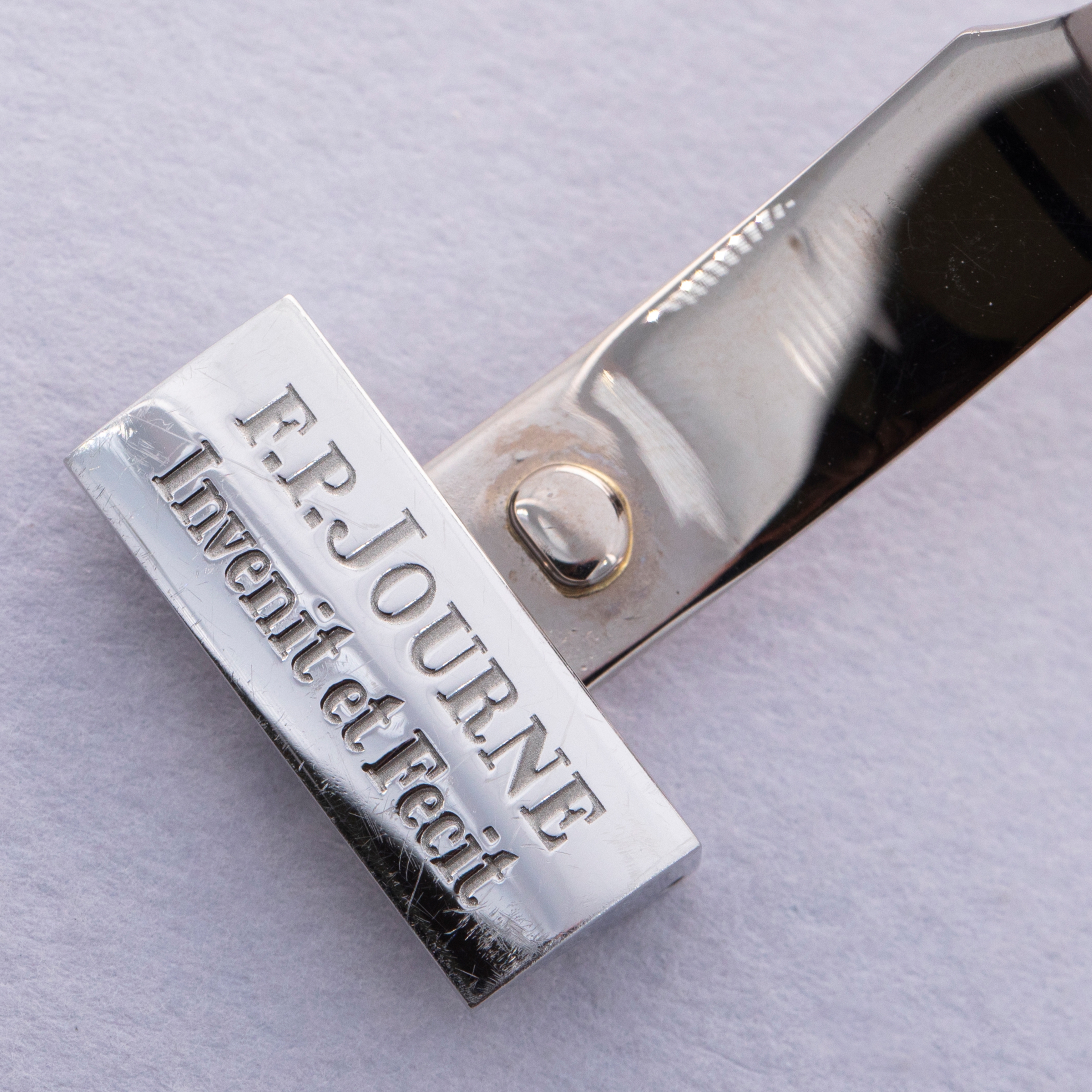 Crafted with the precision and craftsmanship that we have come to expect from F.P. Journe, offered here we have the iconic independent watchmaker’s signature platinum deployant buckle. Featuring an understated design with an engraved rectangular tab that houses the pin to secure the buckle, this deployant clasp adds the final touch to any leather-strapped F.P. Journe watch. With an MSRP of $6500 and only available for purchase by existing F.P. Journe clients, this presents a wonderful opportunity to get your hands on a necessary piece of kit for your F.P. Journe timepiece.