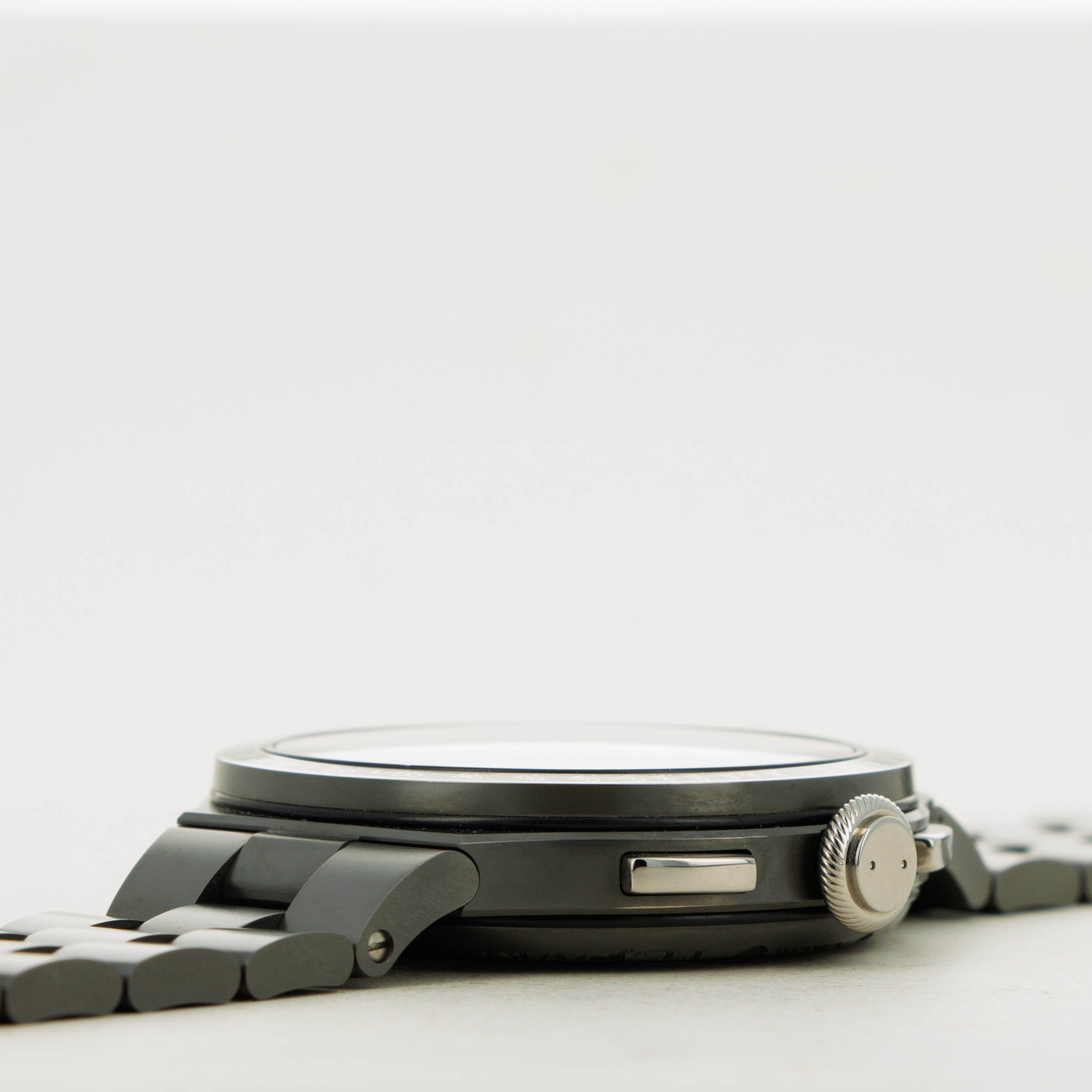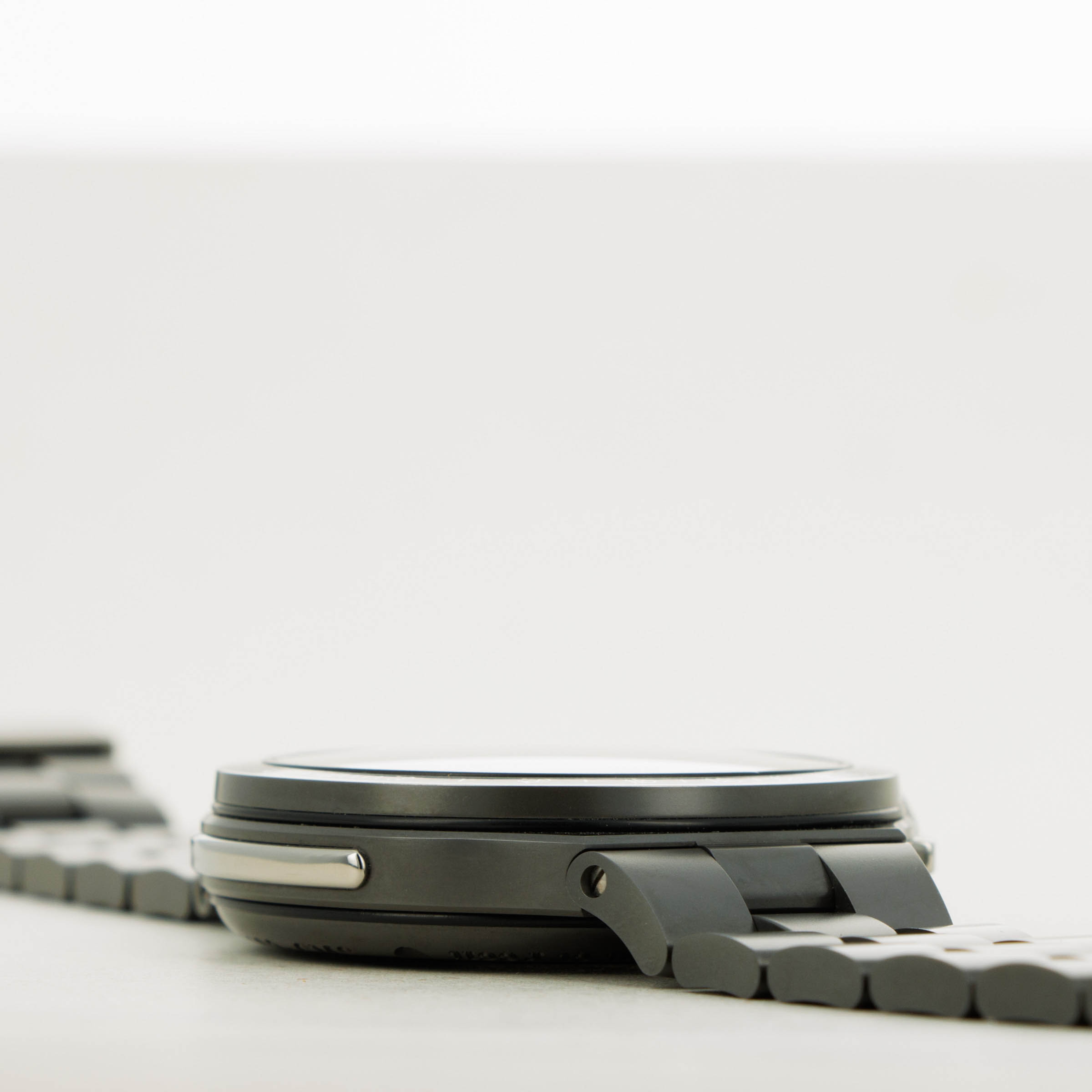 While its 44mm diameter can sound daunting, the Chronographe Monopoussoir Rattrapante benefits from F.P. Journe's impressively consistent proportions to ensure that it wears smaller than one might assume. With its integrated bracelet free from lugs and a titanium construction, it wears incredibly elegantly.