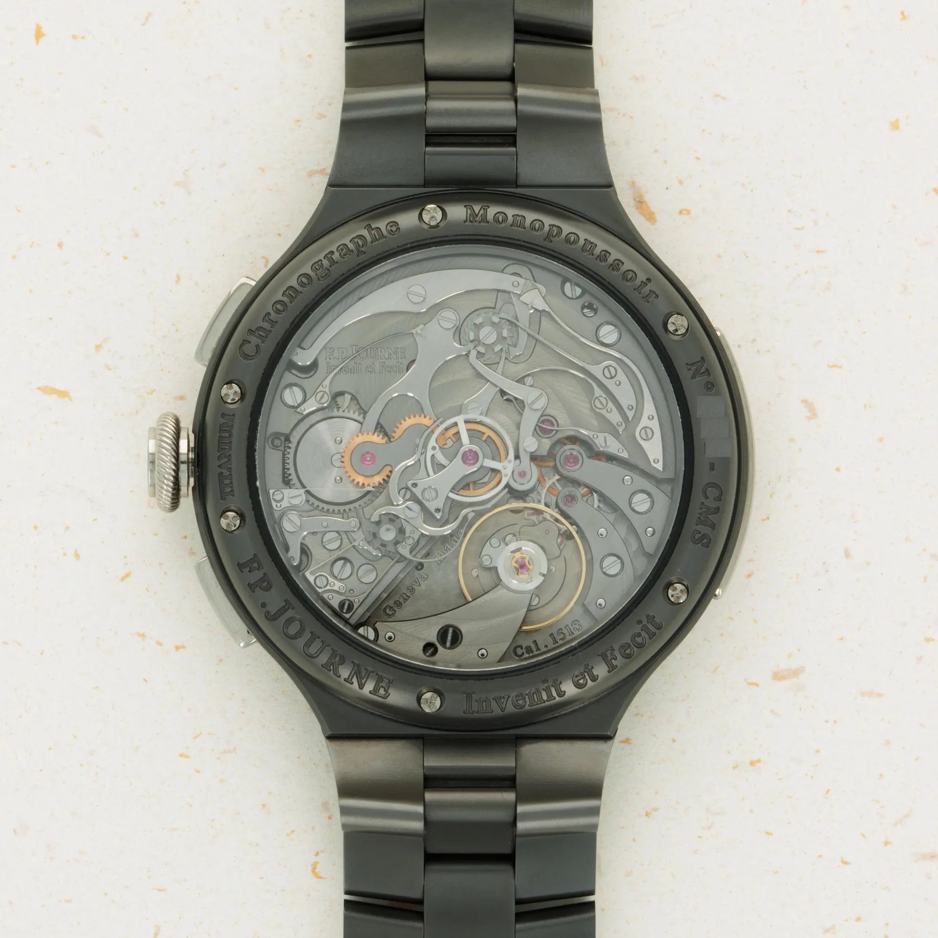 Like many watchmaking brands, FP Journe has become renowned for particular kinds of watches. While this certainly isn't a bad thing, it does lead us to be somewhat surprised when they break the mould, just like when the F.P. Journe launched the Chronographe Monopoussoir Rattrapante. A sports watch in design, and at heart, the Chronographe Monopoussoir Rattrapante is, as its name suggests, a monopusher split-second chronograph fitted on a titanium bracelet and case that is powered by FP Journe's technically impressive manually-wound cal. 1518 movement made entirely of aluminium. Packing 80 hours of power reserve and a flyback function, the Chronographe Monopoussoir Rattrapante is perhaps one of the finest and best value high horology split-second chronographs on the market. As you would expect from a watchmaker like FP Journe, this timepiece pulls no punches regarding its construction, engineering prowess or unadulterated beauty. Measuring 44mm in diameter, the Chronographe Monopoussoir Rattrapante is certainly on the larger side, but with its titanium construction and integrated bracelet design it wears much smaller than one might expect. Offering F.P. Journe’s aesthetics through its dial and overarching design, the Chronographe Monopoussoir Rattrapante offers F.P. Journe’s iconic design language within a technically astute package that shows F.P. Journe makes a lot more than just dress watches.
