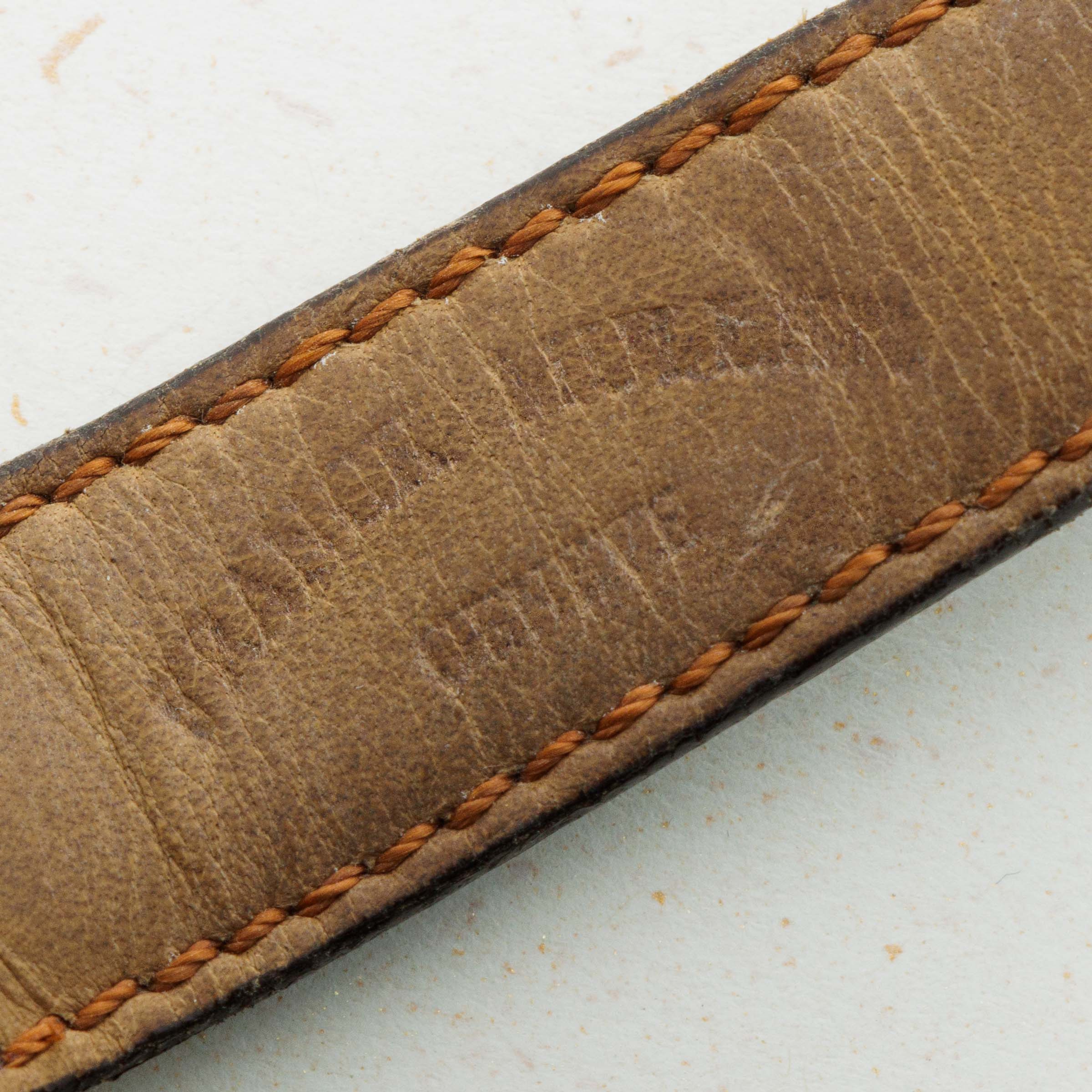 Watch is in excellent overal condition. Case exhibits typical wear and superficial scratches. Dial near-mint condition, with luminous hands and 12 6 and 9 indexes. Watch comes on its original worn strap with gold buckle.