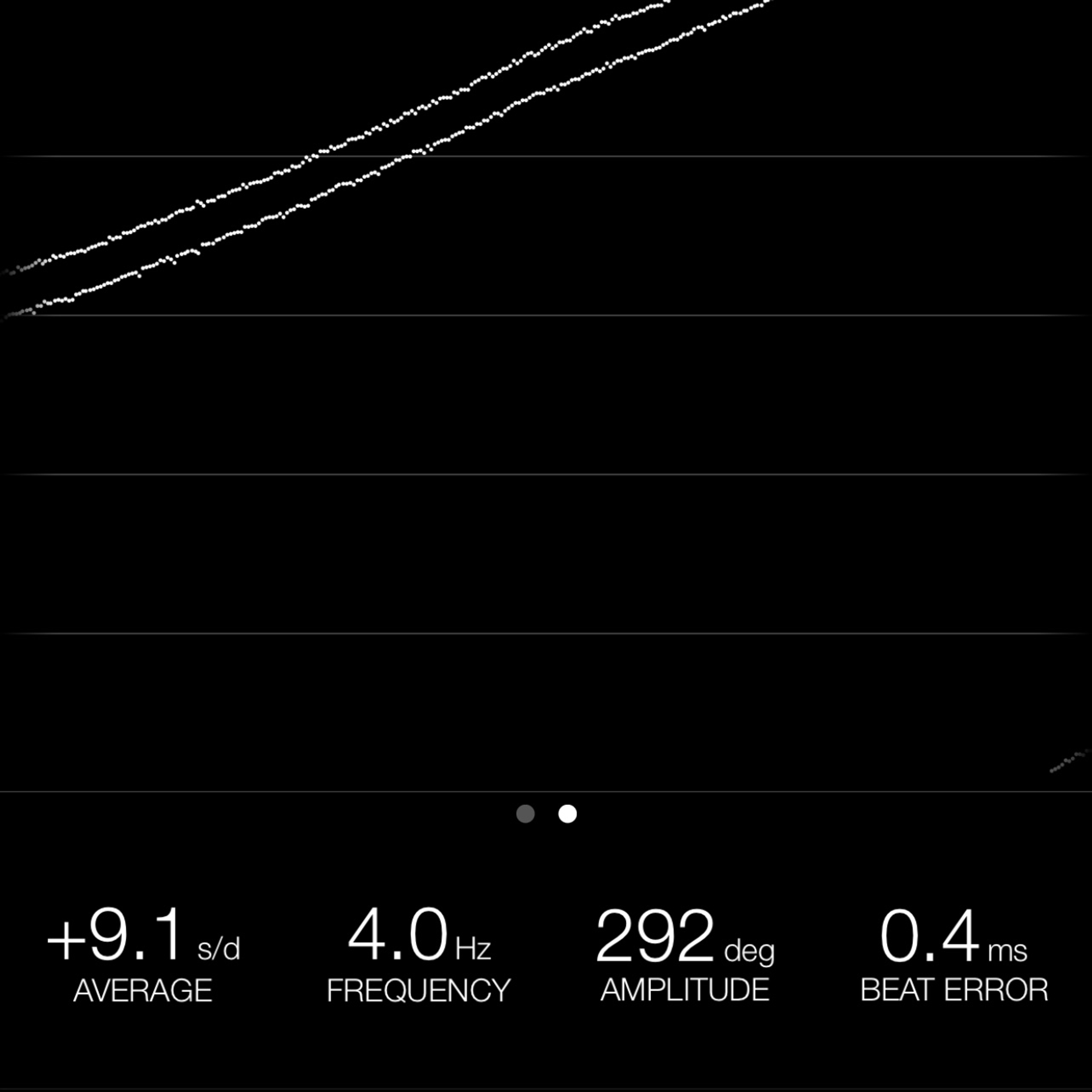 This reading was taken (crown down) with a ONEOF Accuracy Boutique Edition timing machine at time of cataloging. It is provided as a courtesy only, and shall not be construed as a warranty or guarantee of any kind. Please refer to our terms and conditions of sale for more information.