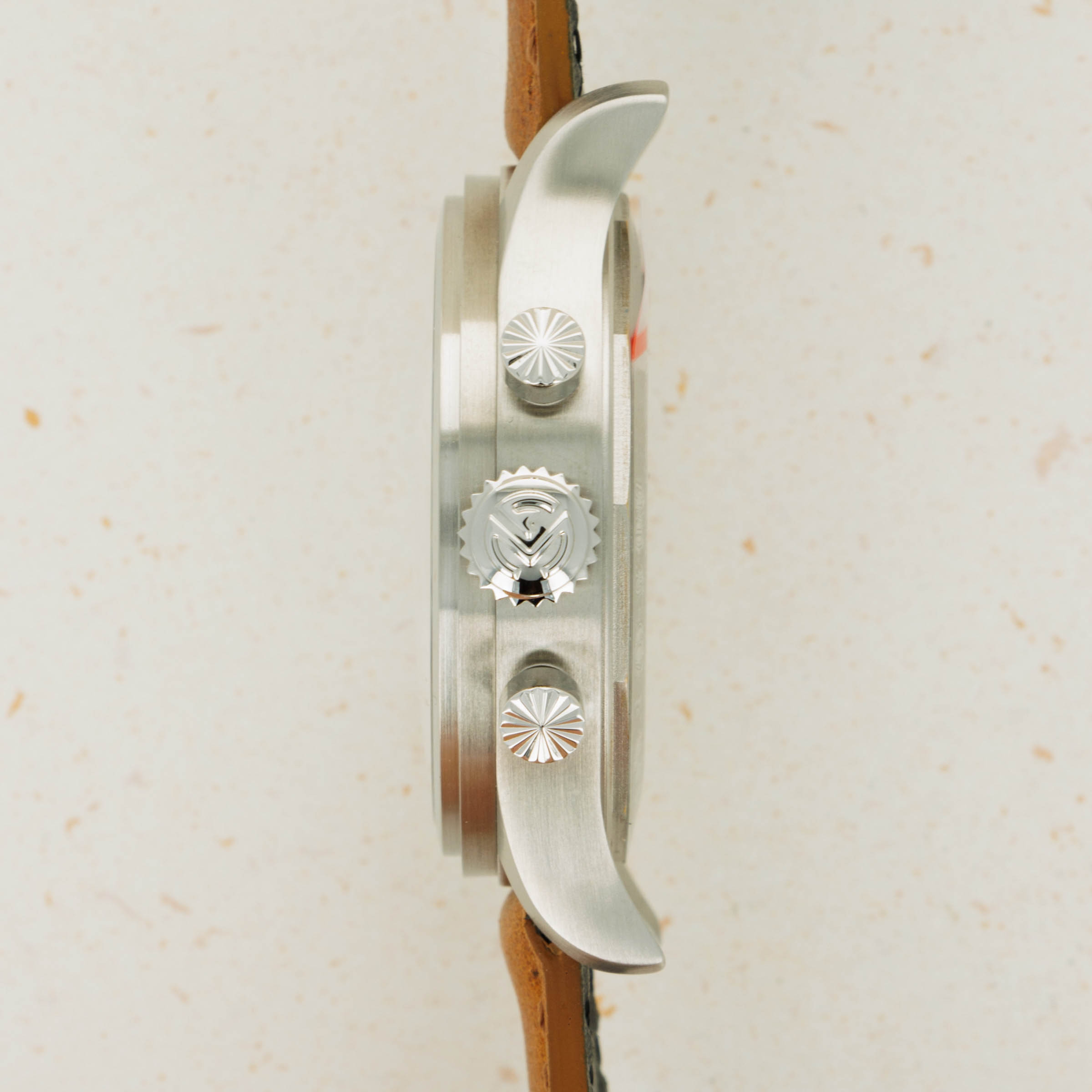 While inspired by mid-century chronographs of old, the Grail Watch 2 features a contemporary 39mm diameter that makes it perfectly wearable and suited to modern tastes.