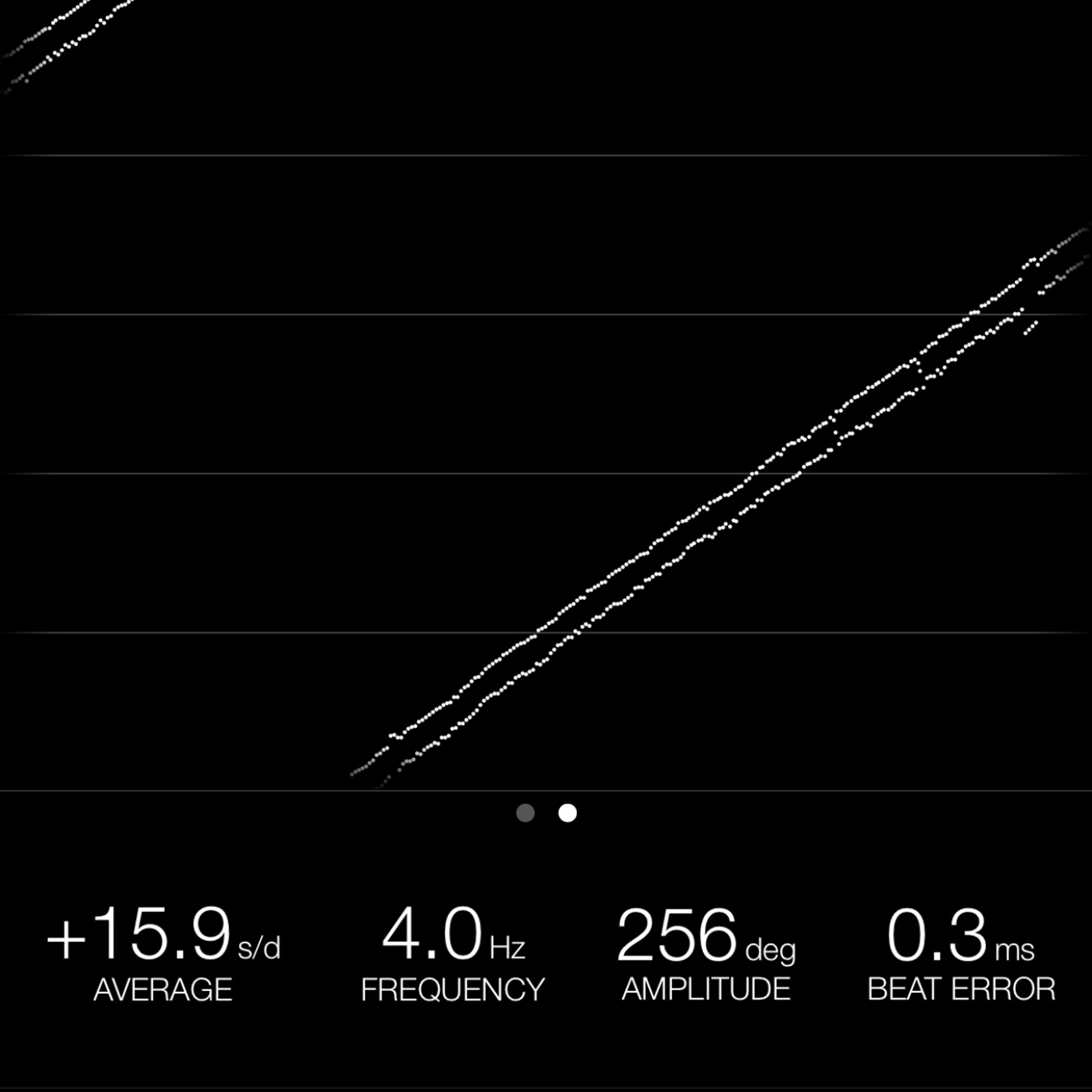 This reading was taken (crown down) with a ONEOF Accuracy Boutique Edition timing machine at time of cataloging. It is provided as a courtesy only, and shall not be construed as a warranty or guarantee of any kind. Please refer to our terms and conditions of sale for more information.
