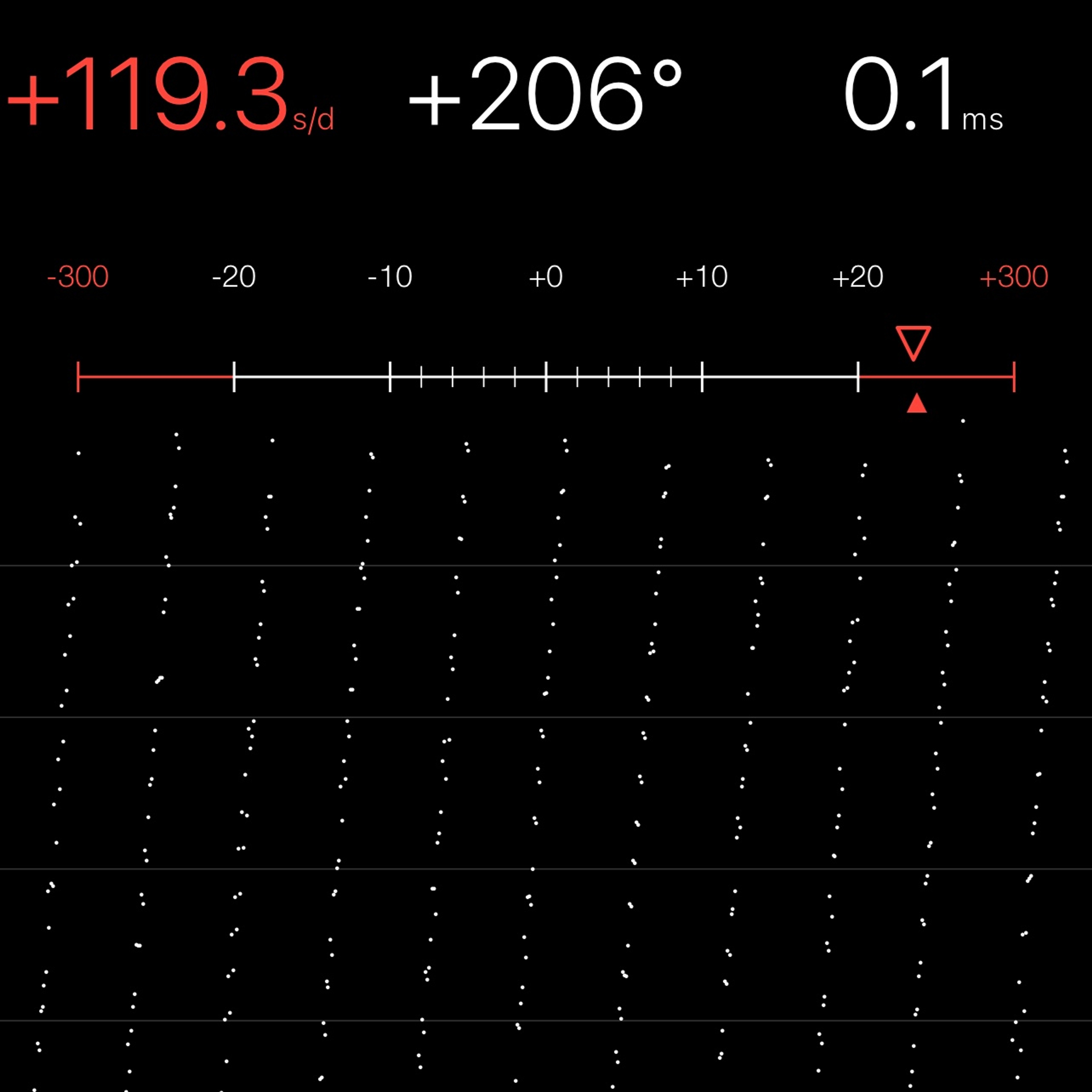 This reading was taken (crown down) with a ONEOF Accuracy Boutique Edition timing machine at time of cataloging. It is provided as a courtesy only, and shall not be construed as a warranty or guarantee of any kind. Please refer to our terms and conditions of sale for more information. Please Note: The perpetual calendar mechanism has not been tested and the timing machine readout suggests a movement overhaul is needed.