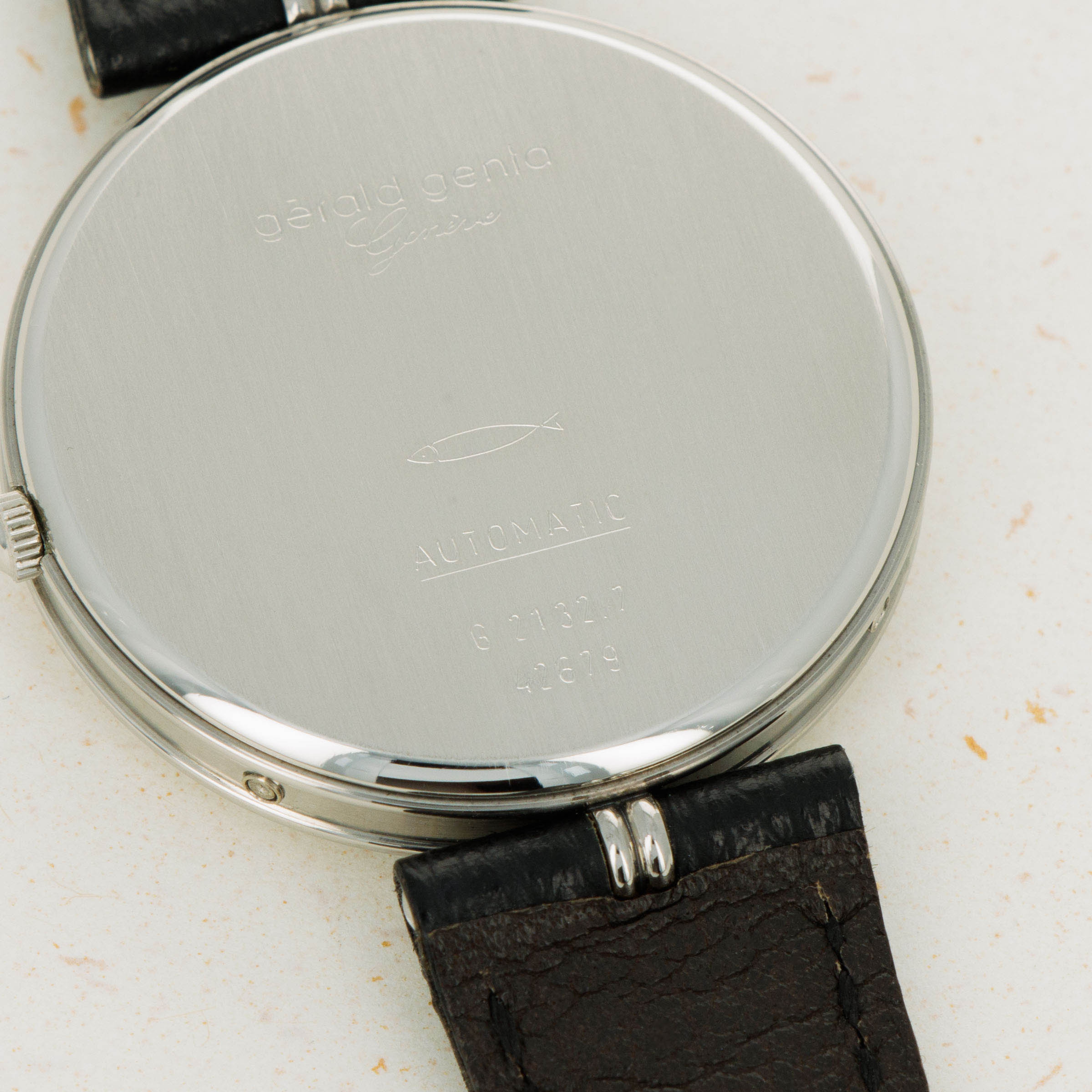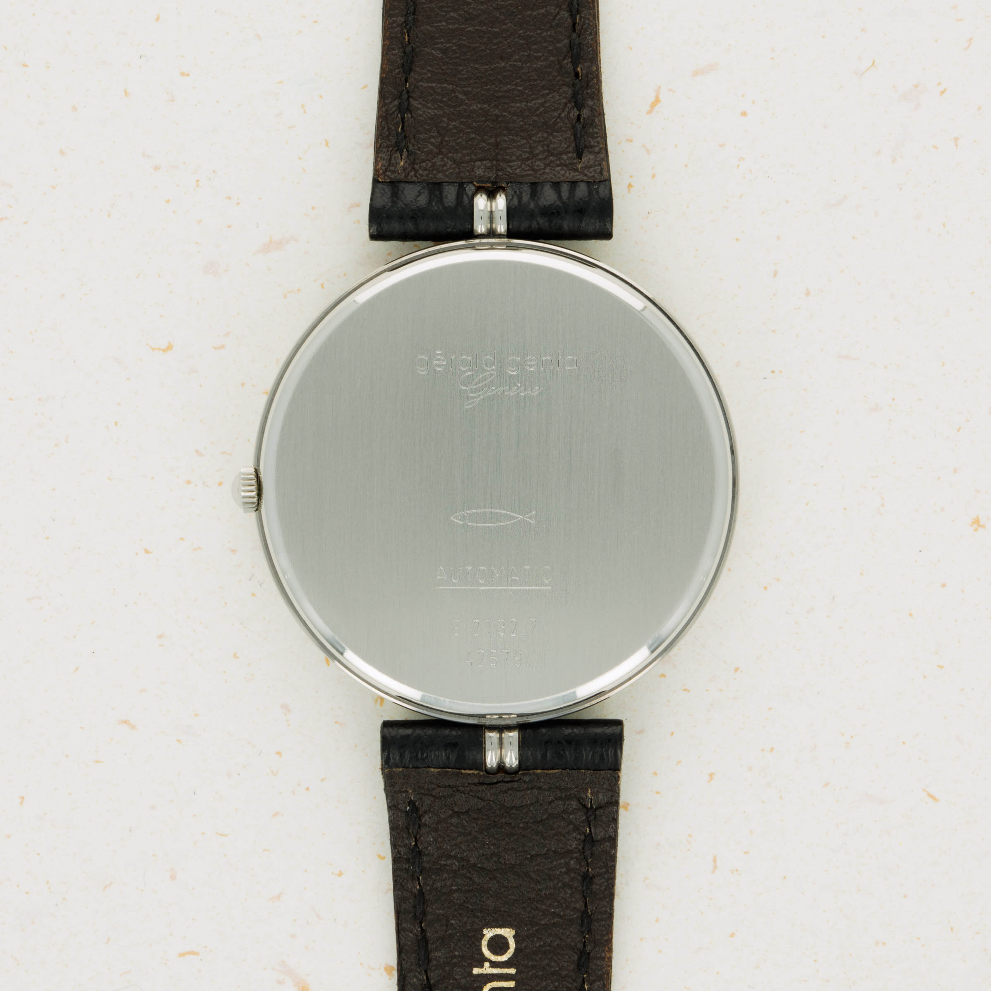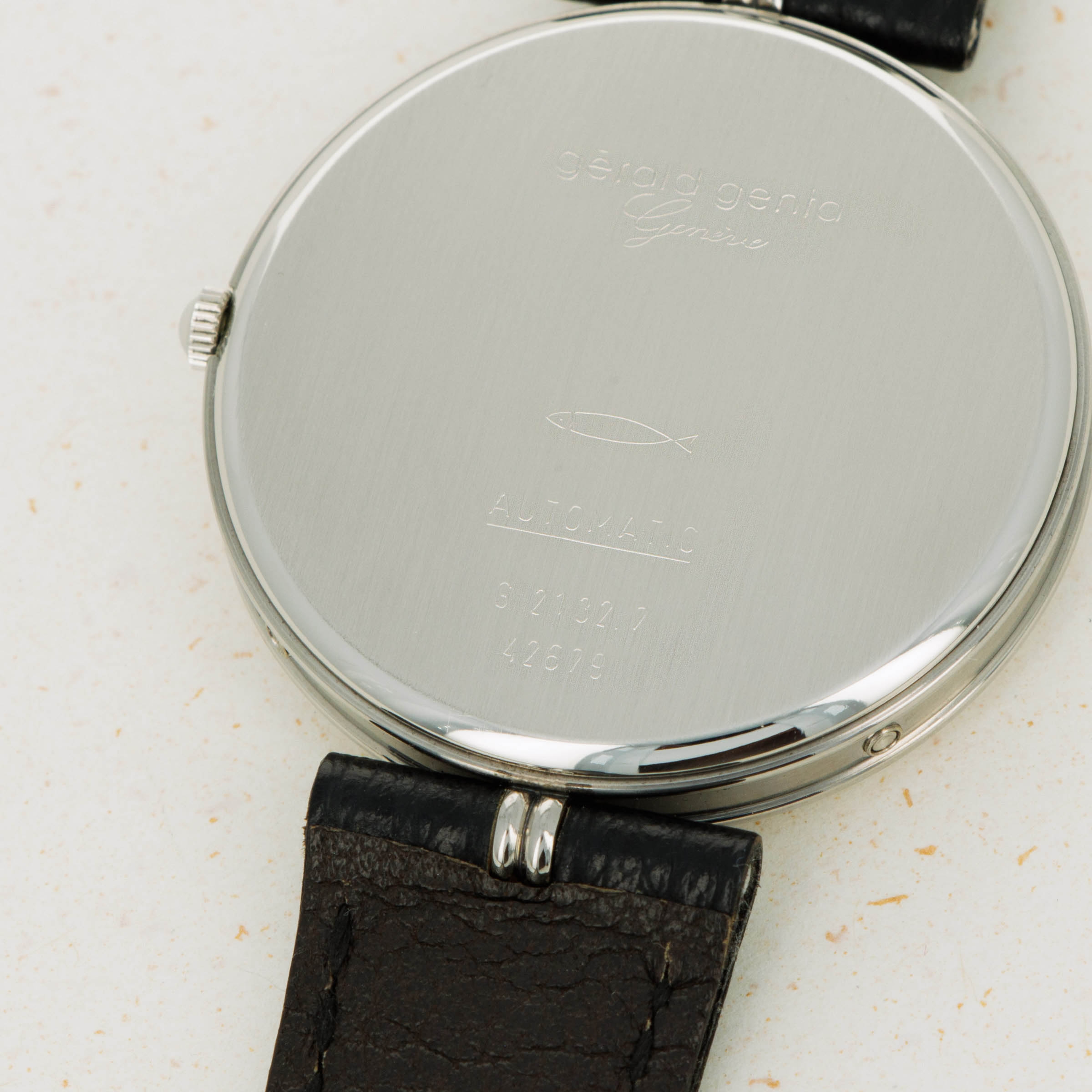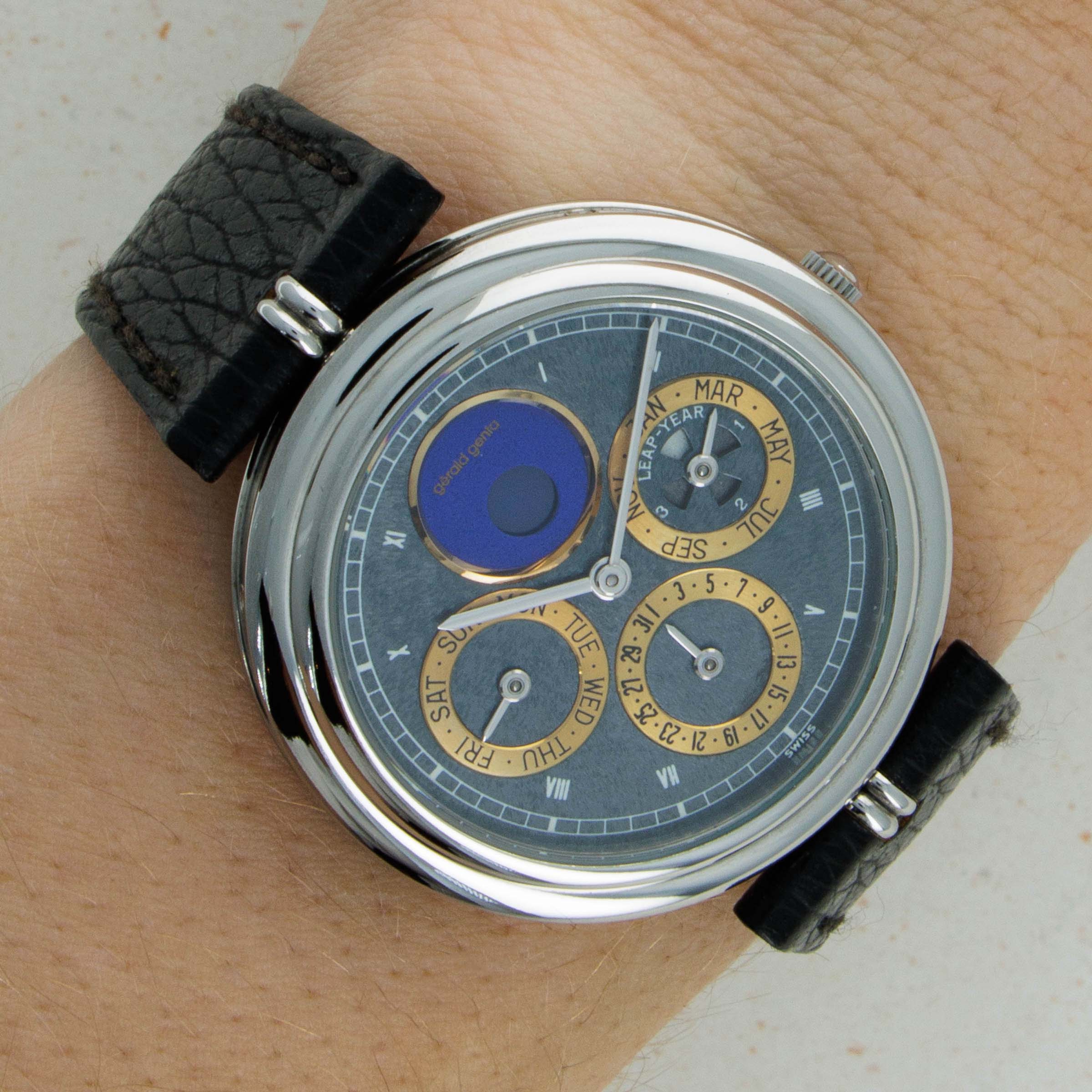 With its small crown, 36mm diameter, flat 8mm profile and single-lug design, the Gerald Genta Perpetual Calendar wears neatly on the wrist making it a fantastic unisex option.