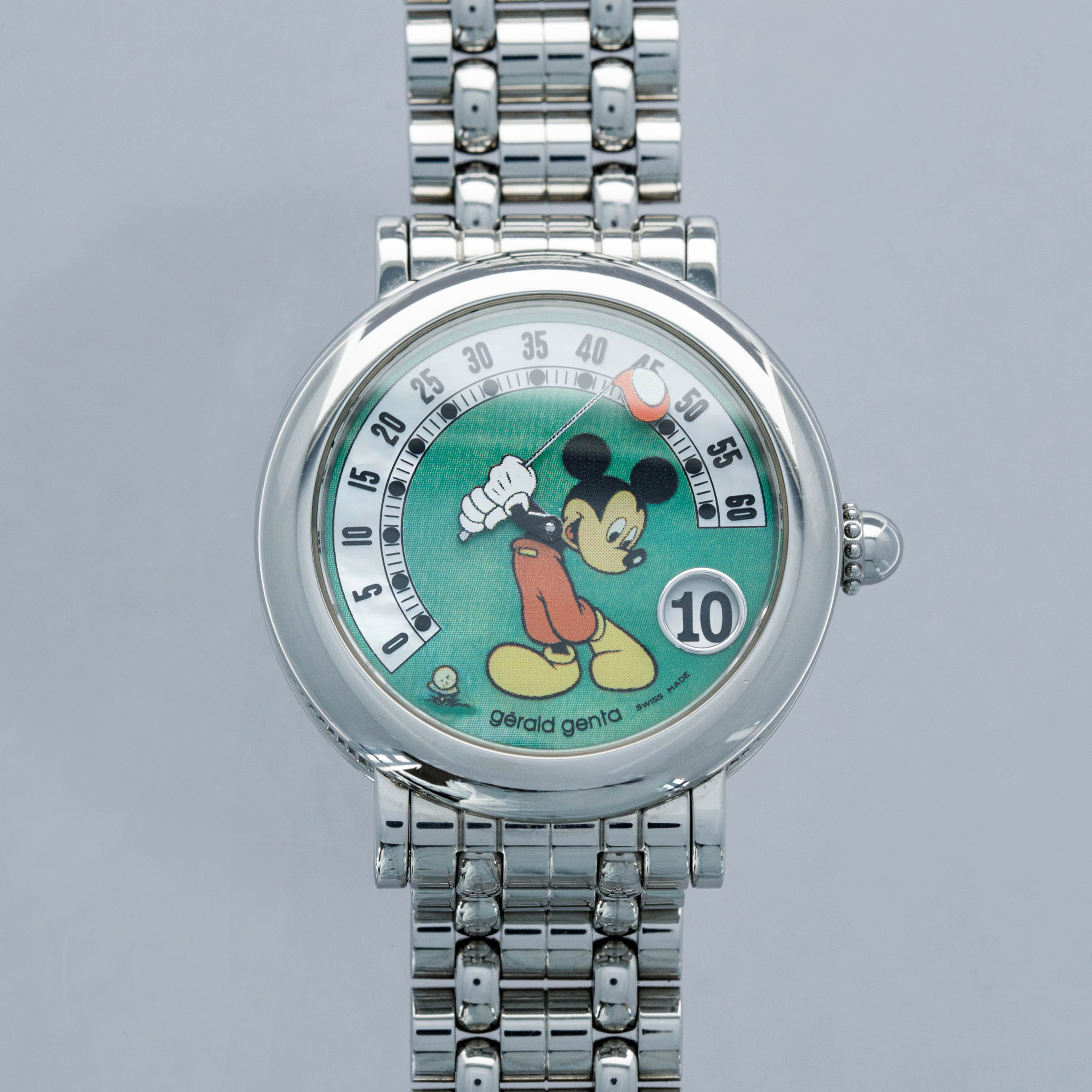 Featuring Mickey Mouse with his golf club acting as the retrograde minute hand, this timepiece couples horological prowess with a fun design that has since gone on to encapsulate the Gerald Genta brand.