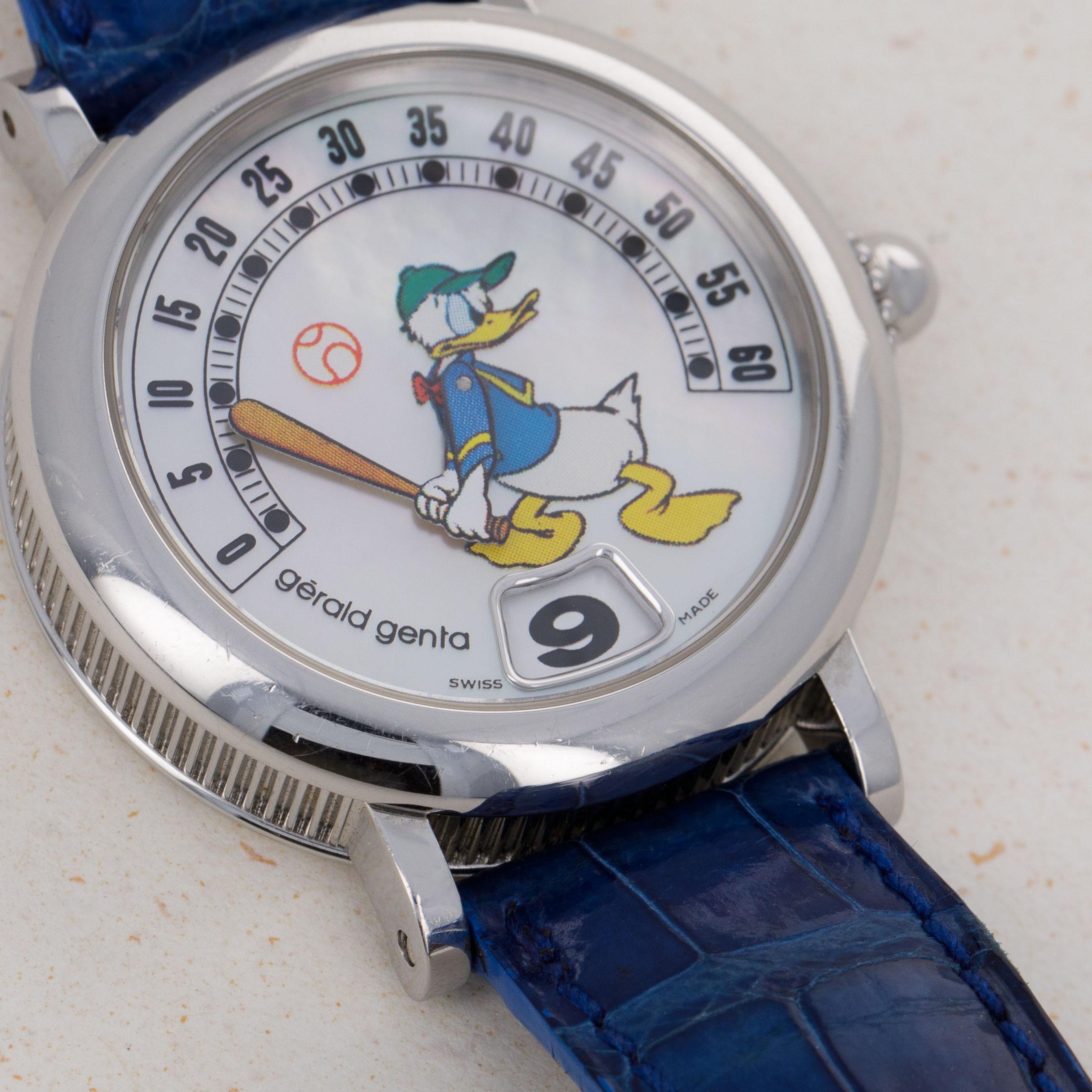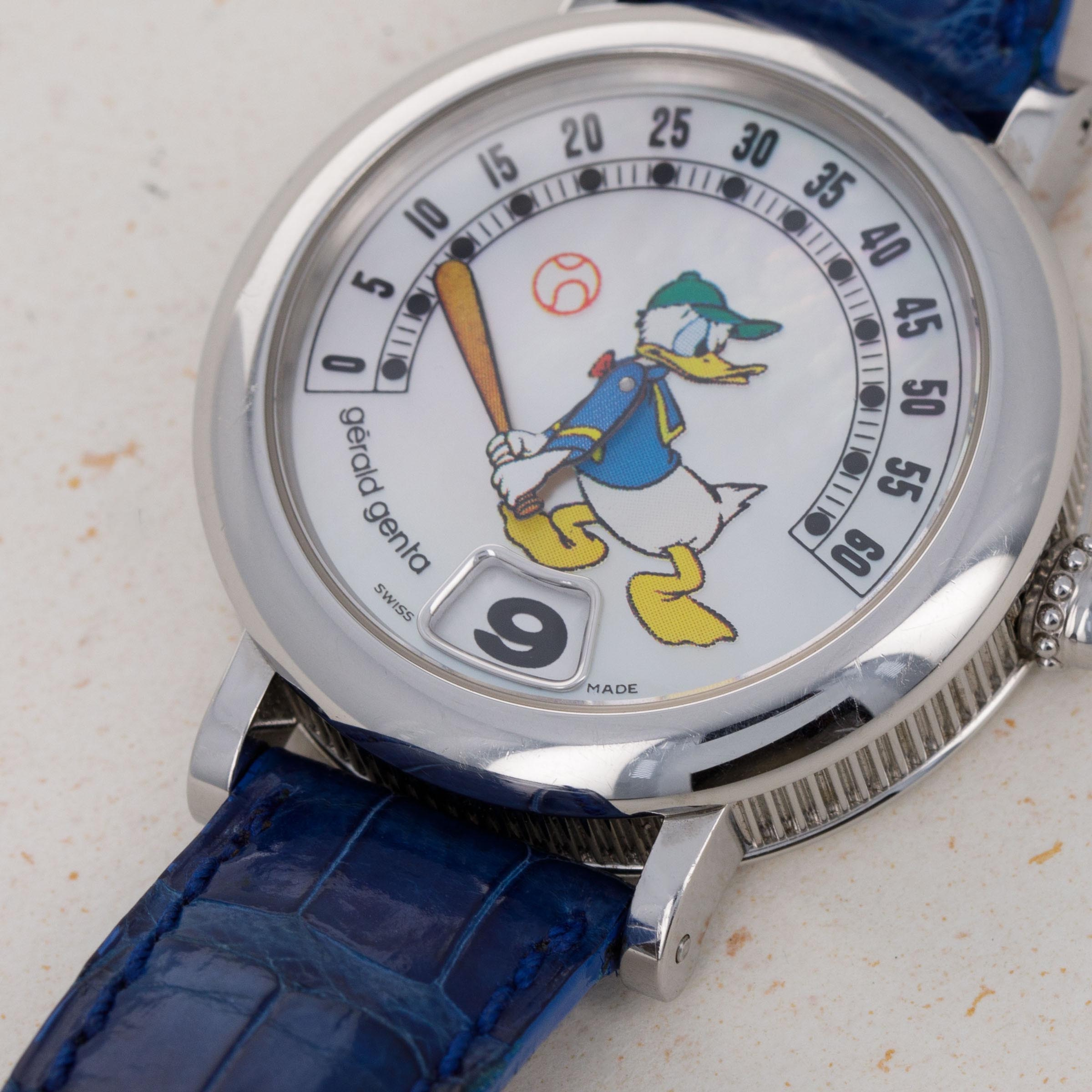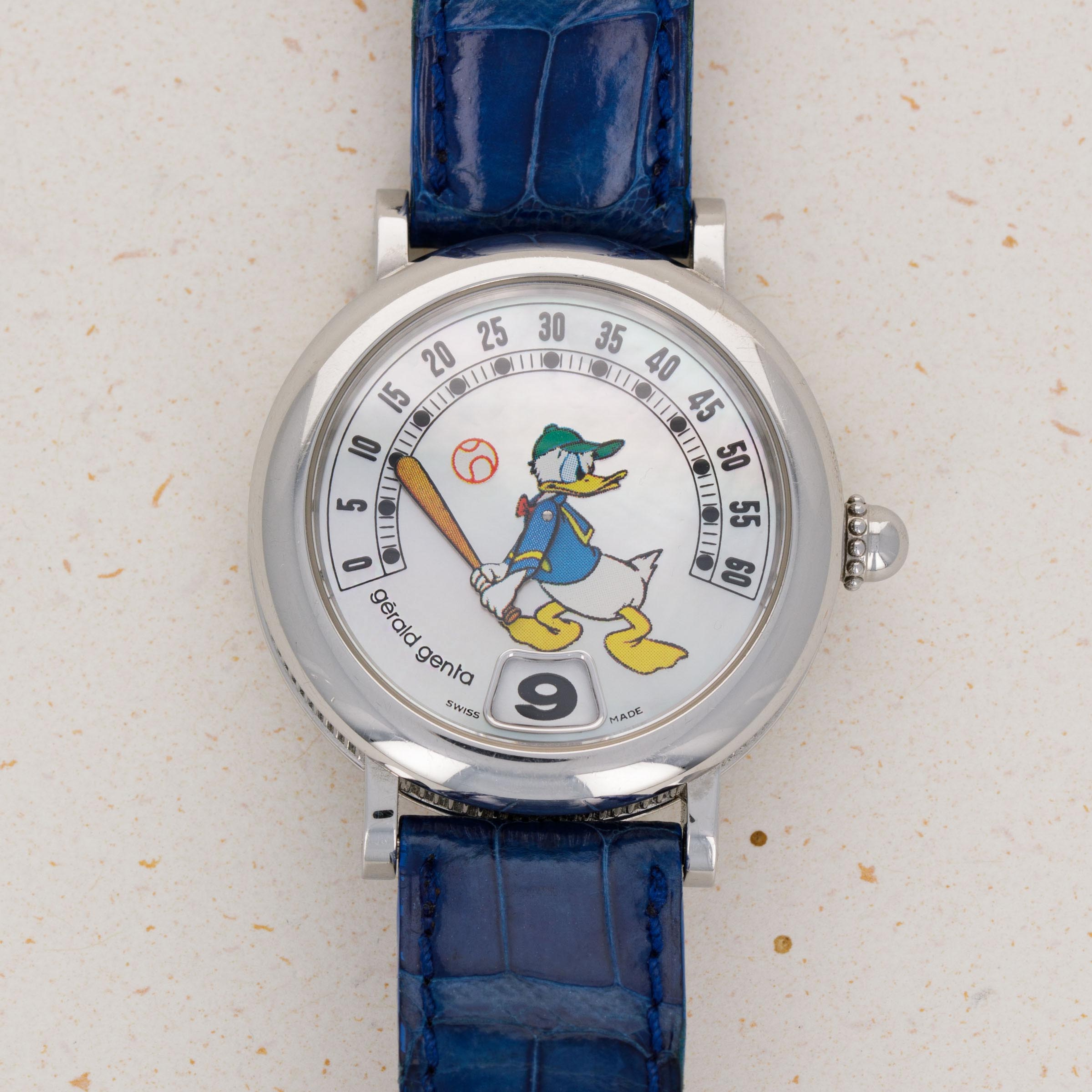 Featuring Donald Duck with his baseball bat acting as the retrograde minute hand, this timepiece couples horological prowess with a fun design that has since gone on to encapsulate the Gerald Genta brand.
