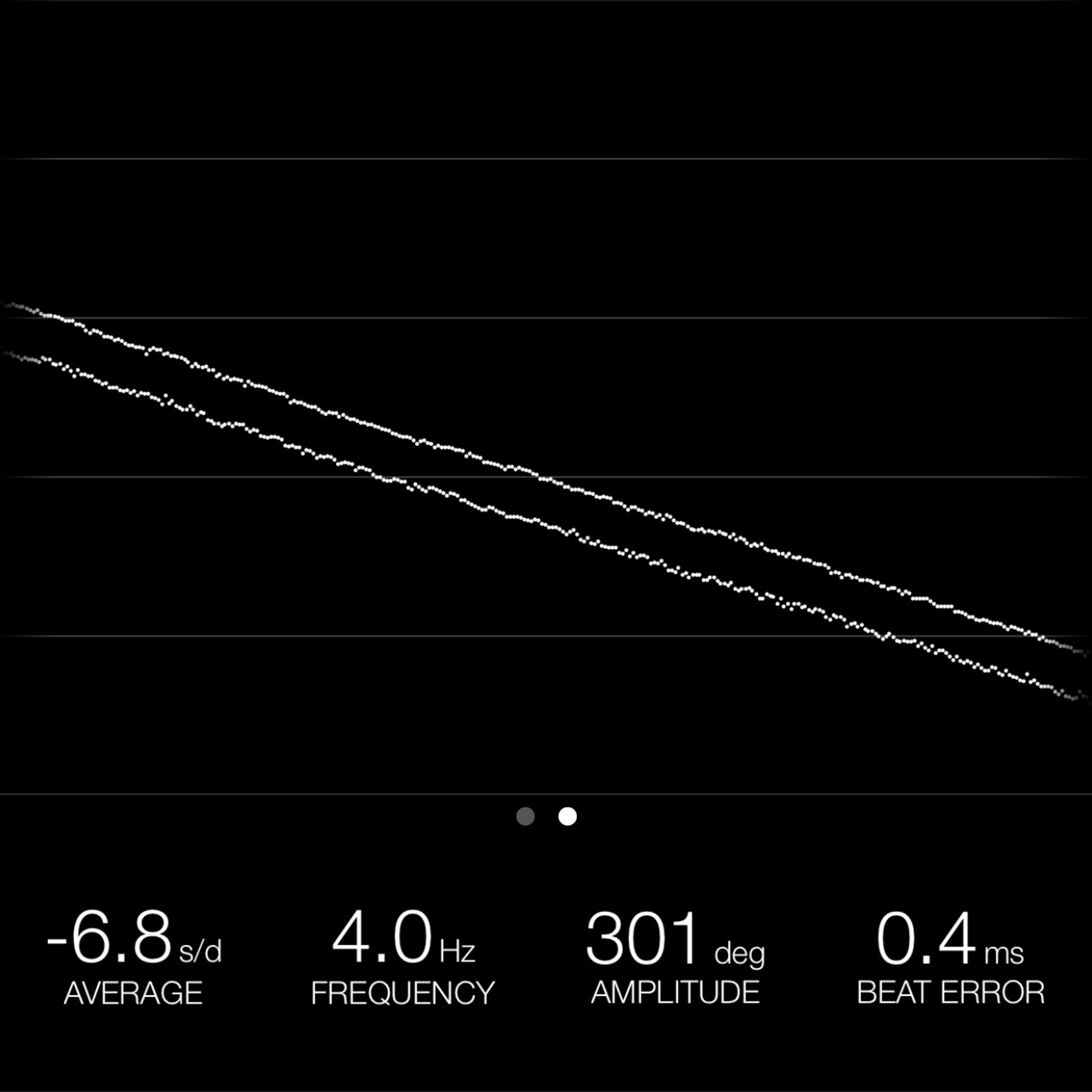 This reading was taken (crown down) with a ONEOF Accuracy Boutique Edition timing machine at time of cataloging. It is provided as a courtesy only, and shall not be construed as a warranty or guarantee of any kind. Please refer to our terms and conditions of sale for more information.