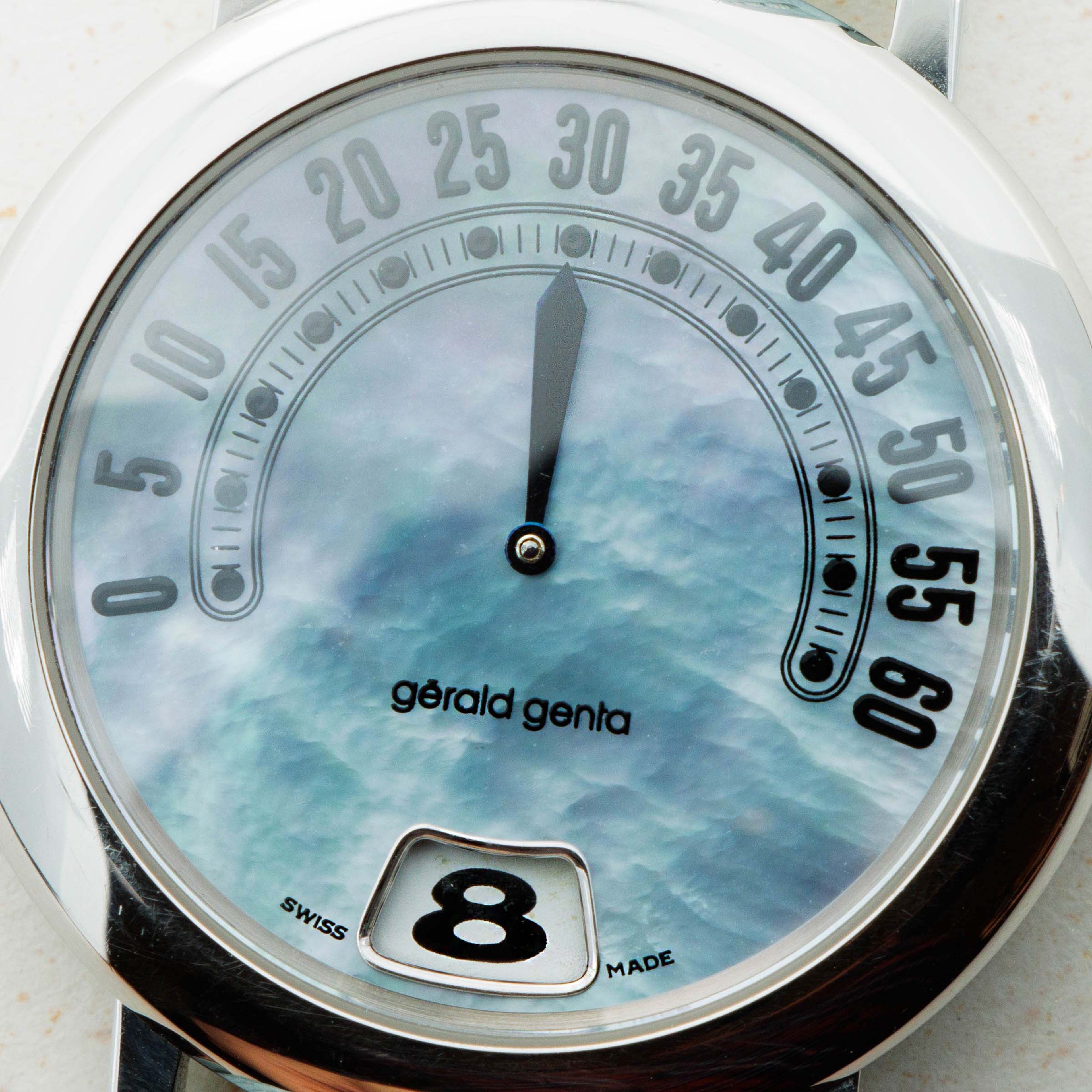 Gerald Genta Retro Jump Hour G3634 Stainless Steel Mother of Pearl Dial