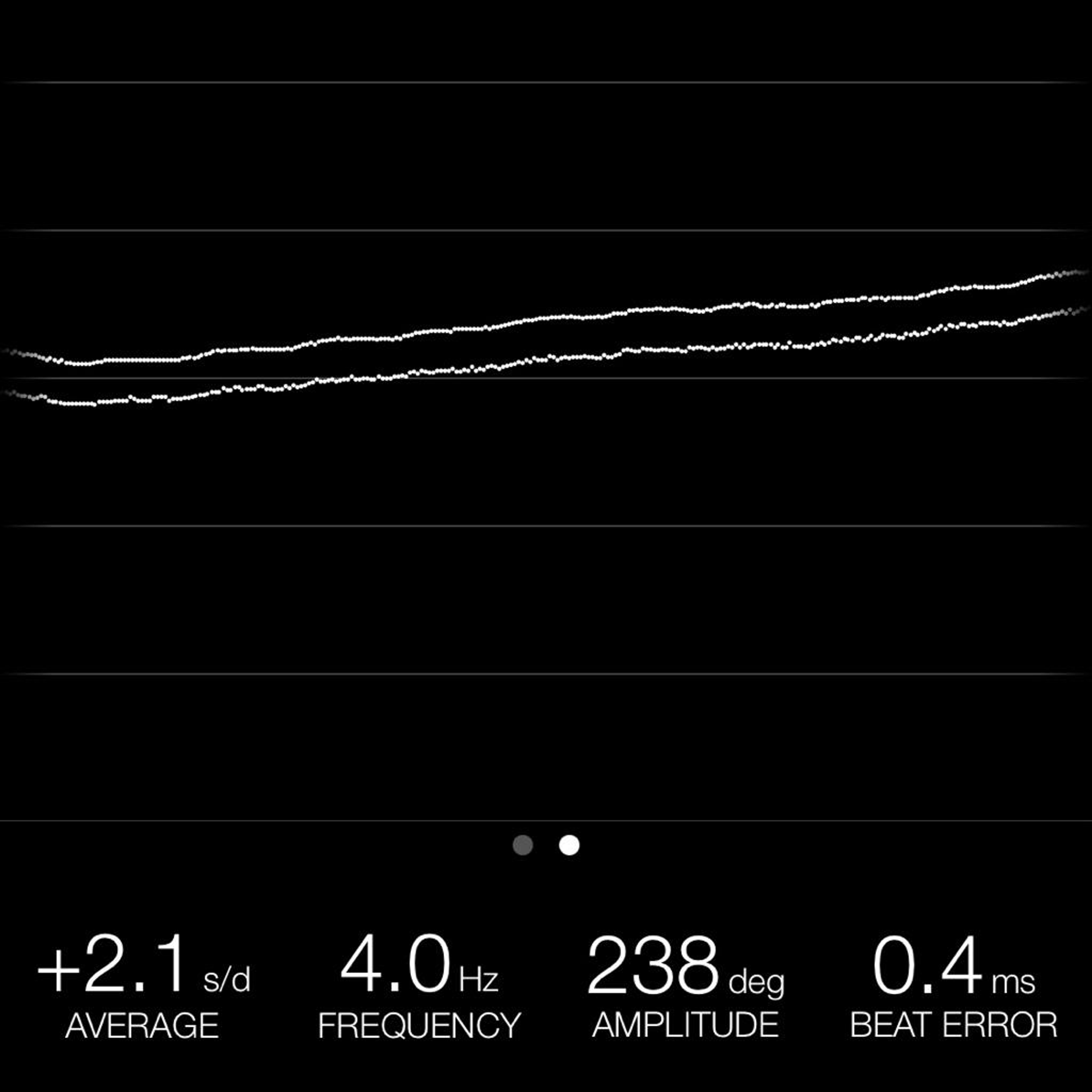 This reading was taken (crown down) with a ONEOF Accuracy Boutique Edition timing machine at time of cataloging. It is provided as a courtesy only, and shall not be construed as a warranty or guarantee of any kind. Please refer to our terms and conditions of sale for more information.