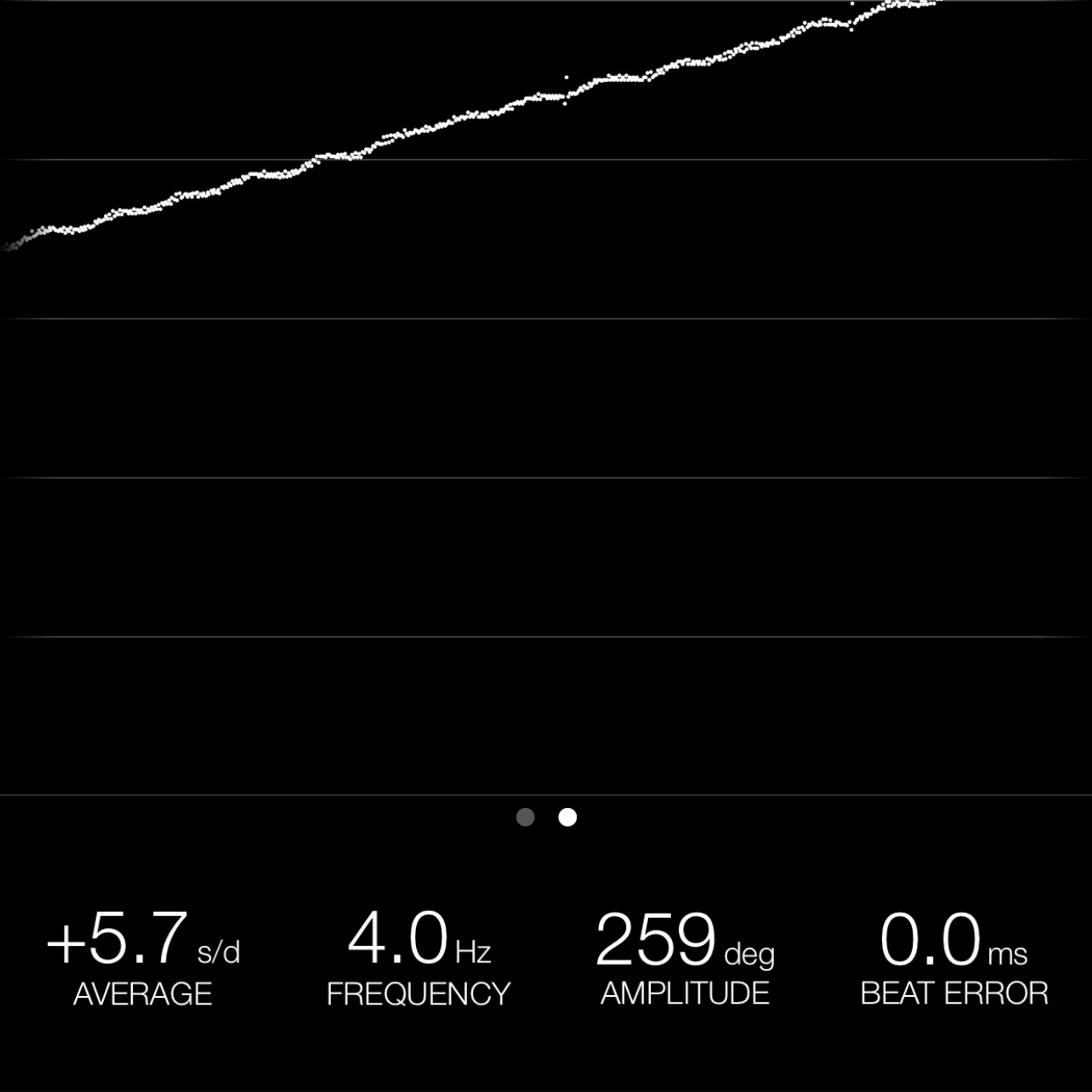 This reading was taken (crown down) with a ONEOF Accuracy Boutique Edition timing machine at time of cataloging. It is provided as a courtesy only, and shall not be construed as a warranty or guarantee of any kind. Please refer to our terms and conditions of sale for more information.