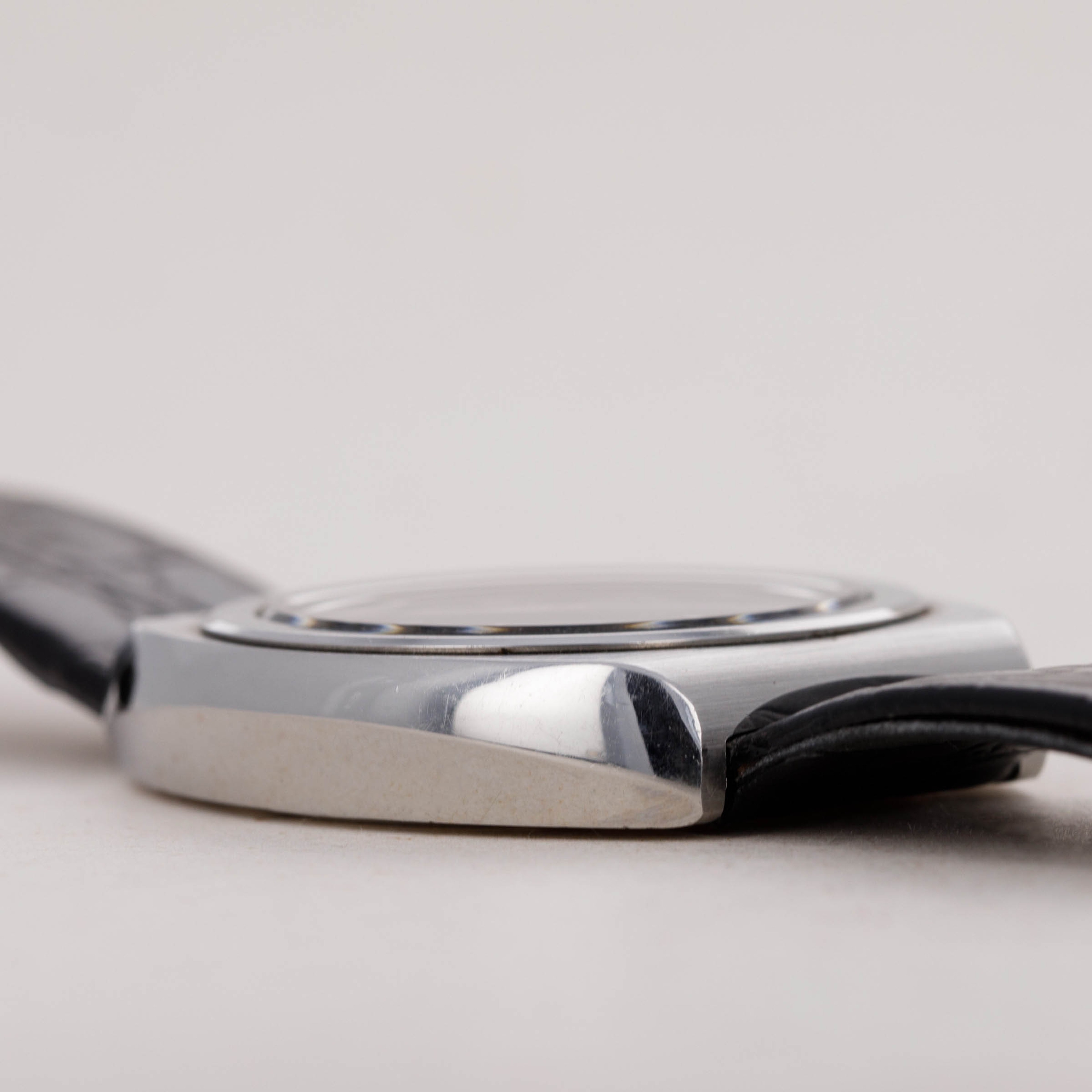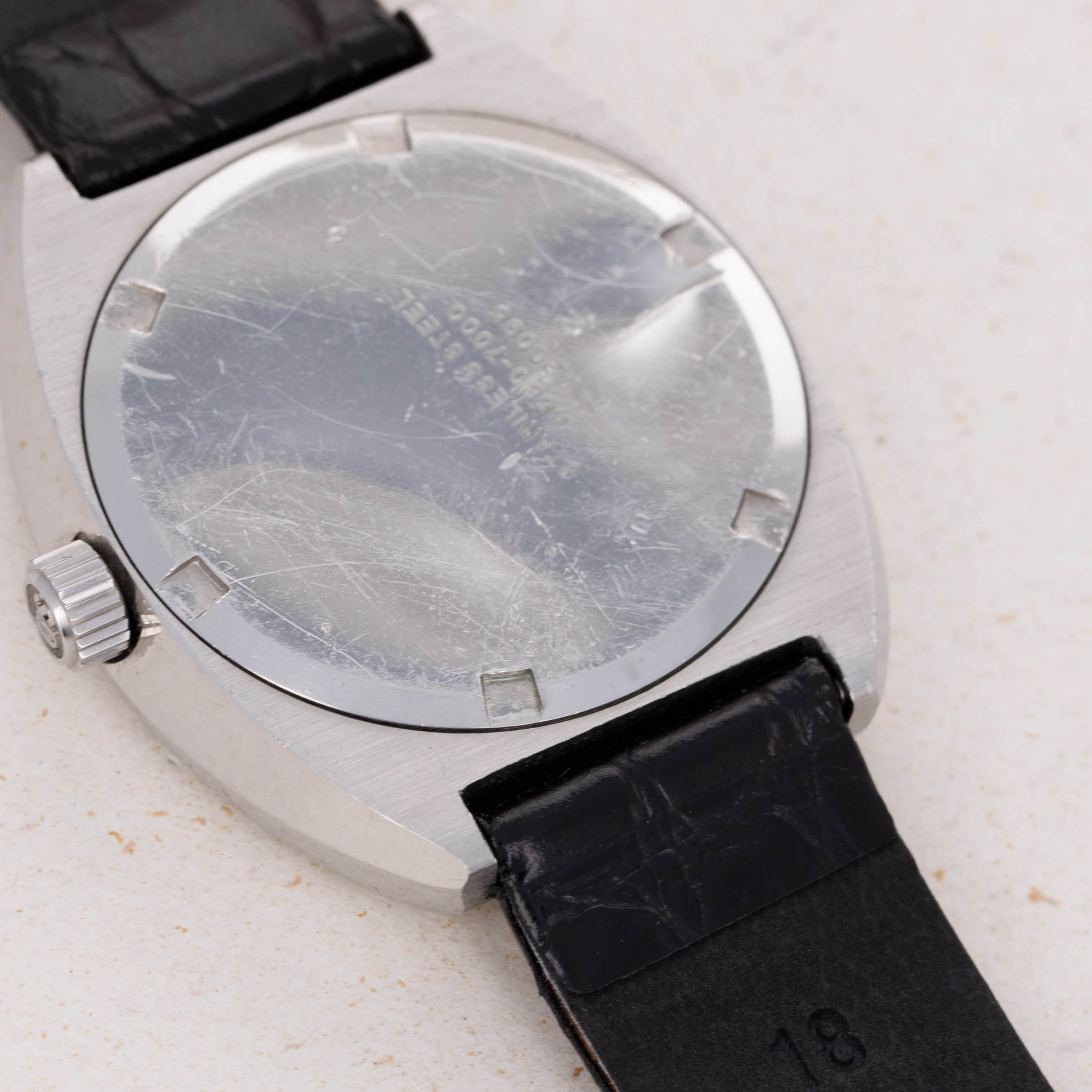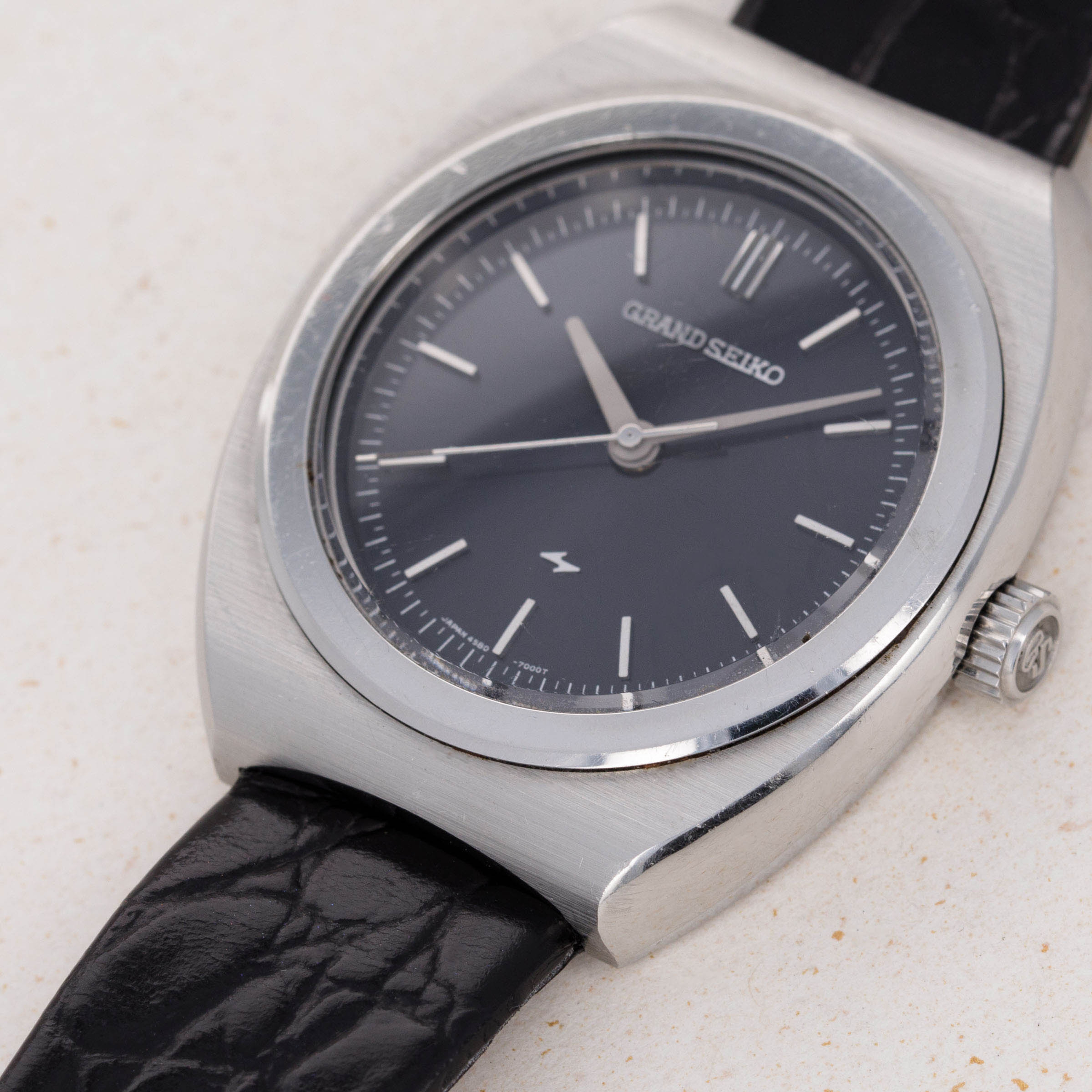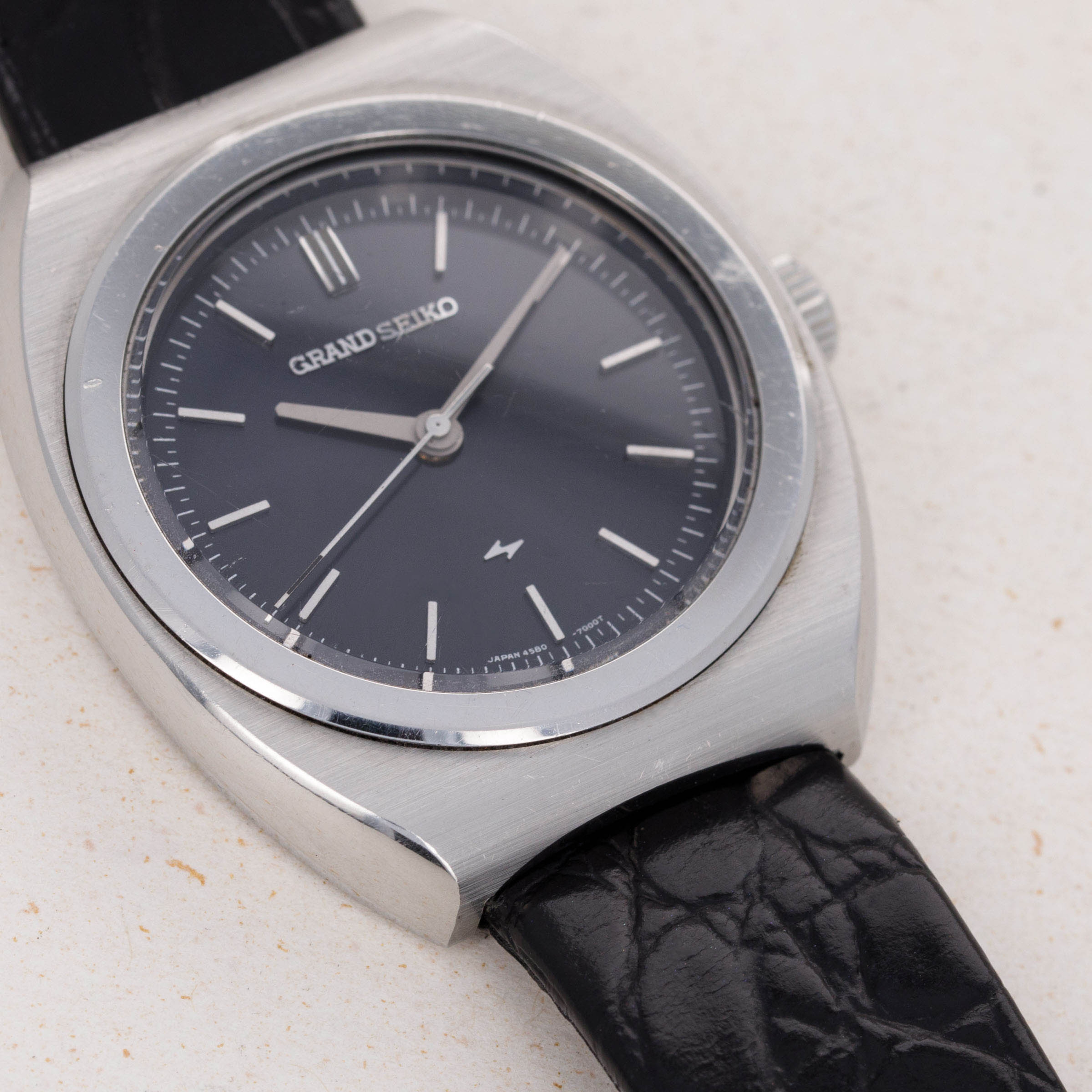 Besides its incredible movement, the ref. 4580-7000 that we have here is a true iconic on account of its unique design and it being one of the rarest and most sought-after models from the VFA collection. With its dark navy blue dial and 37mm geometric stainless steel case, the ref. 4580-7000 is masterpiece. Offered as one of the first VFA models and appearing only in Grand Seiko’s 1970 catalog and with fewer than 100 examples produced and just 12 of those accounted for, the ref. 4580-7000 is as rare as it gets for Seiko. Powered by the Daini Seikosha-produced hi-beat manual-wind cal. 4580A, the ref. 4580-7000 is as technically astute as it is aesthetically unique, with its tonneau-shaped case visually distinctive from every single one of its Grand Seiko siblings, with such a case shape never used since.