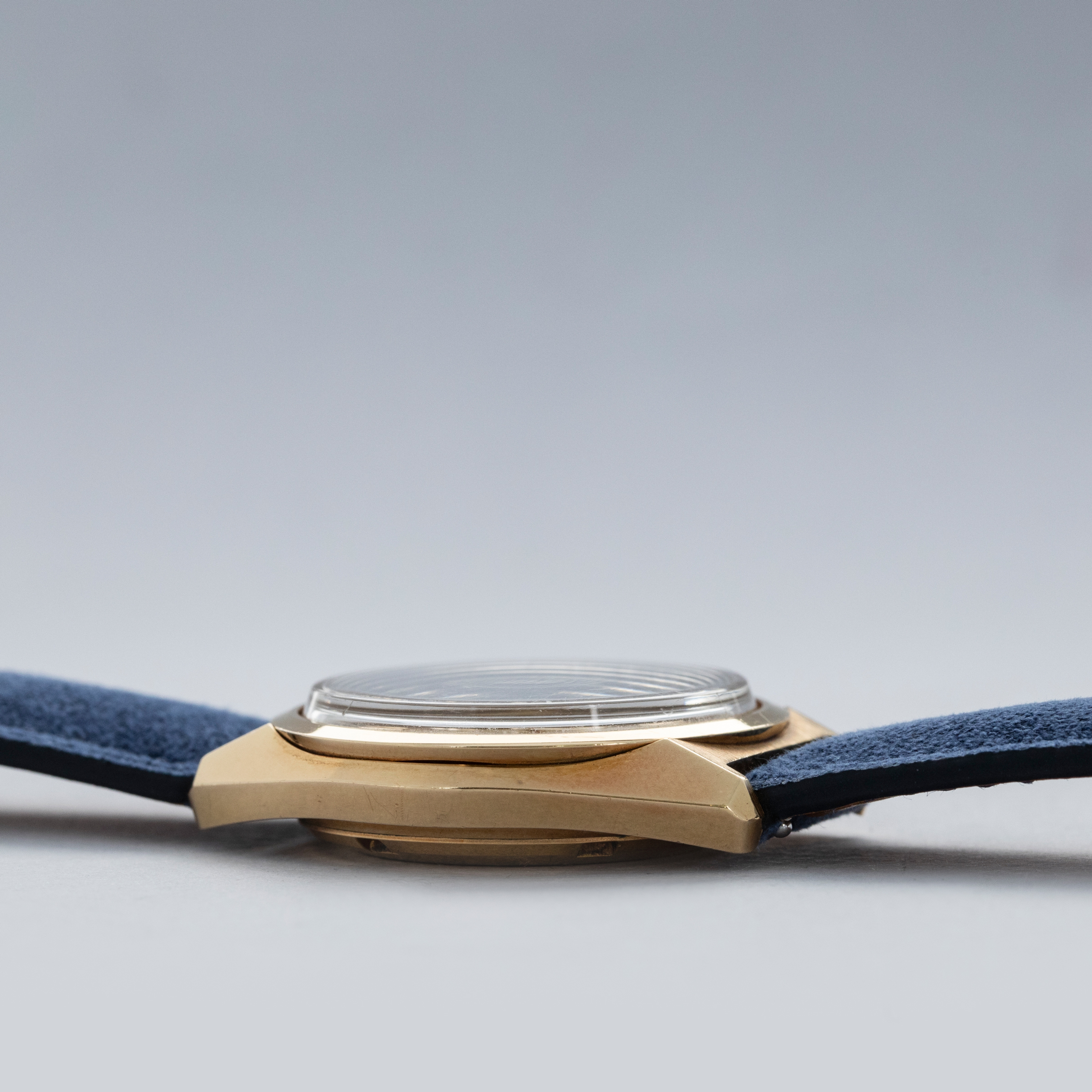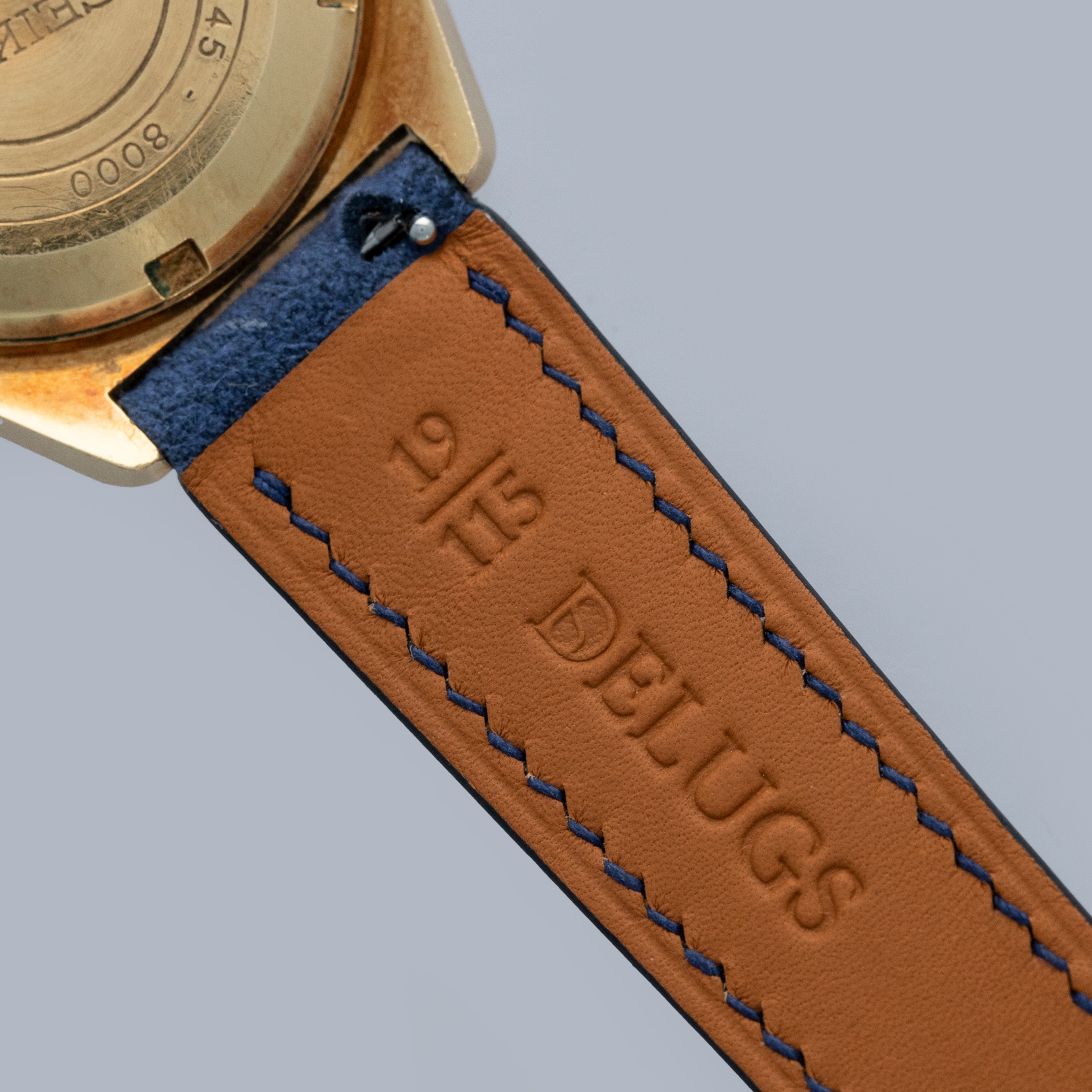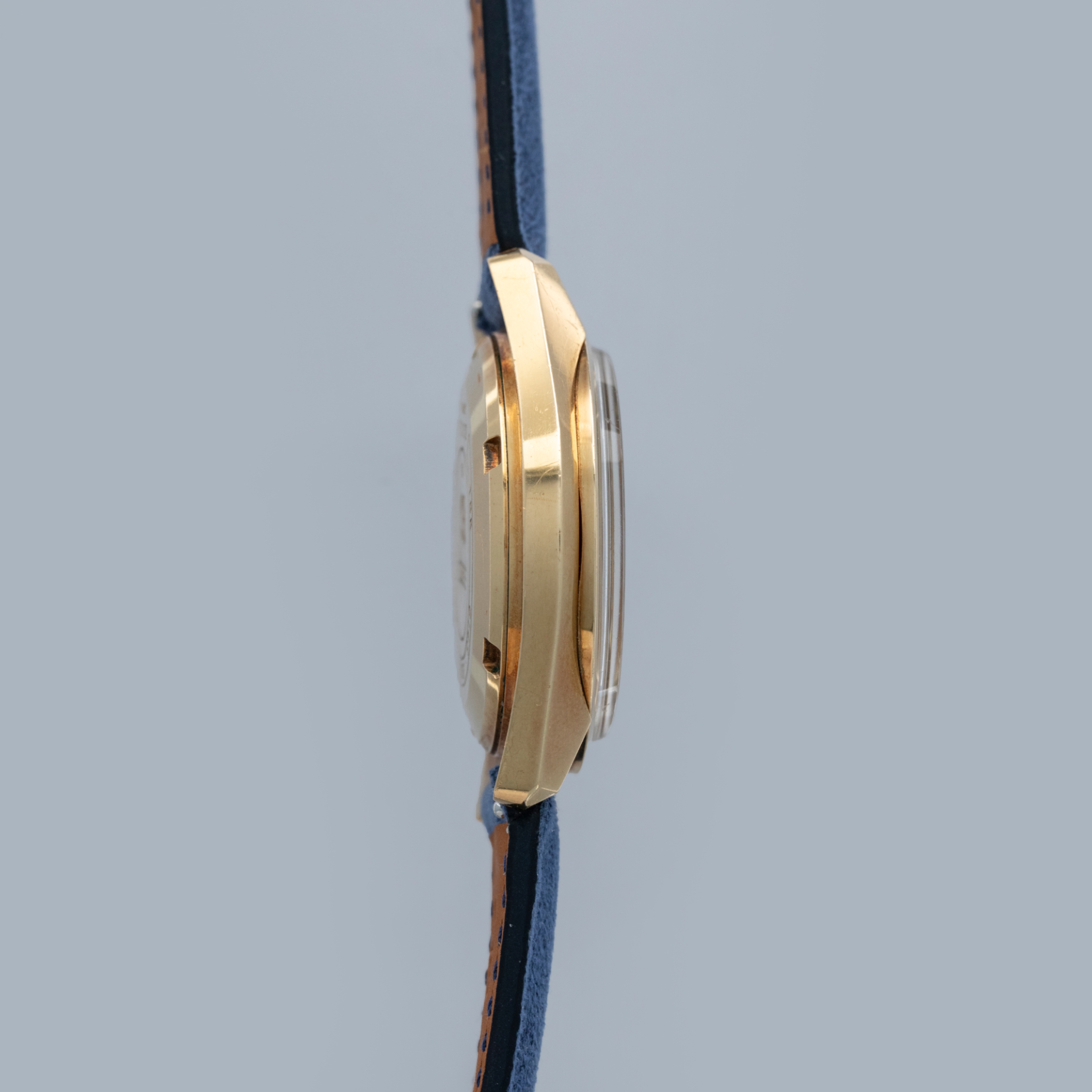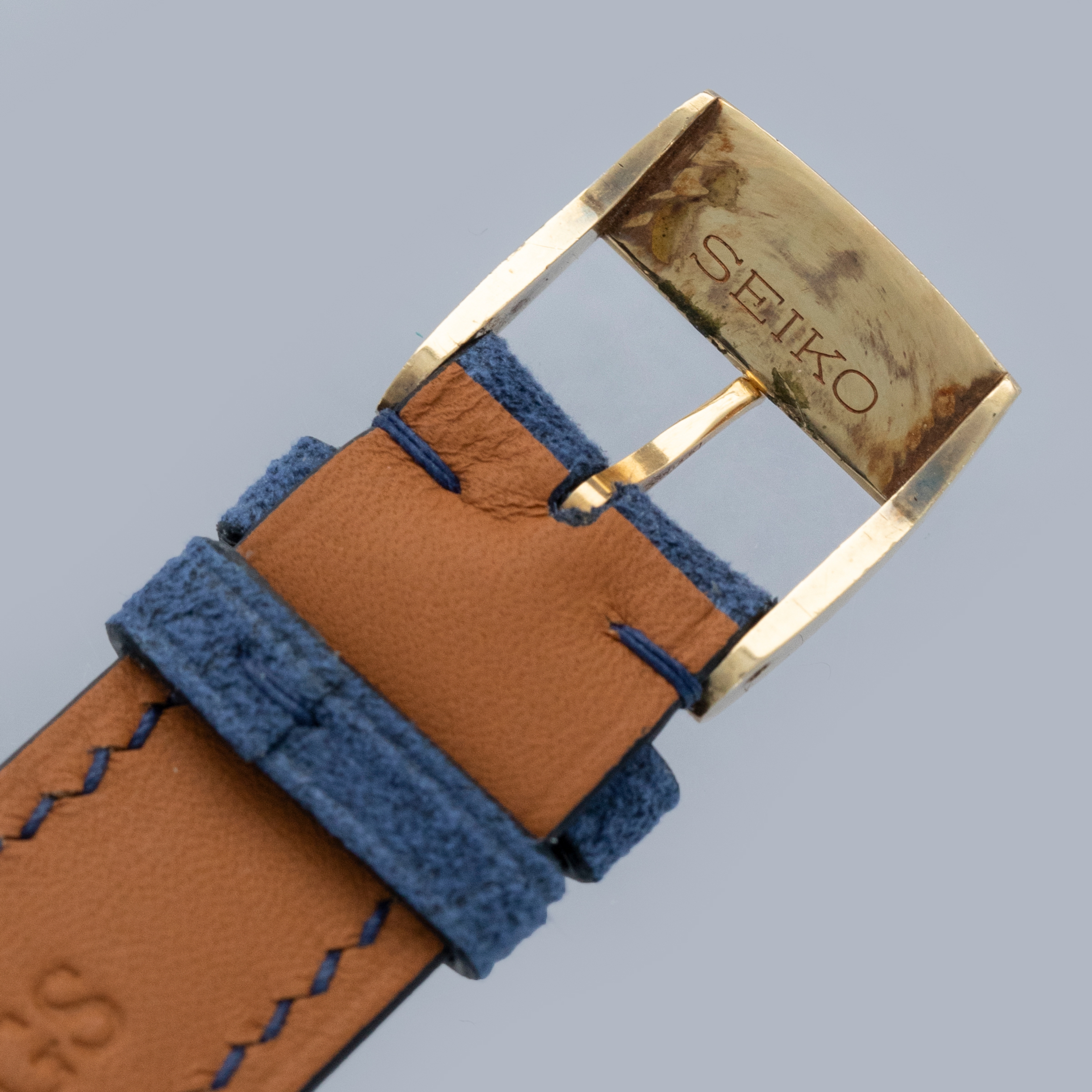 The watch is in overall excellent condition. The yellow gold case has well-defined lines, with some light scratches and marks as expected of a watch of this vintage. The case back has well-defined engravings. The no-lume dial is in excellent condition, with only a couple of very minor marks. The hands are clean, with just a small spot on the seconds hand. There are a couple of scuffs and a mark on the crystal. The watch is fitted with a blue leather strap with a vintage Grand Seiko pin buckle in excellent condition. Comes with inner and outer boxes and guarantee booklet.