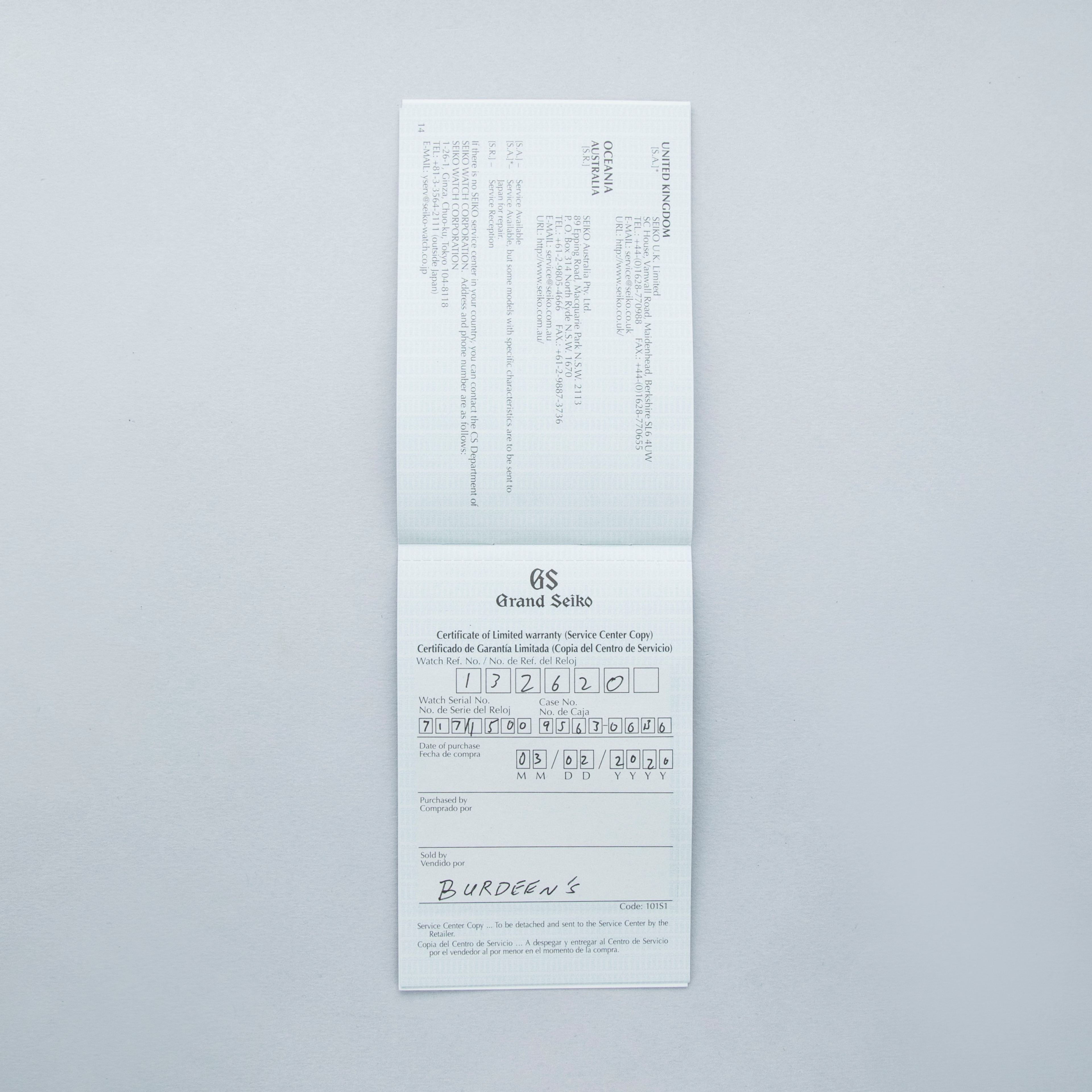 Watch, box, and papers