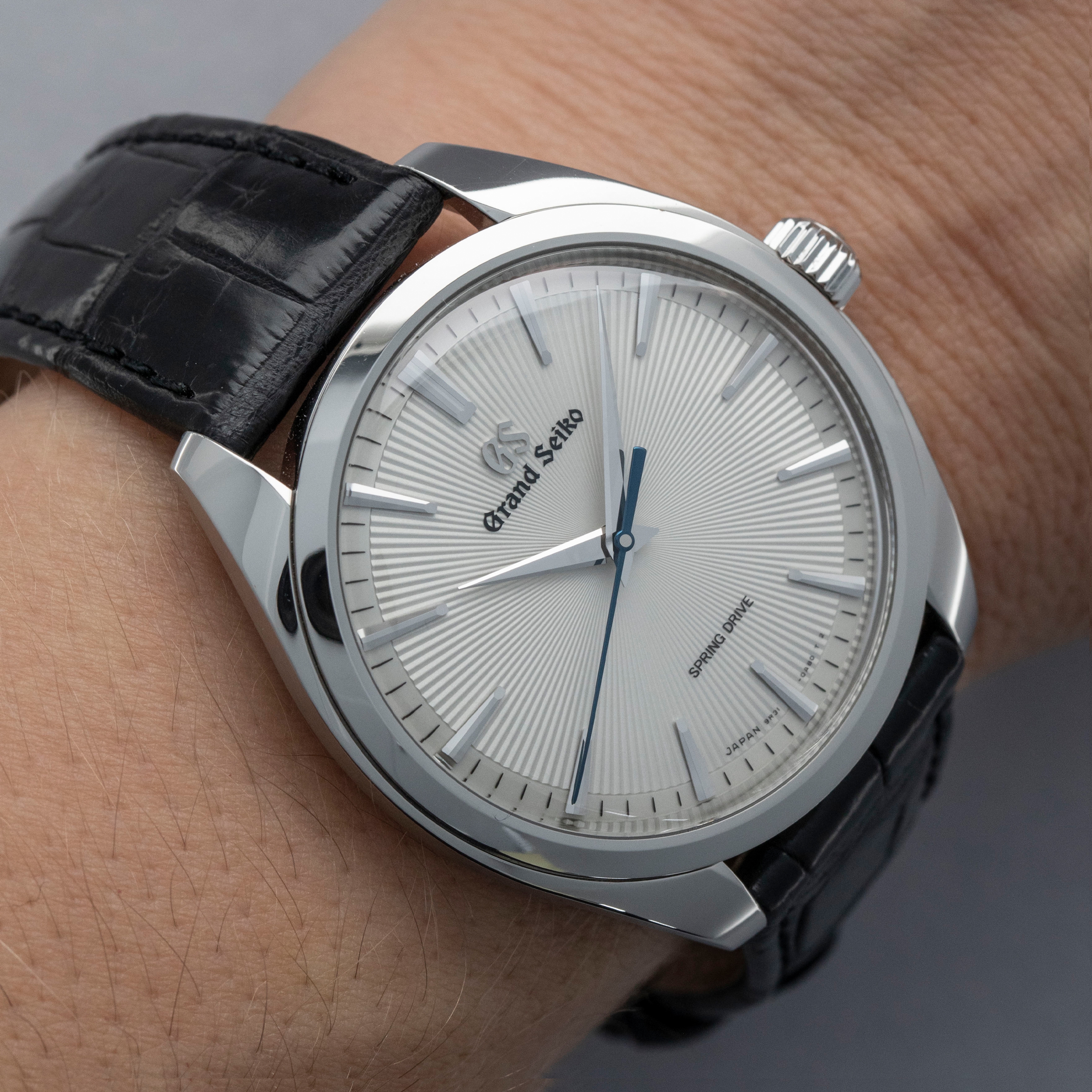 Released in 2019 as part of the Grand Seiko Elegance Collection that celebrated the Spring Drive movement’s 20th anniversary, the SBGY003 is one of the iconic Japanese watchmaker’s finest hand-wound time-only Spring Drive timepieces. Powered by the impeccably finished manual-wind Spring Drive cal. 9R31 which features a power reserve indicator on its baseplate, the SBGY003 is a relative rarity within Grand Seiko’s offerings as the brand normally focuses on automatic Spring Drive movements. This decision allows the SGBY003’s 10.2mm tall 38.5mm stainless steel case to wear with a relative elegance and dressiness that Grand Seiko’s typical offerings do not possess. Featuring a stunning silver dial with an engraved sunburst pattern, incredibly well-executed dauphine hands and applied indices, the SGBY003 showcases Grand Seiko’s impressive level of craftsmanship, which is further revealed through the Zaratsu polishing that adorns the entirety of its stainless steel case. An elegant piece on the wrist that beautifully balances understated elegance and an intriguing design language with second-to-none Japanese horological engineering, the SBGY003 is a timepiece that deserves the Grand Seiko name printed on its display.