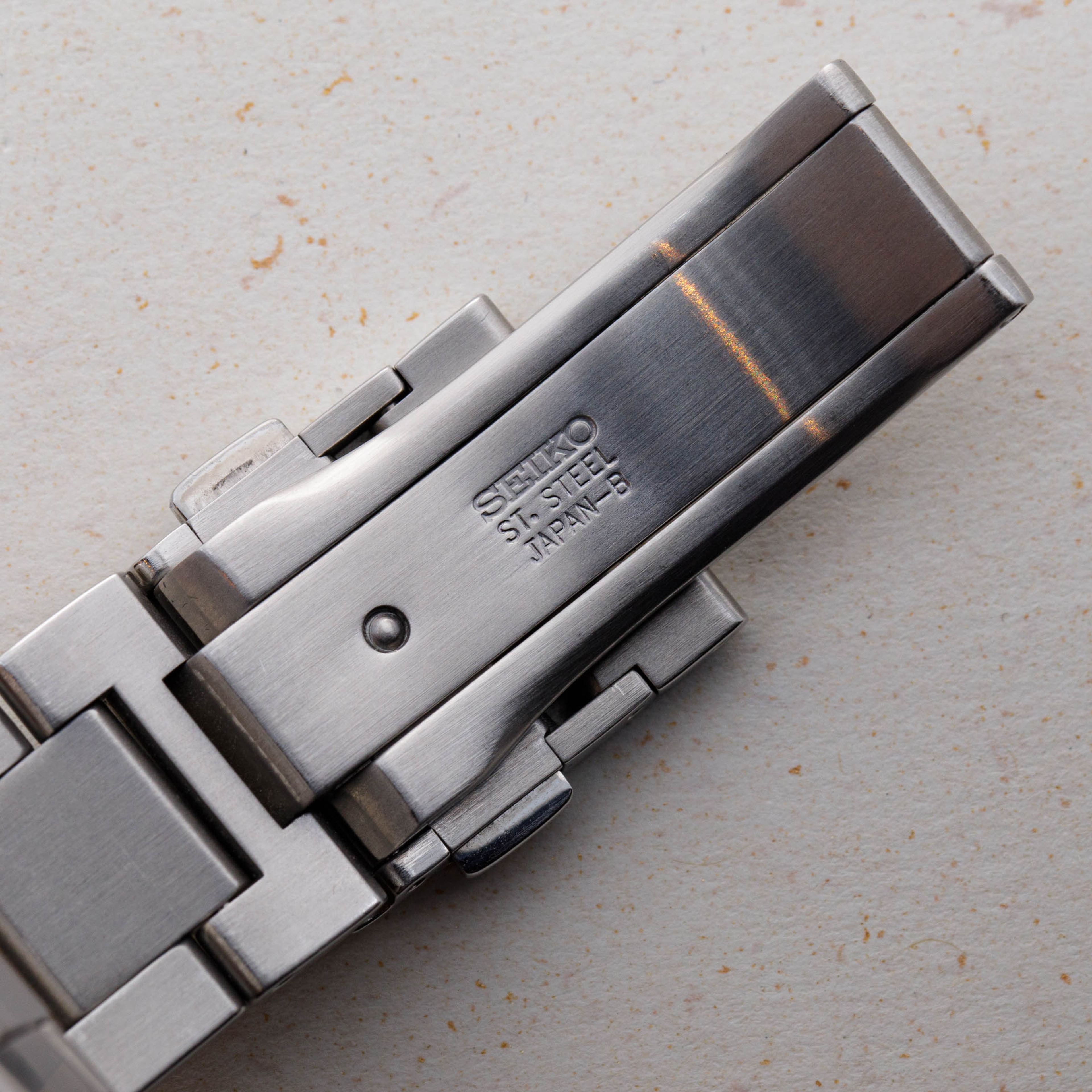Watch is in excellent overall condition. There is wear visible on the lugs with a few surface marks visible in various places including the bezel, lugs, bracelet and caseback. There are three links that were removed on the bracelet that are included with the box.