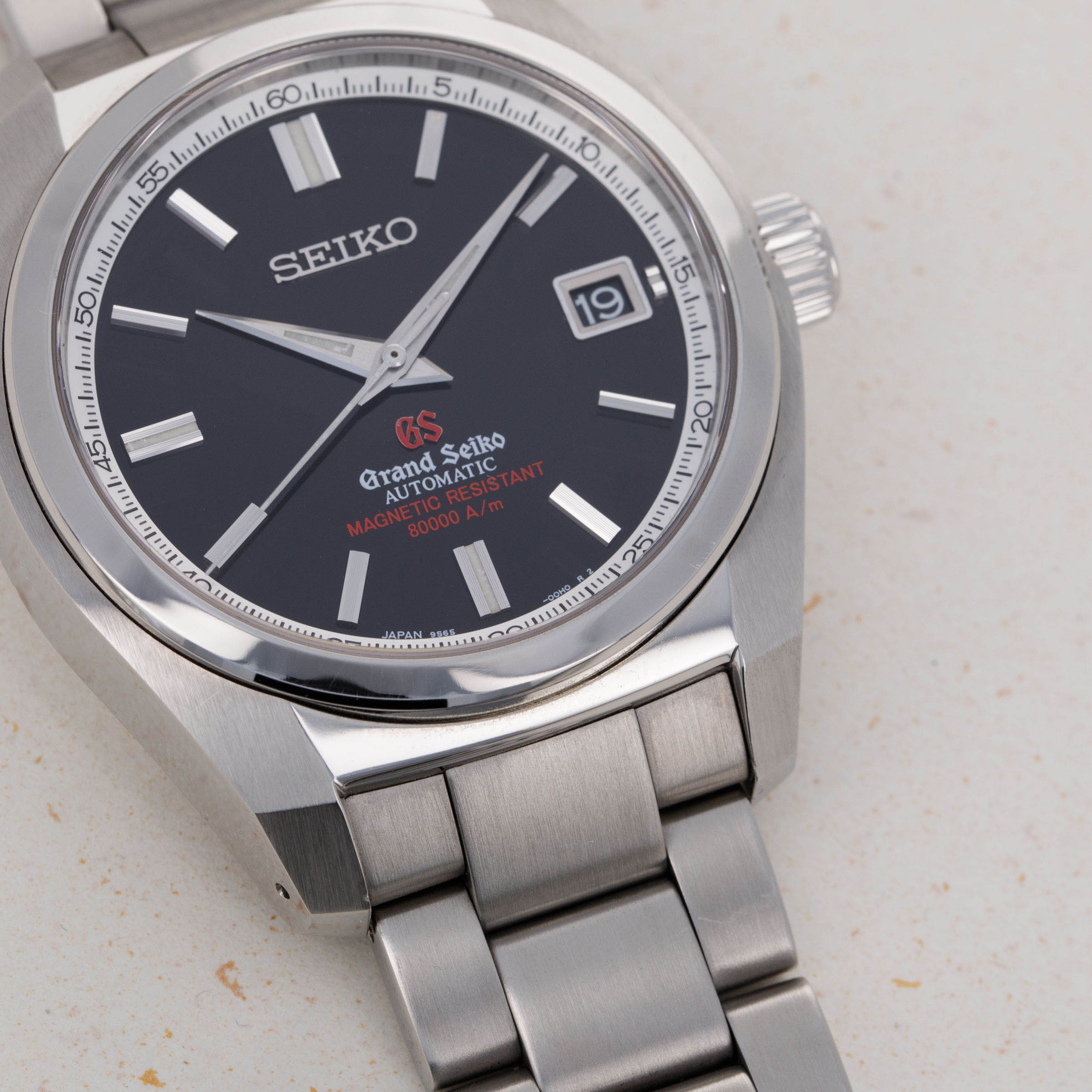 Launched in 2012 and powered by the automatic cal. 9S65 movement with a 3-day power reserve, the Grand Seiko SBGR079 infuses Grand Seiko’s appealing modern aesthetic and robust construction style with their refined sense of style through their unrivalled finishing at their price point. Capable on the inside thanks to its 9S61 movement, the SBGR079 boasts a universally wearable 39mm stainless steel case with Grand Seiko’s signature Zaratsu polishing on its midcase and bezel and a stunningly well-finished black dial with sharp dauphine hands. Introduced as a US Boutique-only edition, the SBGR079 is part of Grand Seiko’s anti-magnetic collection that boasts an incredibly impressive magnetic resistance of 80,000 A/m, as shown on its dial in red lettering, which is around 1000 Gauss. With its elegant proportions ensuring that Grand Seiko’s intricate craftsmanship is easily enjoyable, the SBGR079 shines a light on the Japanese watchmaker’s attentive eye for detail and their ability to blend their classy heritage with the modern taste of the contemporary watch collector who wants something elegant, wearable and able to handle daily wear without having to be babied.