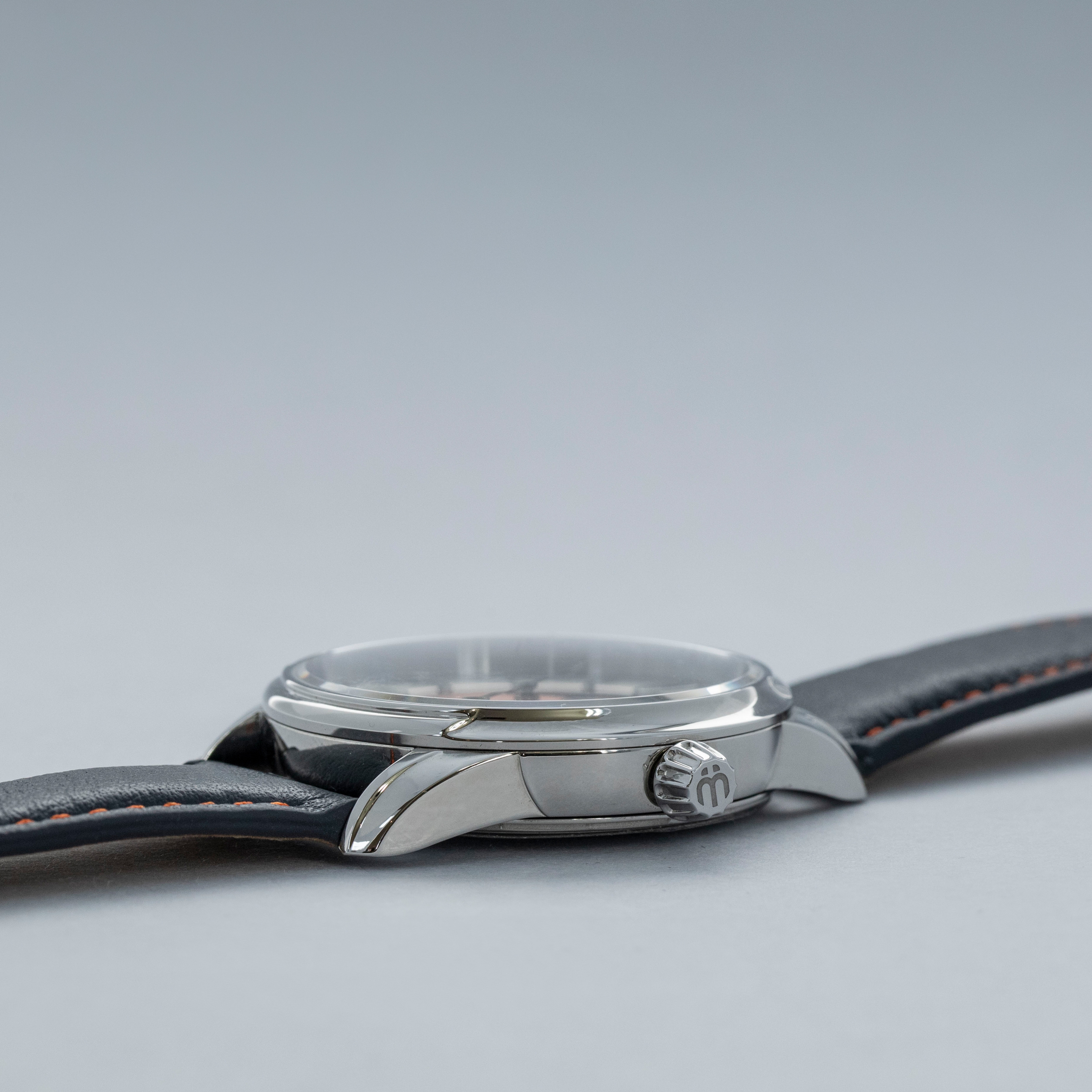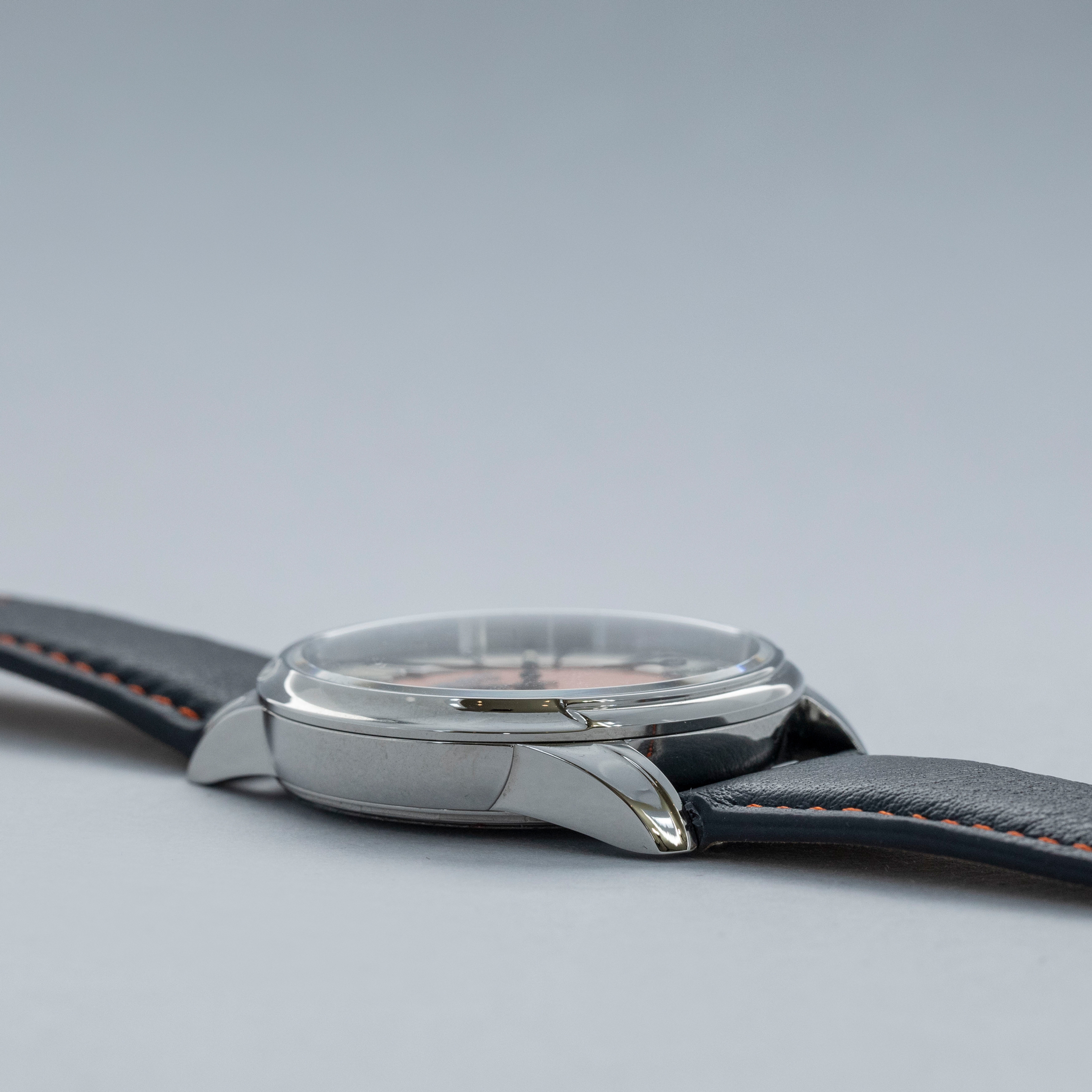 Boasting a stunning salmon dial with a tremblage finish for its central portion that is then surrounded by a brushed rhodium-plated chapter ring and paired with bright blued hands, the Manueel One's dial is a wonderfully bright and vivid display of careful consideration.