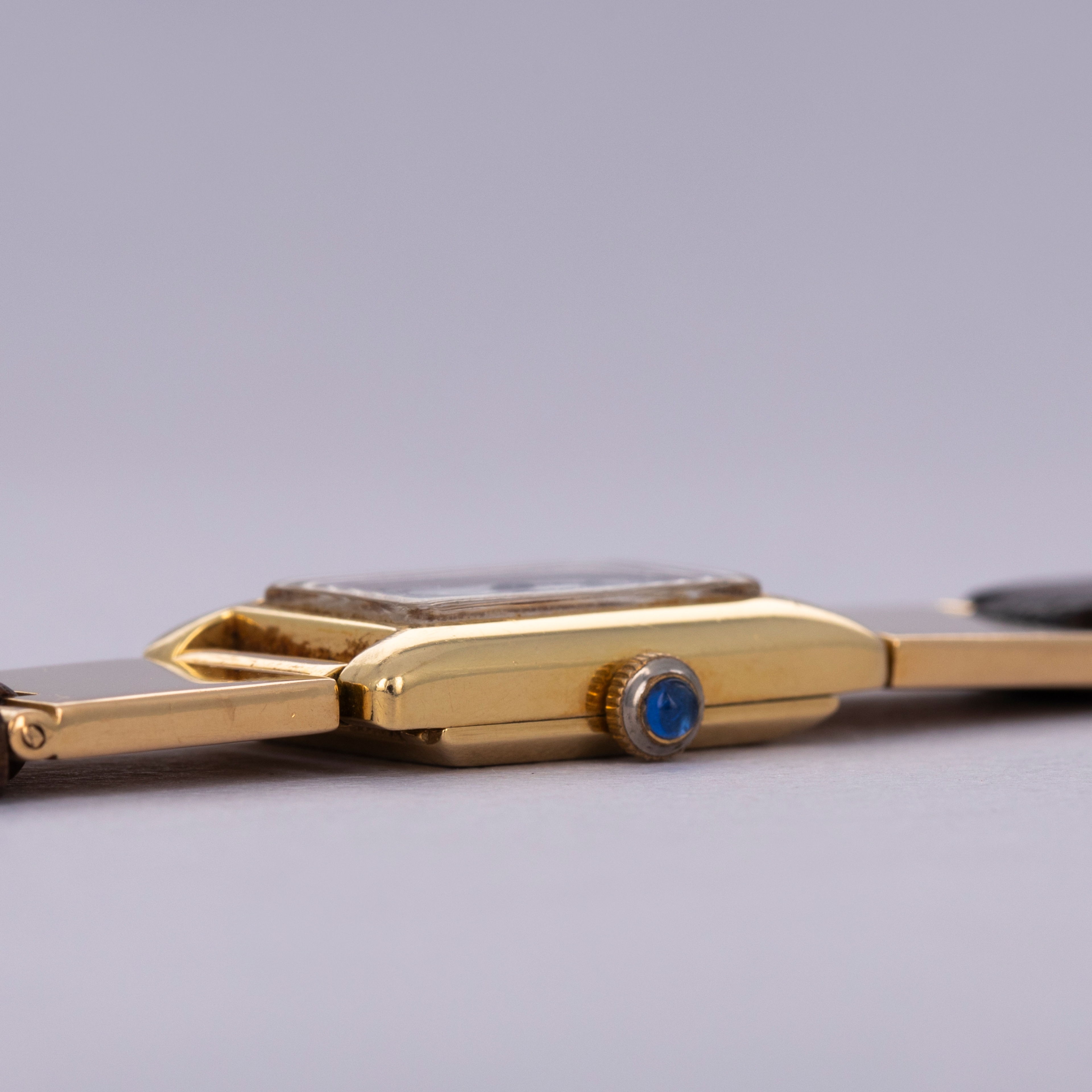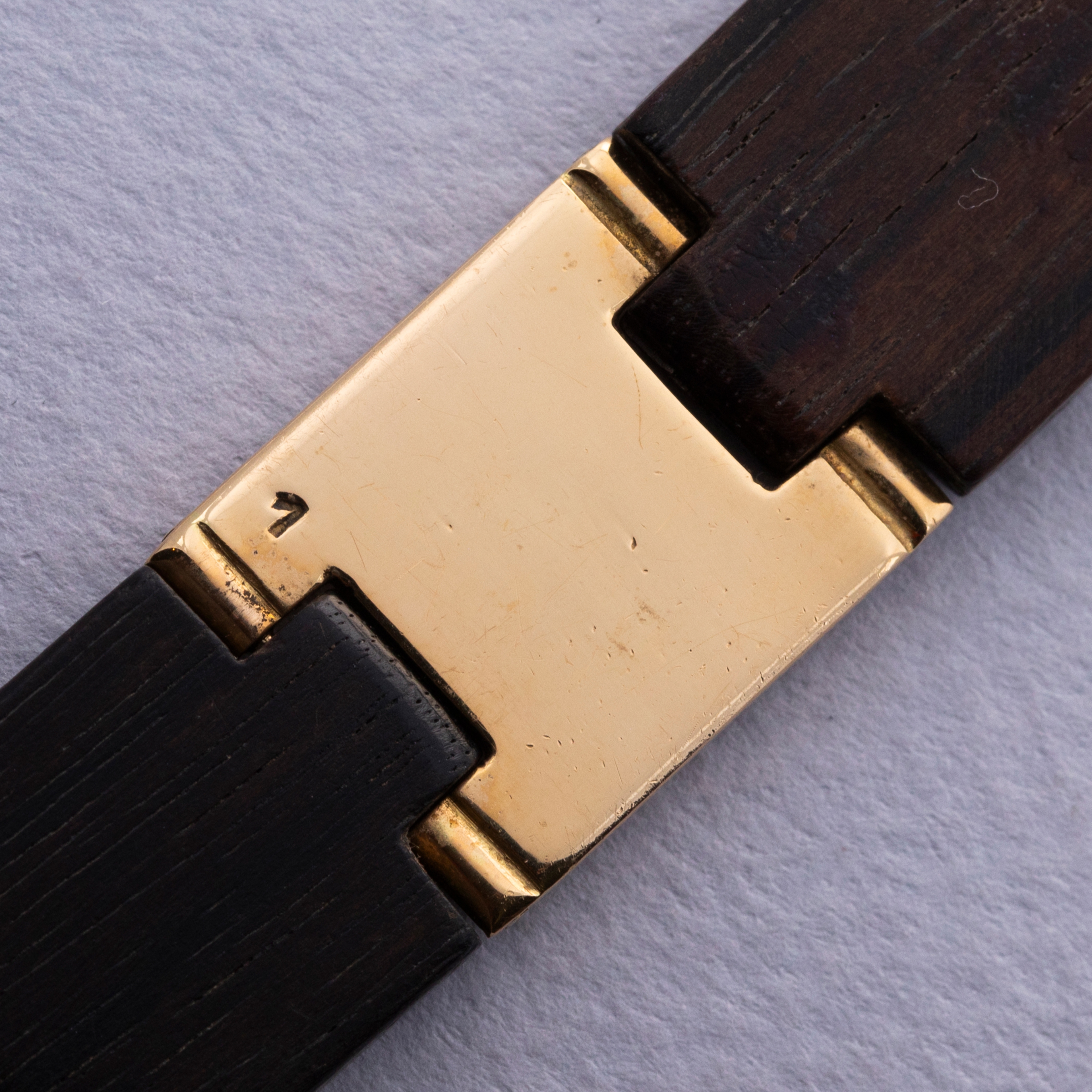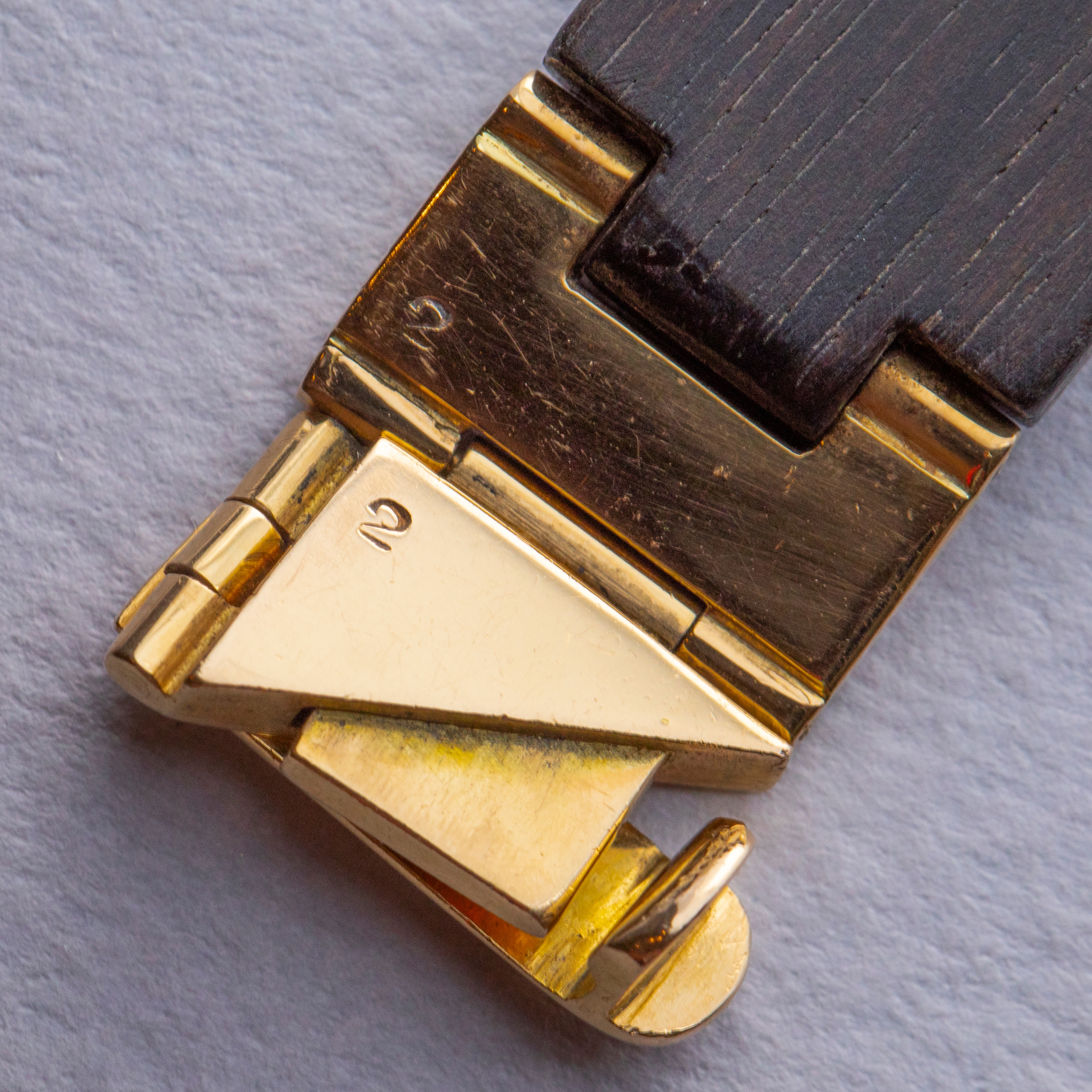 Founded in Paris in the 1930’s by Alexis Barthelay, Alexis’ eponymous brand first began by focusing on jewellery but quickly expanded into watchmaking, an arena in which the brand quickly developed a name for itself. Famed for combining unusual materials in their designs, Alexis Barthelay would become known for ultra-thin watches that featured coral, stone, wood and other quirky materials alongside more typical materials such as silver, gold, and steel. Offered here we have one such Alexis Barthelay watch that was commissioned by Gucci. Boasting an 18kt yellow gold and wood construction, this Gucci watch features a rectangular Tank-style design with a bracelet that sports alternating wood and 18kt yellow gold links. Powered by a manual-wind movement and boasting a classic white dial with Roman numerals, this timepiece combines the traditional with the exotic for a unique aesthetic that few brands would have ever been confident enough to attempt.