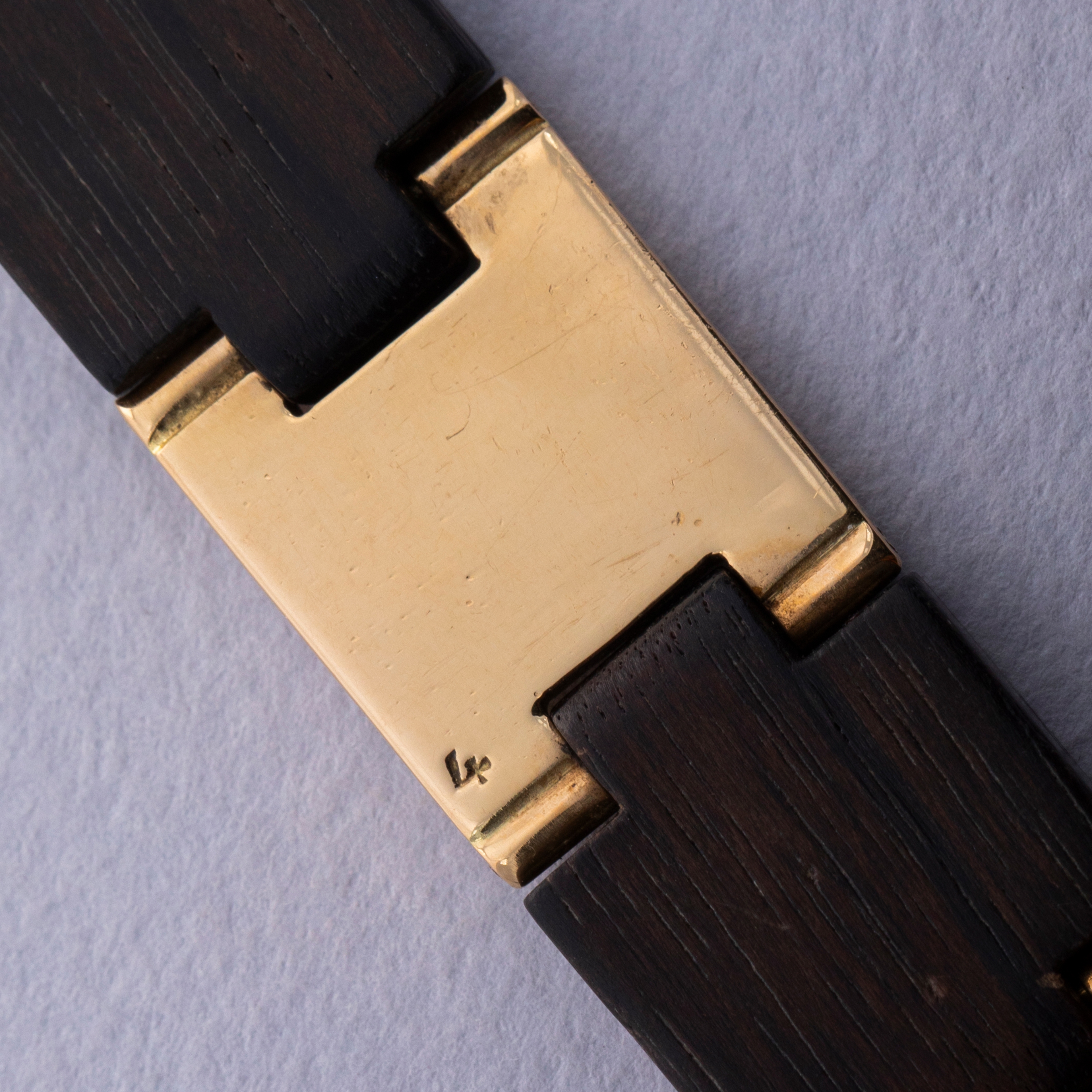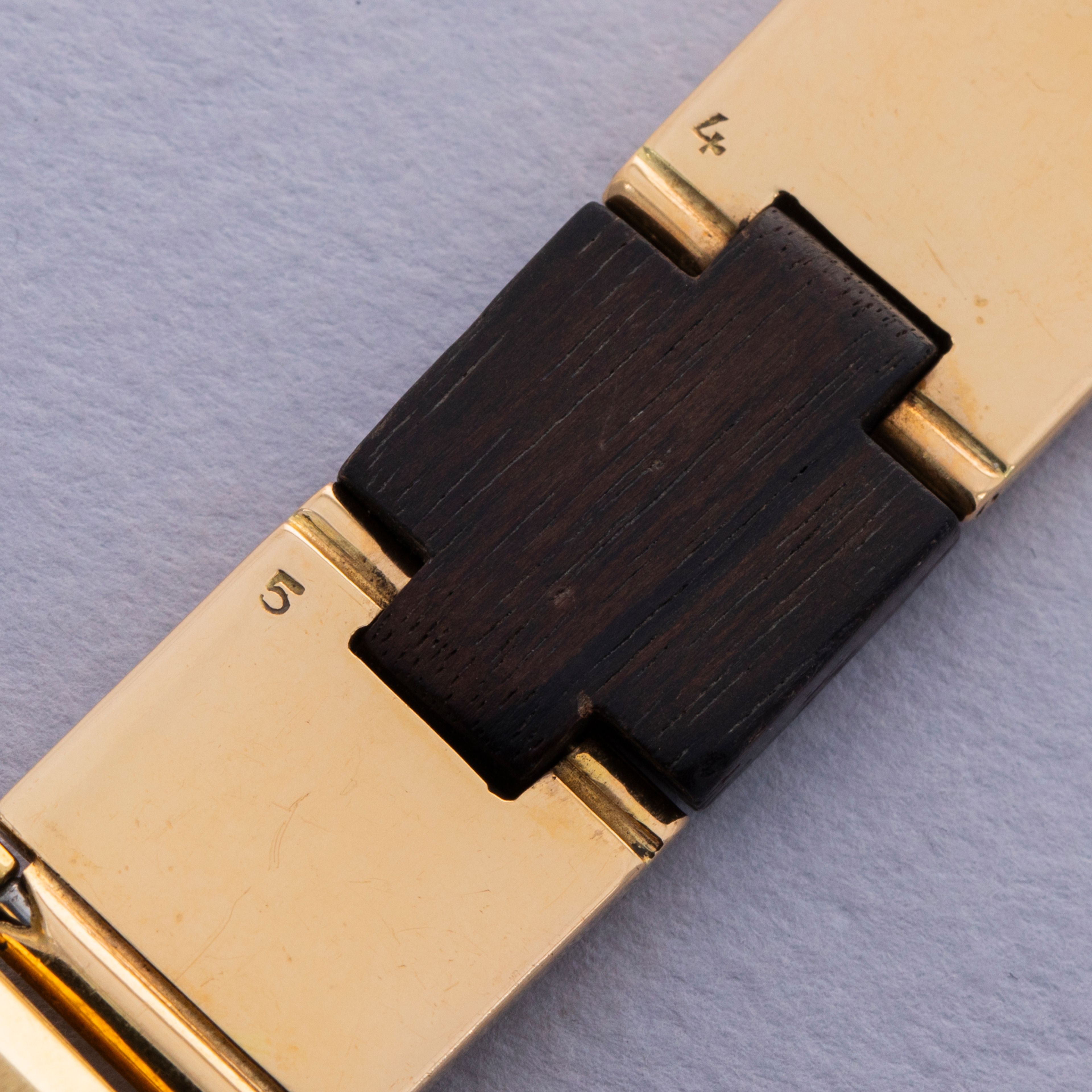 Aesthetically interesting thanks to its unusual wood and gold bracelet, this Gucci timepiece showcases the quirky design language that made Alexis Barthelay's timepieces so desirable.