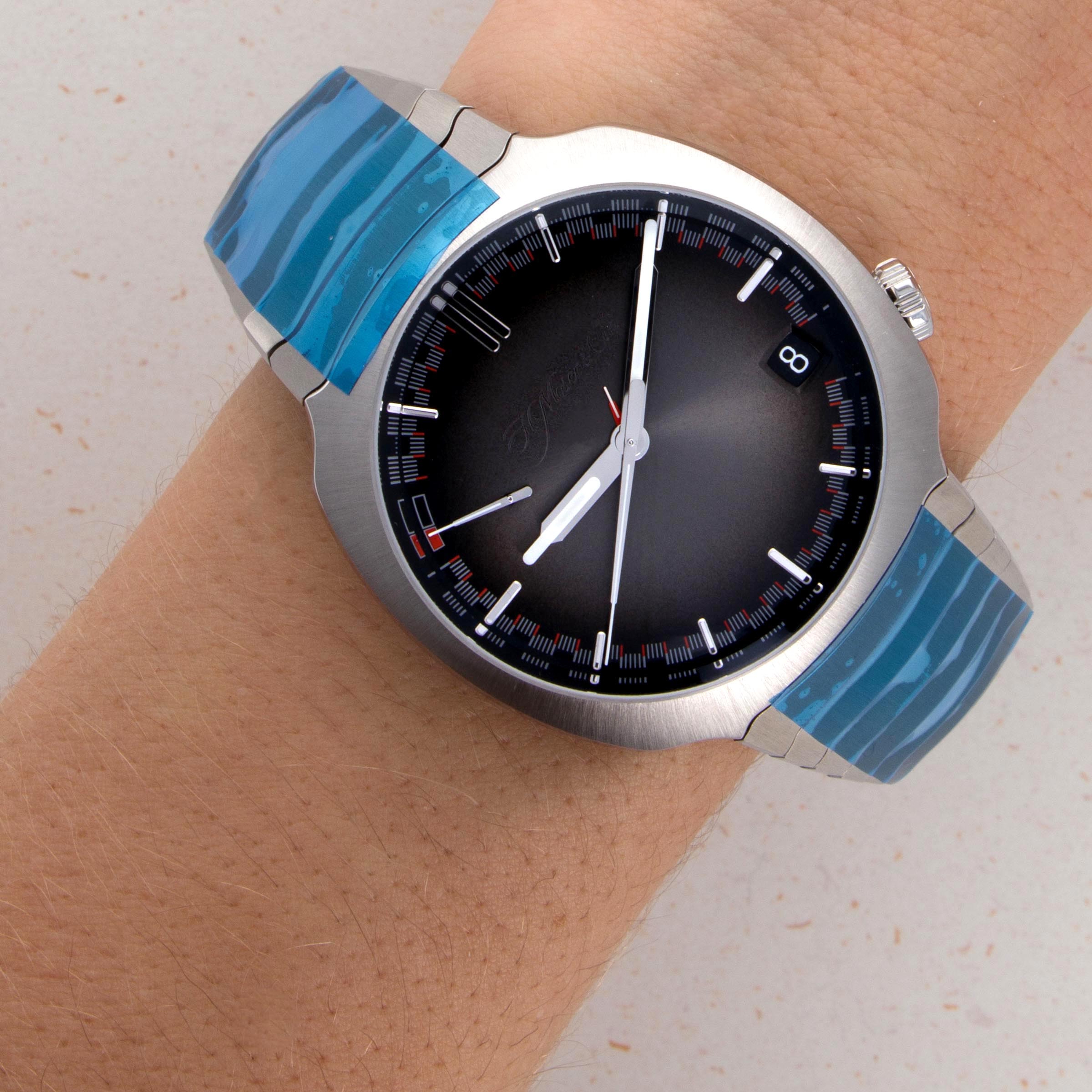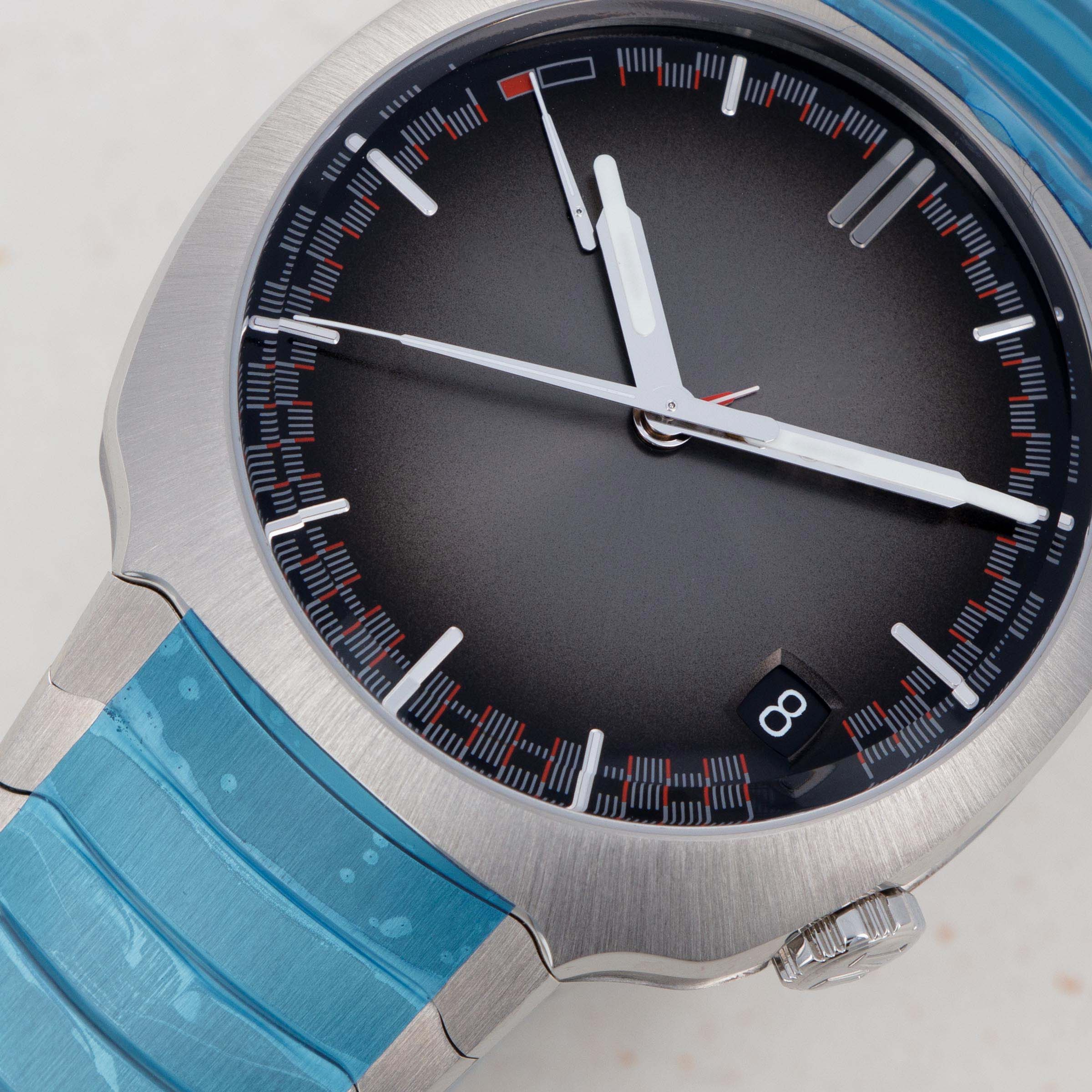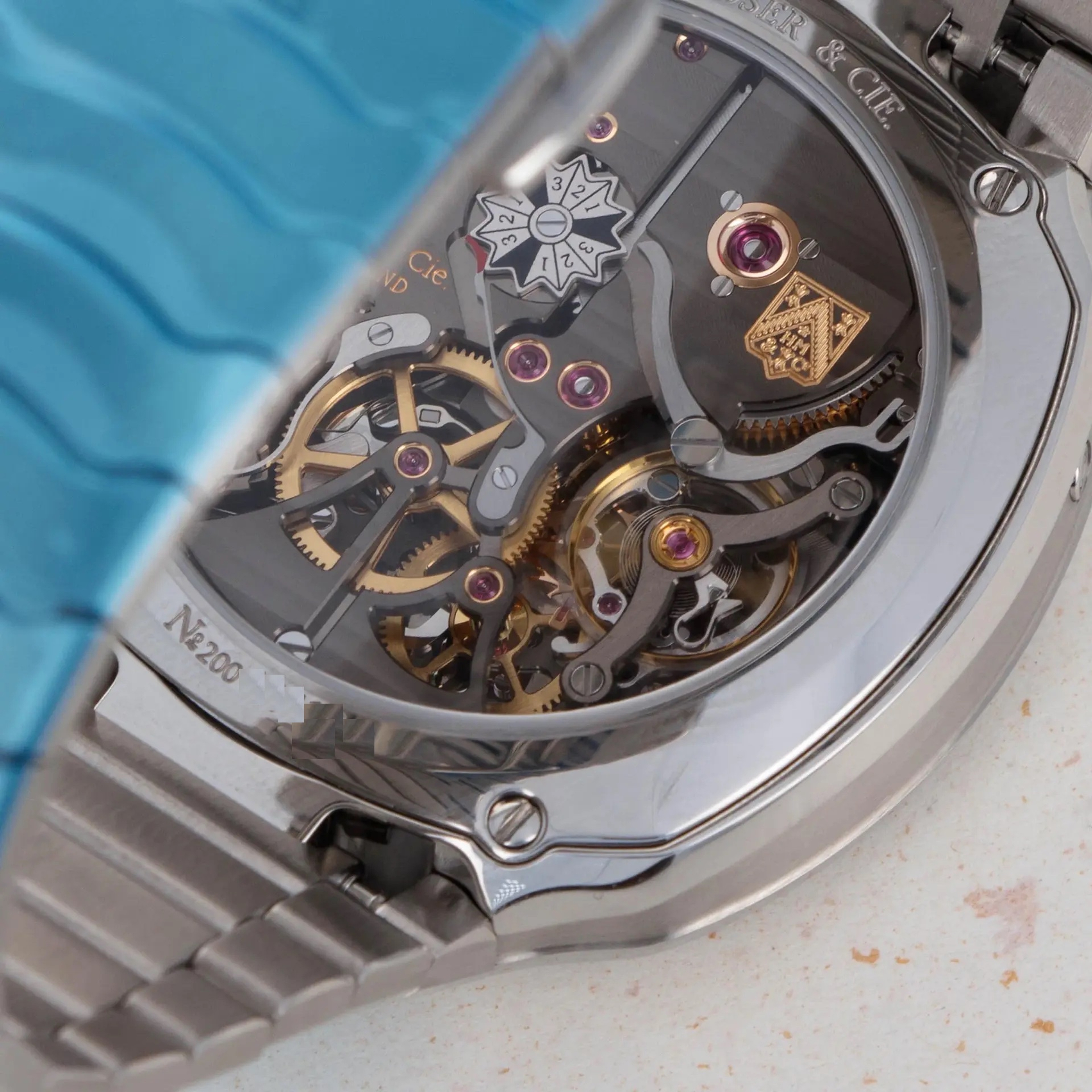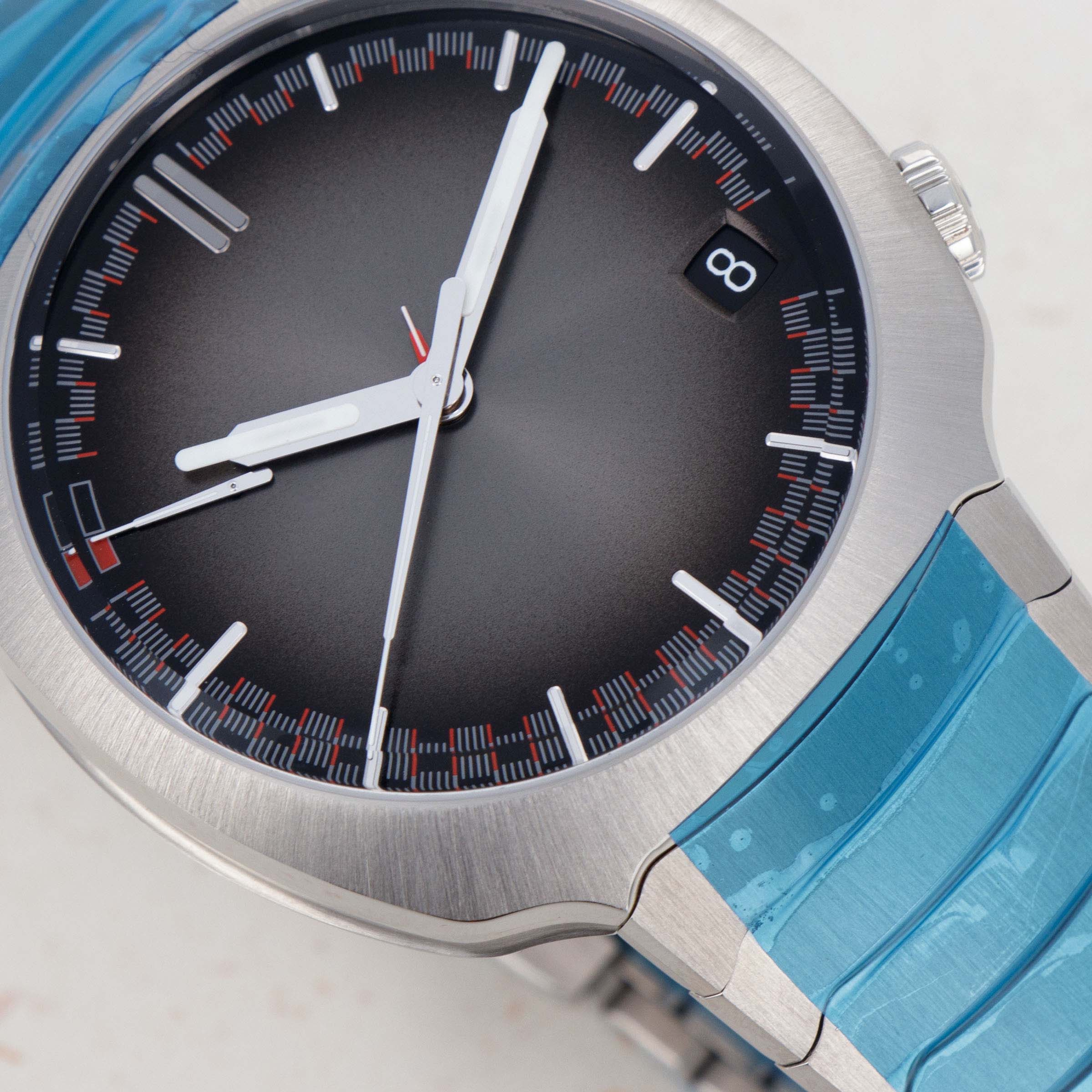 Launched in 2021 as a follow-up to Moser’s first every stainless steel integrated bracelet sports watch, the Streamliner Perpetual Calendar is a brilliantly-well executed piece of independent watchmaking. Utilizing the same design as the earlier Streamliner variants, the Perpetual Calendar model features a beautiful grey fume no-frills dial with ghost-like branding, a clever center-mounted month hand that points to the hours in lieu of the month (1 o'clock = January, 2 o'clock = February, and so on), and a power reserve indicator that is mirrored 180-degrees by an asymmetrically placed date aperture. A perpetual calendar at heart, the manually-wound Streamliner also features a leap year indicator mounted onto its anthracite-clad movement, the HMC 812, and comes with an incredibly impressive 120 meters of water resistance. With the abundance of lume on its hands, and impressively robust 42.3mm stainless steel construction, the Streamliner Perpetual Calendar is easily one of the most capable perpetual calendar models on the market and stands as a wonderful tribute to the incredible strides indie watchmakers have made in the industry in recent years.