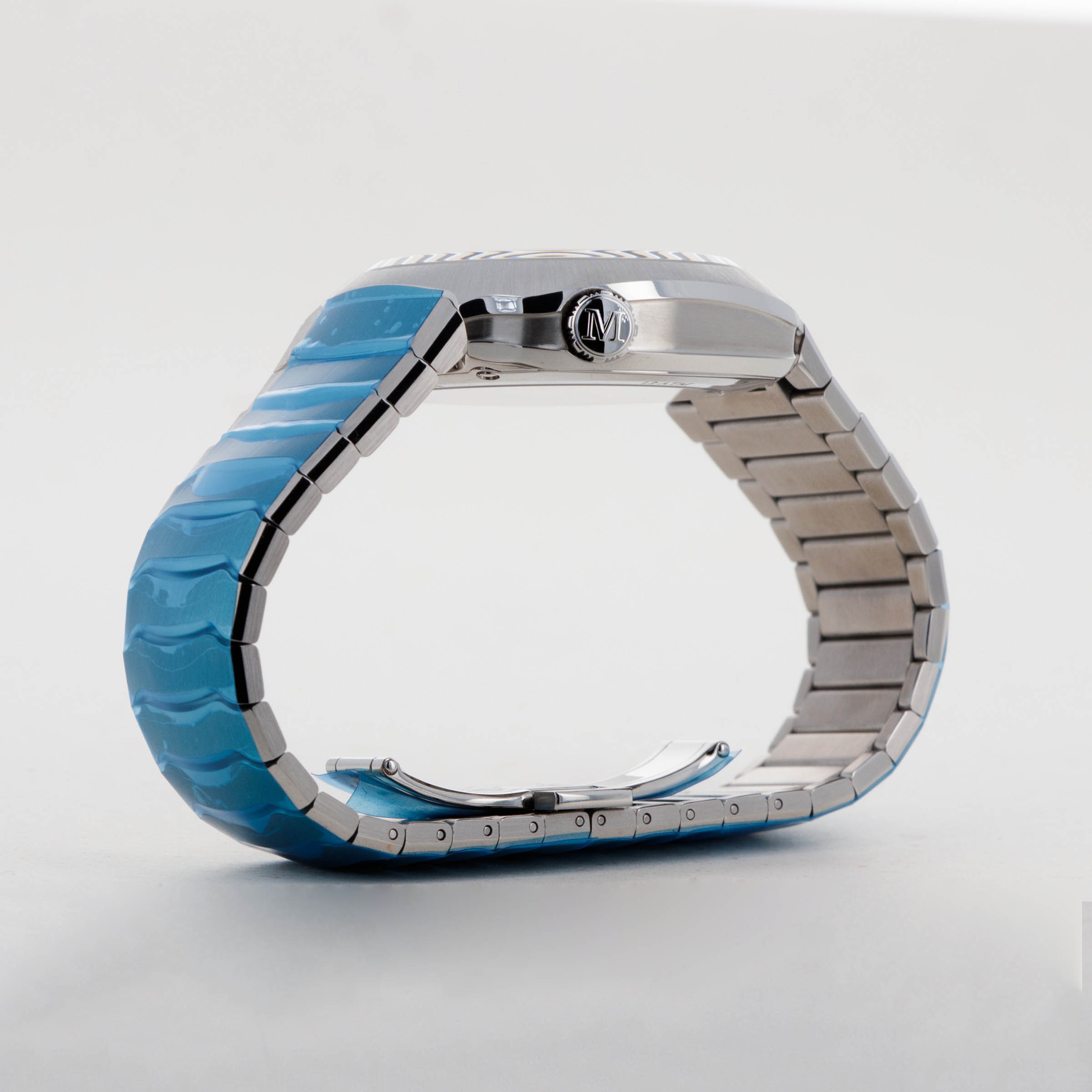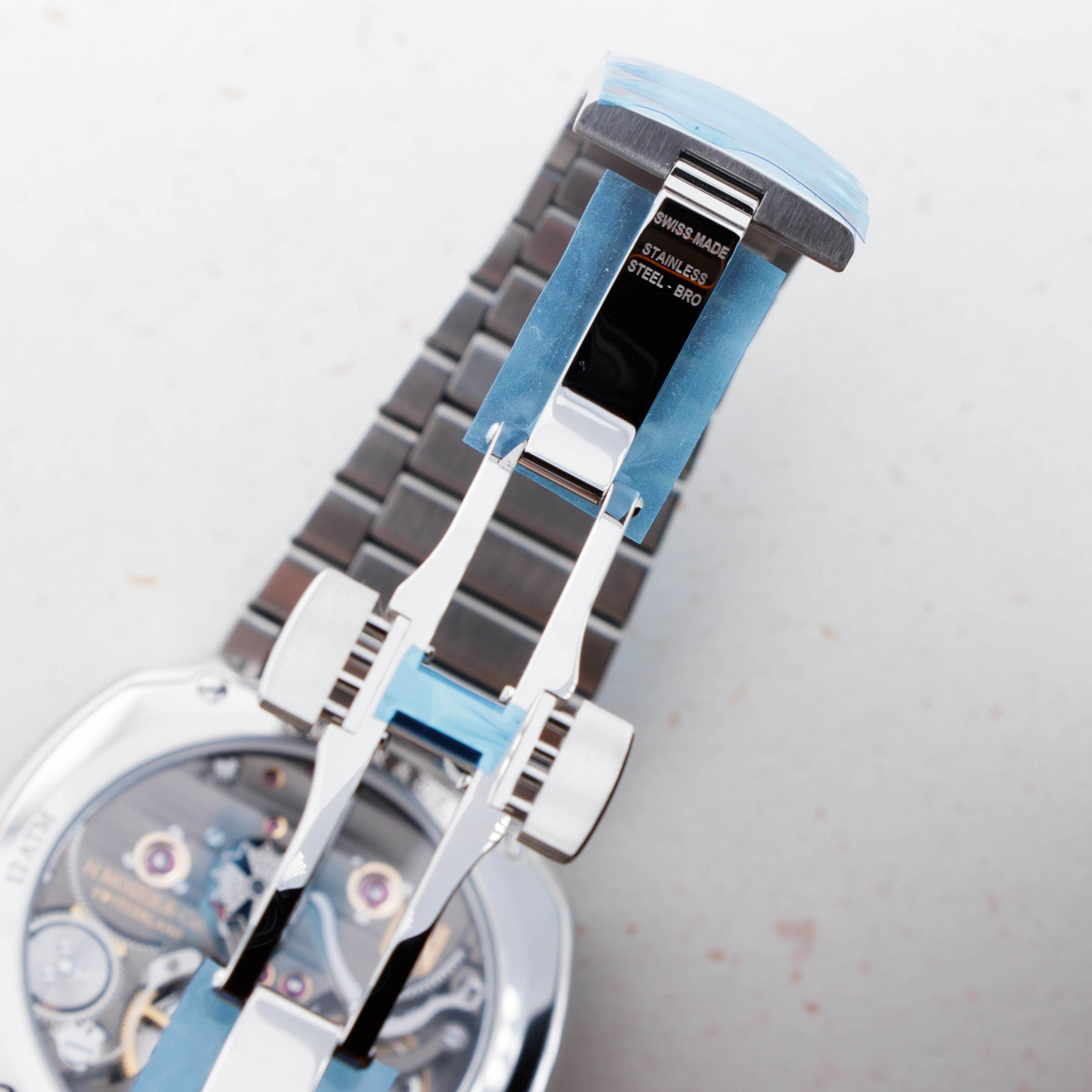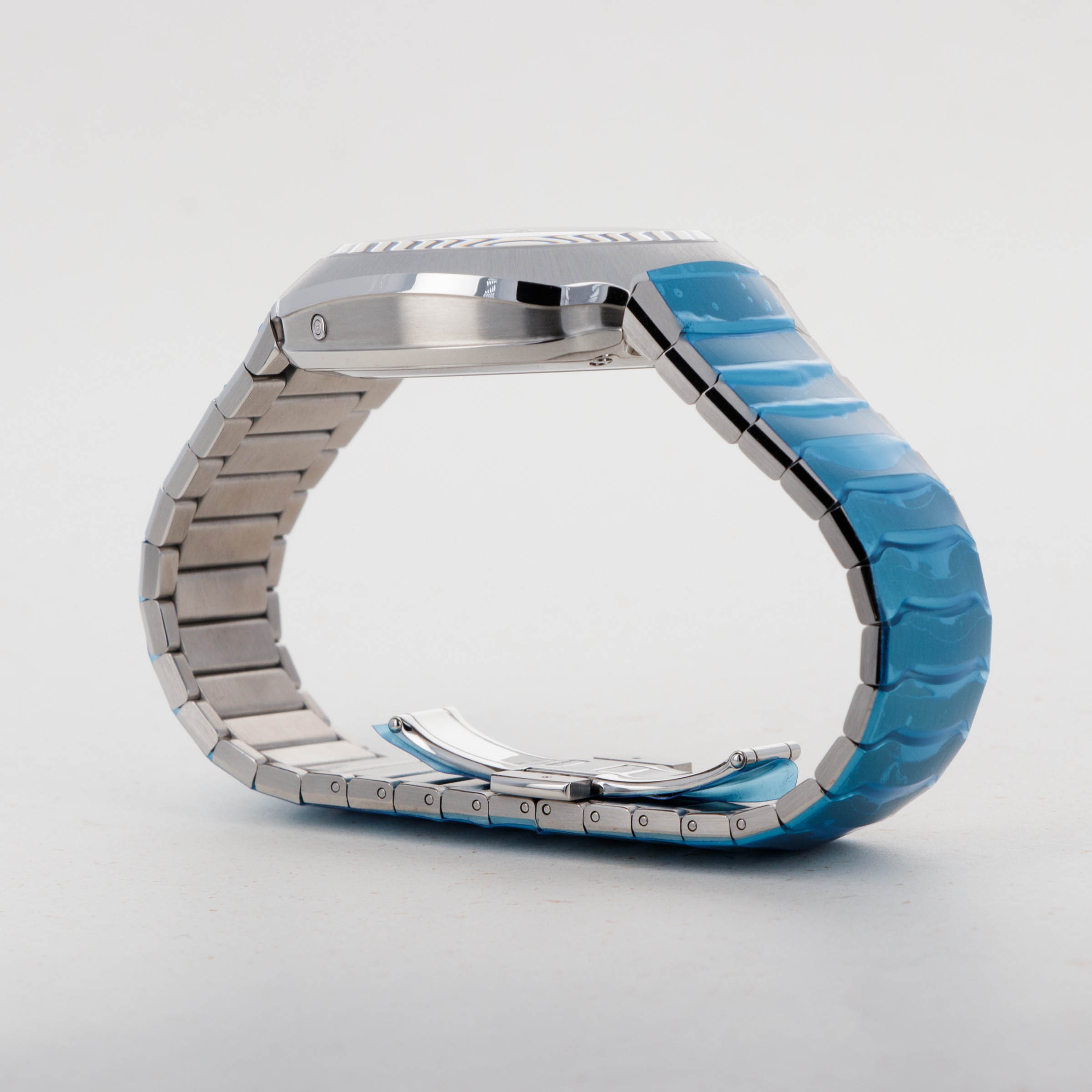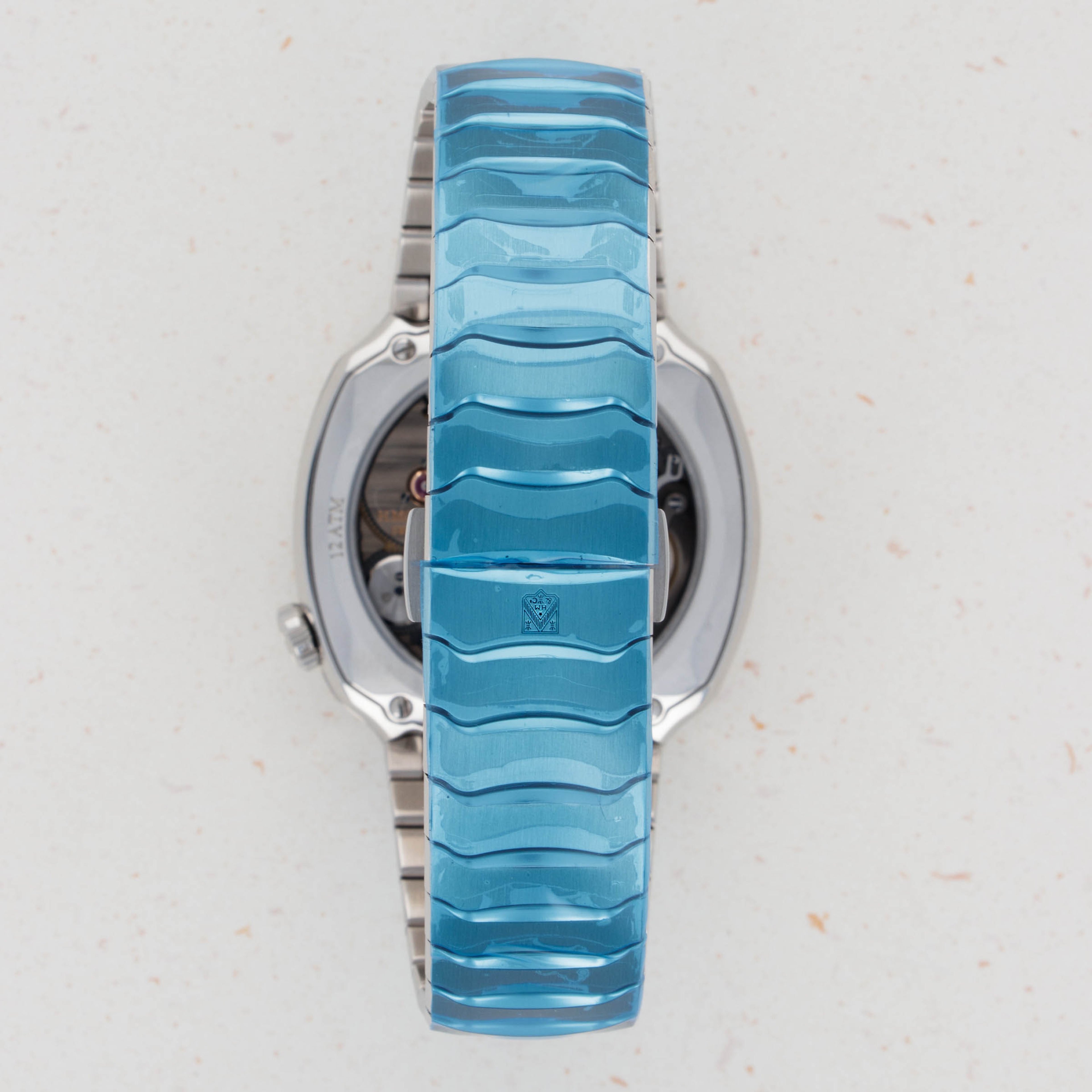 Launched in 2021 as a follow-up to Moser’s first every stainless steel integrated bracelet sports watch, the Streamliner Perpetual Calendar is a brilliantly-well executed piece of independent watchmaking. Utilizing the same design as the earlier Streamliner variants, the Perpetual Calendar model features a beautiful grey fume no-frills dial with ghost-like branding, a clever center-mounted month hand that points to the hours in lieu of the month (1 o'clock = January, 2 o'clock = February, and so on), and a power reserve indicator that is mirrored 180-degrees by an asymmetrically placed date aperture. A perpetual calendar at heart, the manually-wound Streamliner also features a leap year indicator mounted onto its anthracite-clad movement, the HMC 812, and comes with an incredibly impressive 120 meters of water resistance. With the abundance of lume on its hands, and impressively robust 42.3mm stainless steel construction, the Streamliner Perpetual Calendar is easily one of the most capable perpetual calendar models on the market and stands as a wonderful tribute to the incredible strides indie watchmakers have made in the industry in recent years.